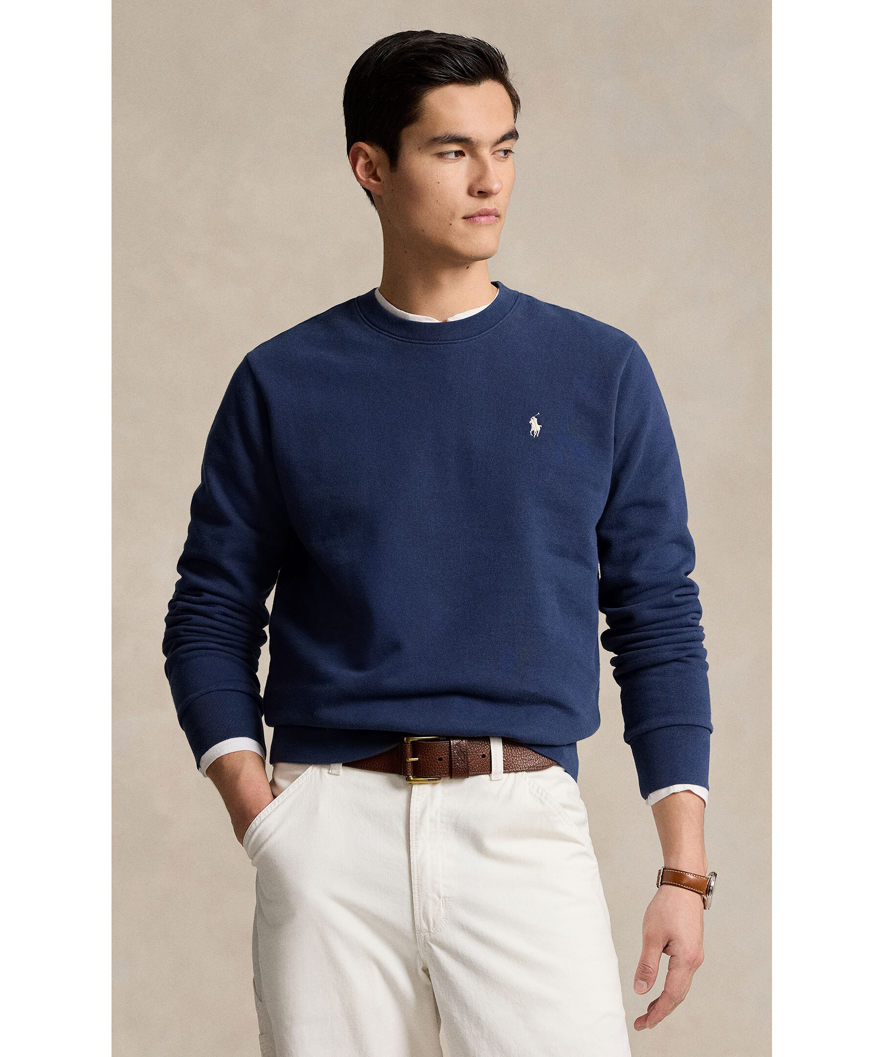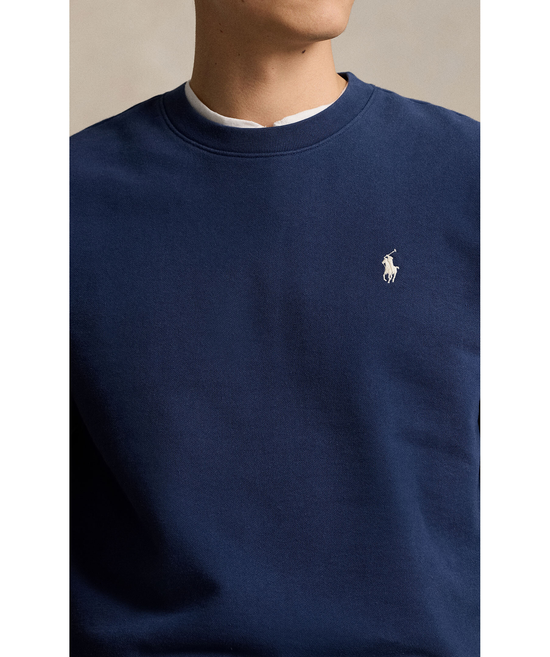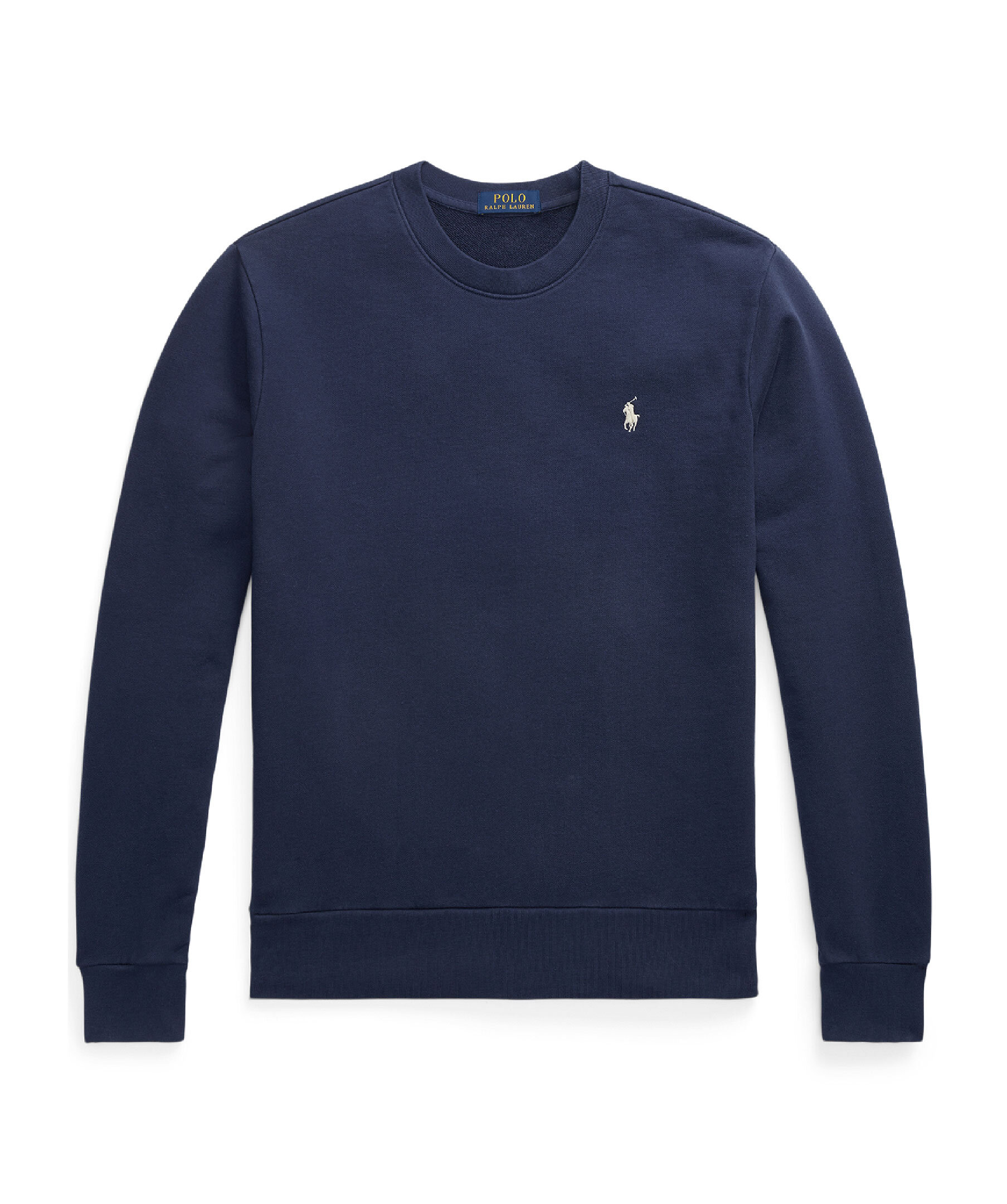 Mörkblå Collegetröja från Polo Ralph Lauren. Broderad logotyp på vänster bröst. Ribbstickad muddar vid ärm-och plaggslut. Tillverkad i Bomull.