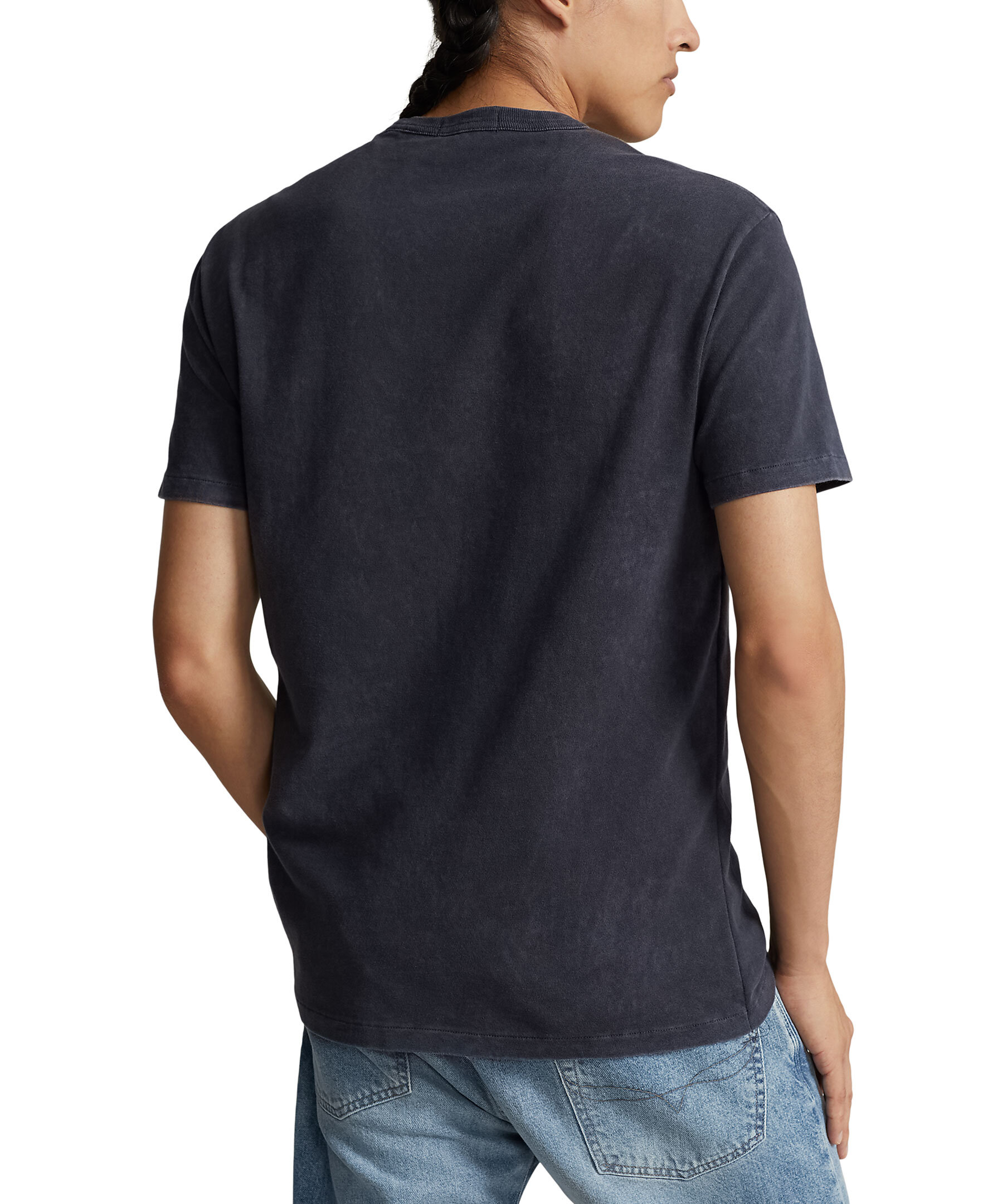 Svart t-shirt från Polo Ralph Lauren i en urtvättad look. Rund hals. Liten broderad signaturpony på vänster bröst. Tillverkad i 100% bomull. Normal passform. Storlek M har en kroppslängd på 72,4 cm (fram och bak), 50,8 cm axel och 111,8 cm bröst.