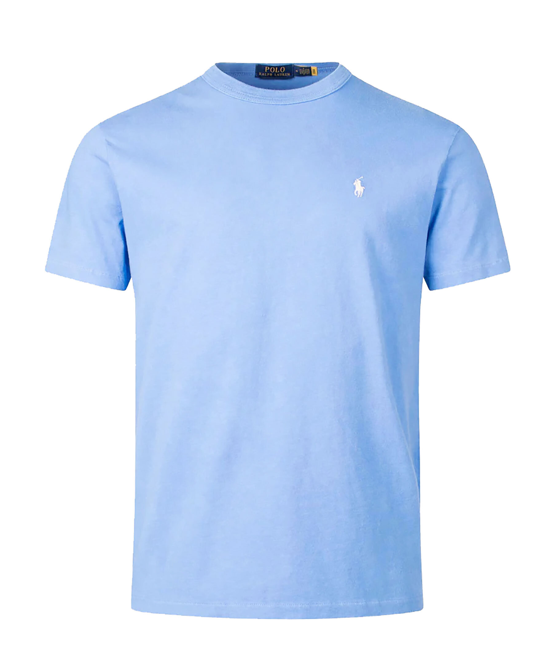 Ljusblå t-shirt från Polo Ralph Lauren i en urtvättad look. Rund hals. Liten broderad signatur-pony på vänster bröst. Tillverkad i 100% bomull.