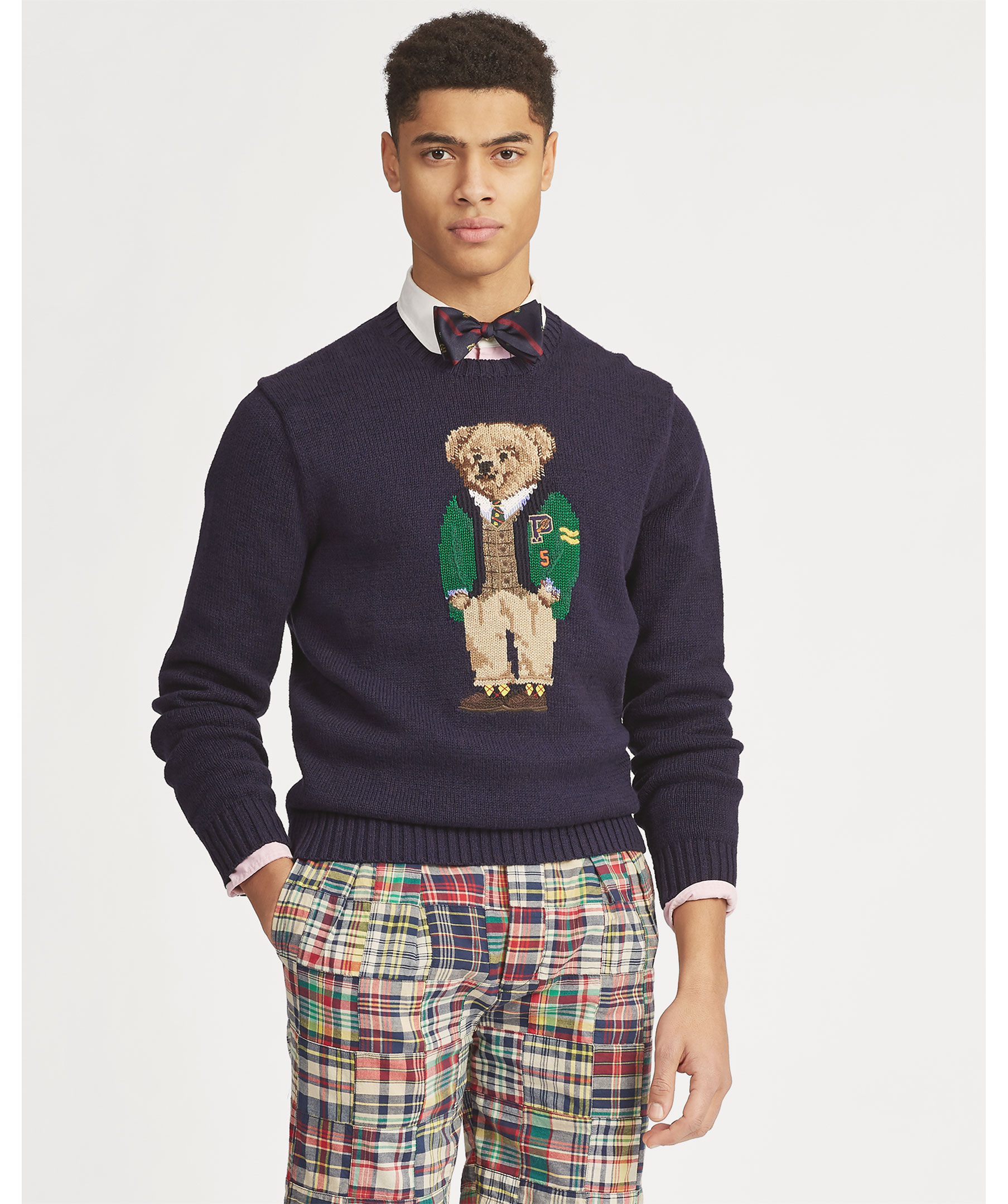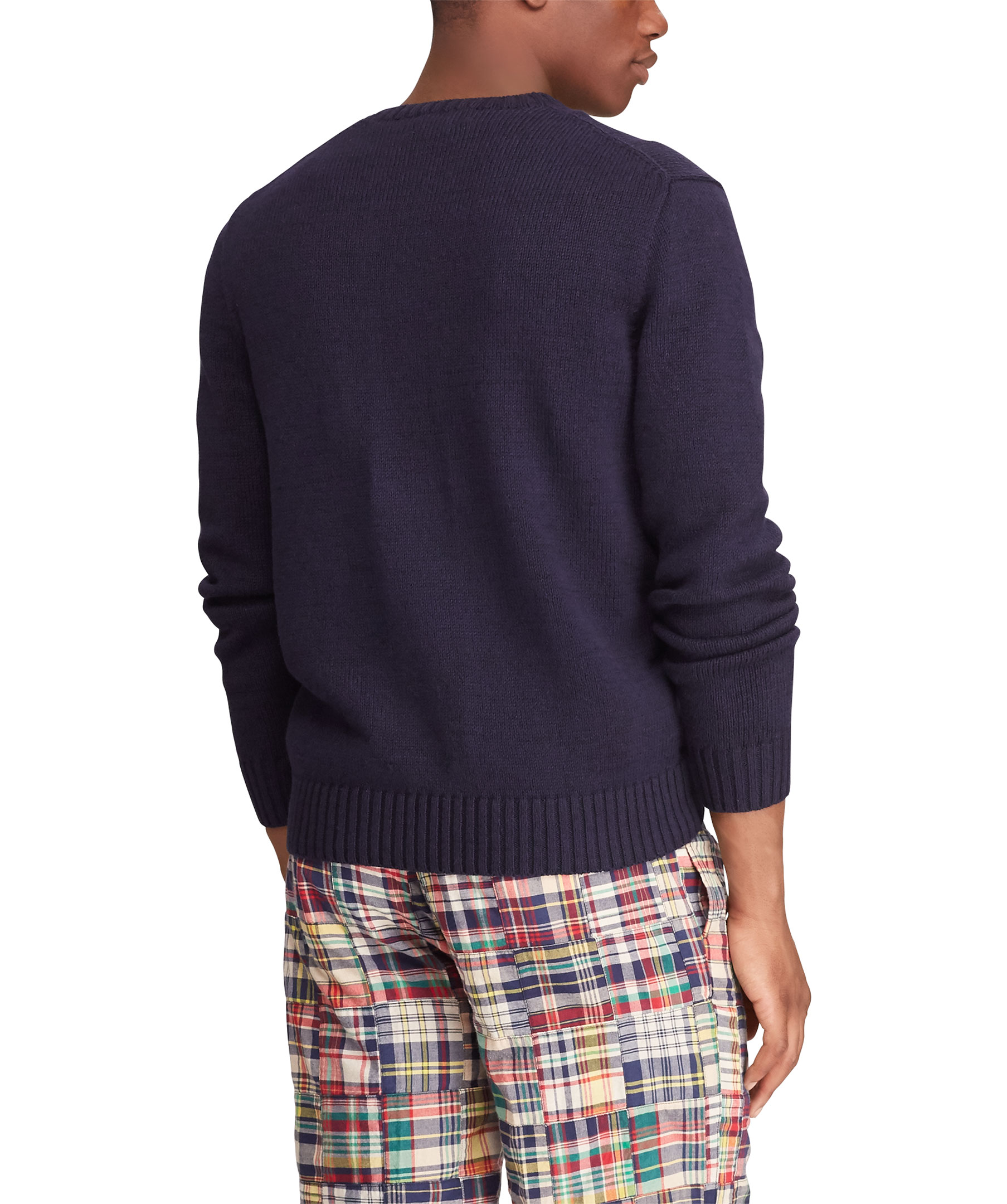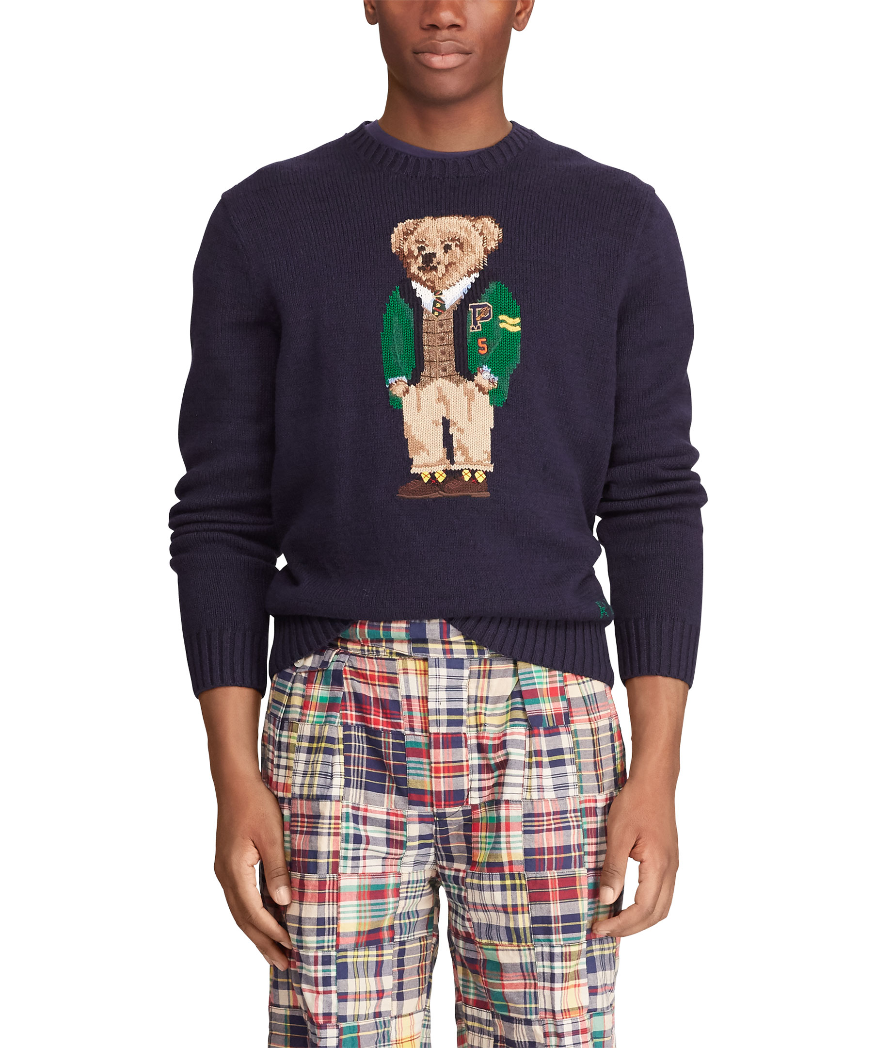 Marinblå, stickad tröja från Polo Ralph Lauren med deras ikoniska teddybjörn på bröstet.