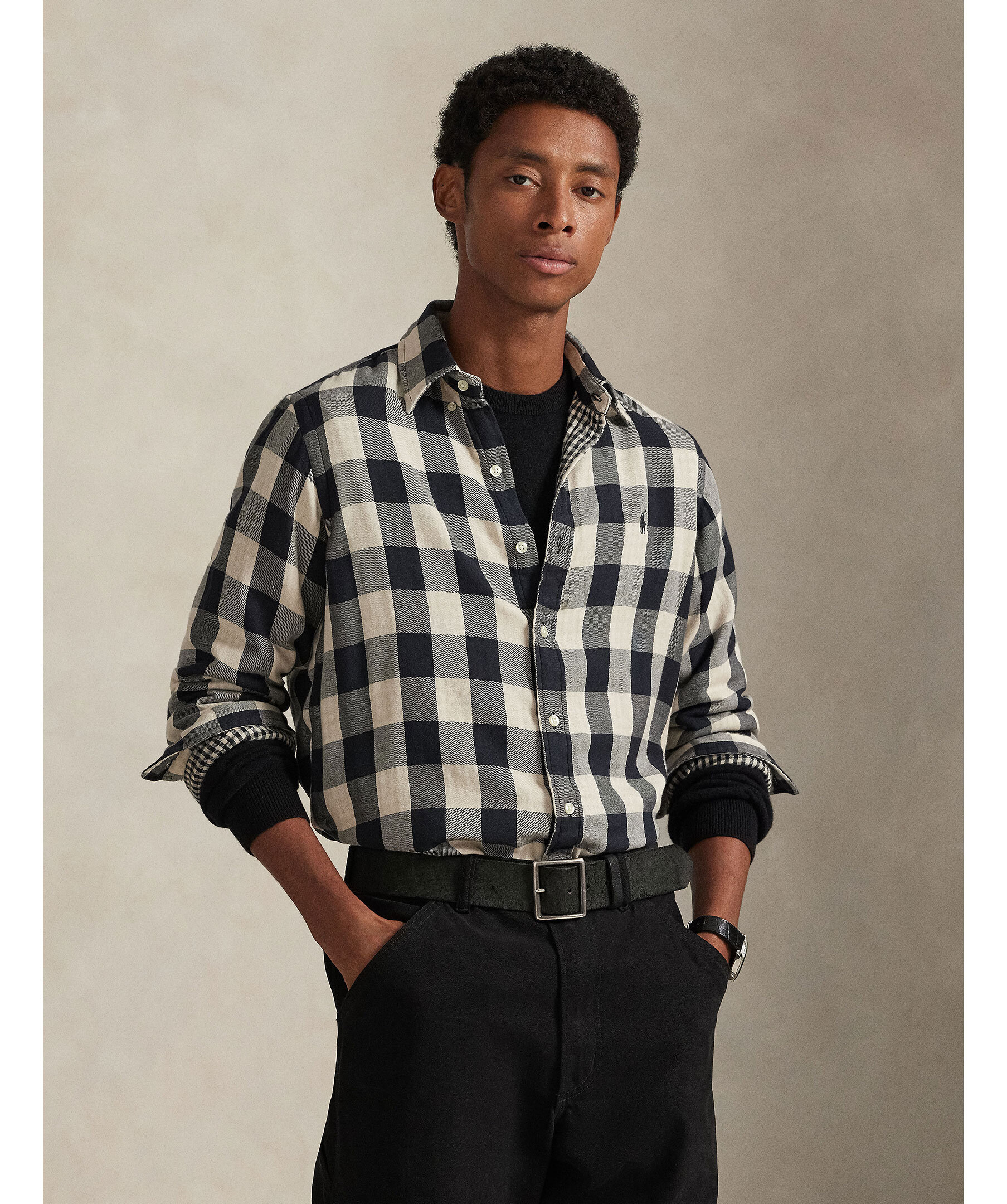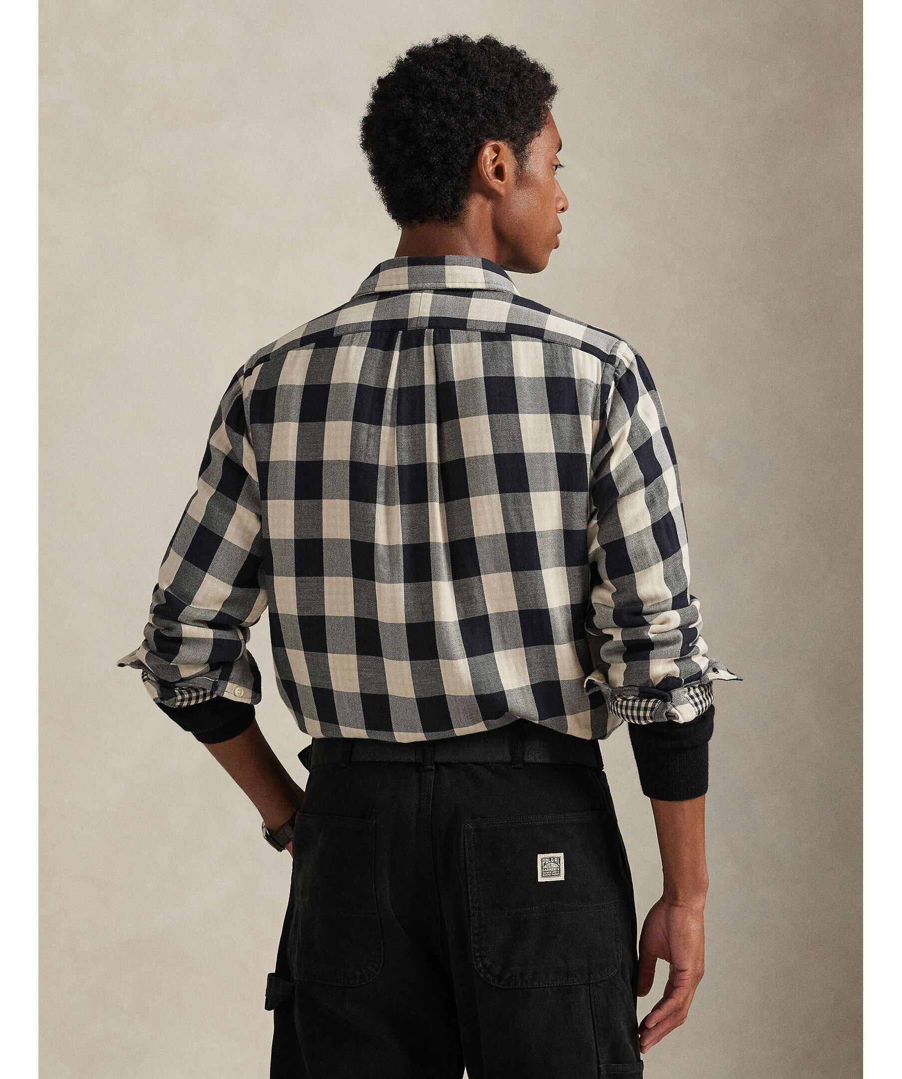 Rutig flanellskjorta från Polo Ralph Lauren i svart och krämvitt. Buttondown krage, broderad logotyp på bröstet.