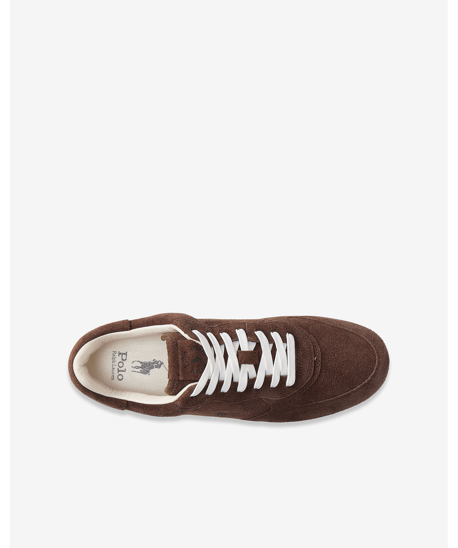 Bruna sneakers i mocka från Polo Ralph Lauren. SKorna har logotyp på plösen, utsidan och hälen samt en mellansula i EVA och en vit, slitstark yttersula.