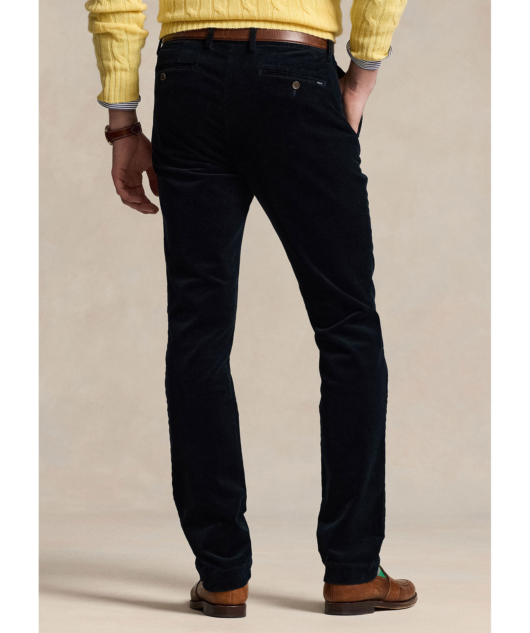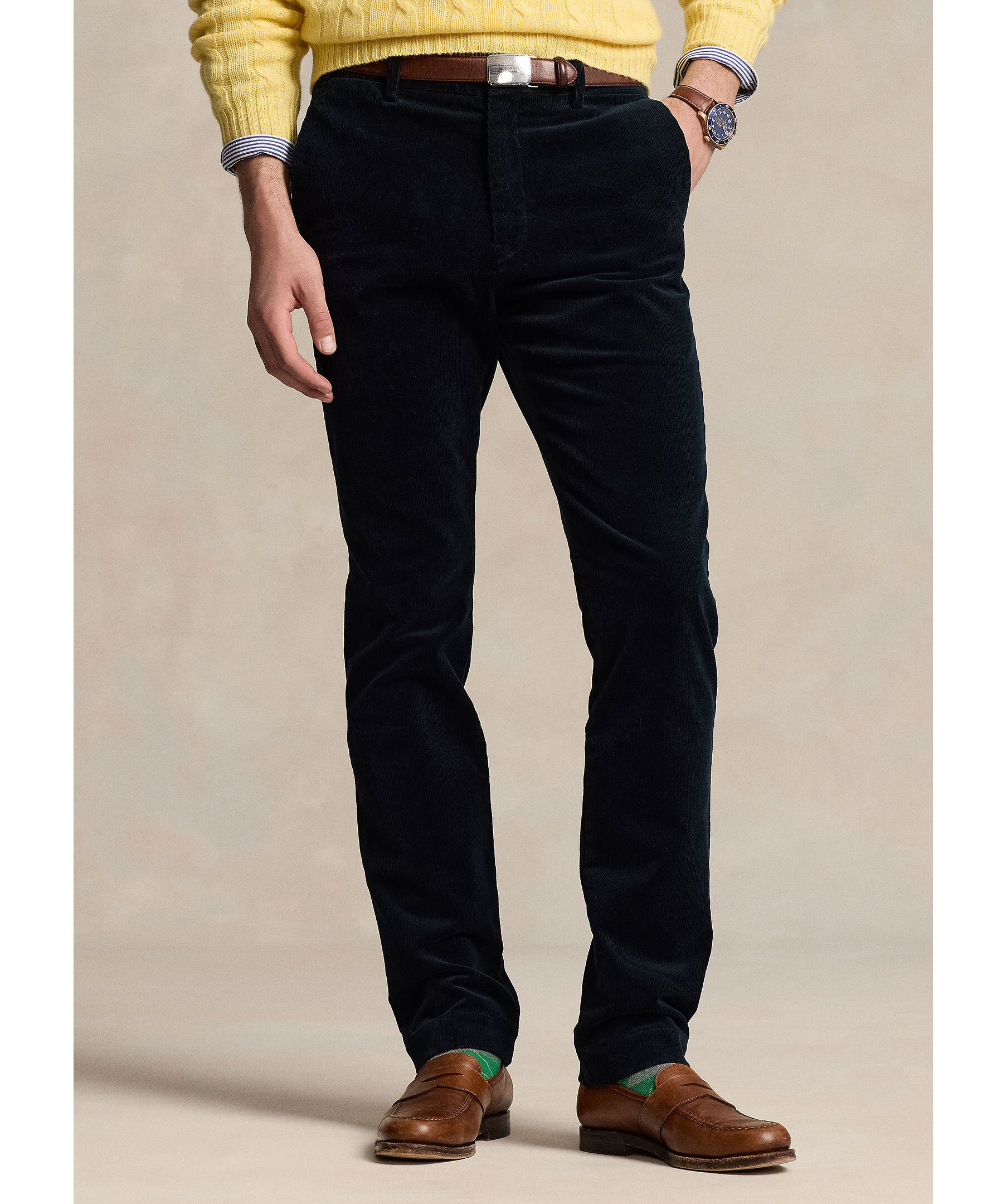 Mörkblåa manchesterbyxor från Polo Ralph Lauren. Slim fit modell. Byxorna är lågmidjade och smala genon benet. Bälteshällor. Blixtlåsgylf med knäppning. Två vinklade framfickor. Höger höft myntficka. Två bakfickor med knappar. "Polo"-etikett på bakfickan till höger. Tillverkade i en stretchig bomullsblandning. På grund av de naturliga egenskaperna hos detta material kan färgen färga av sig på tyger och klädsel.