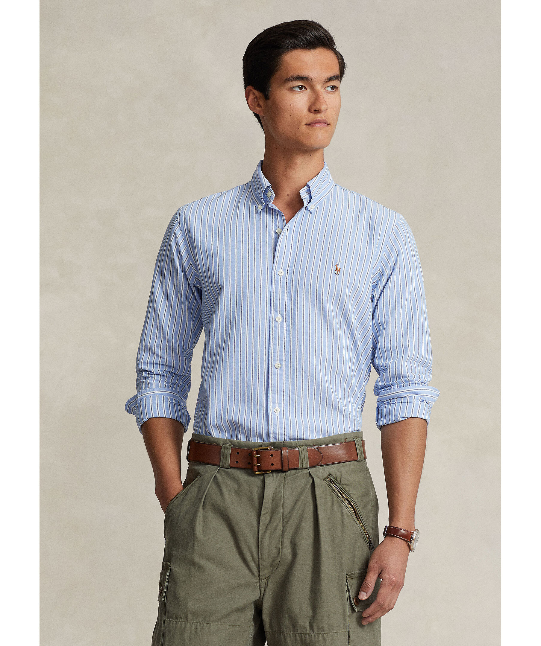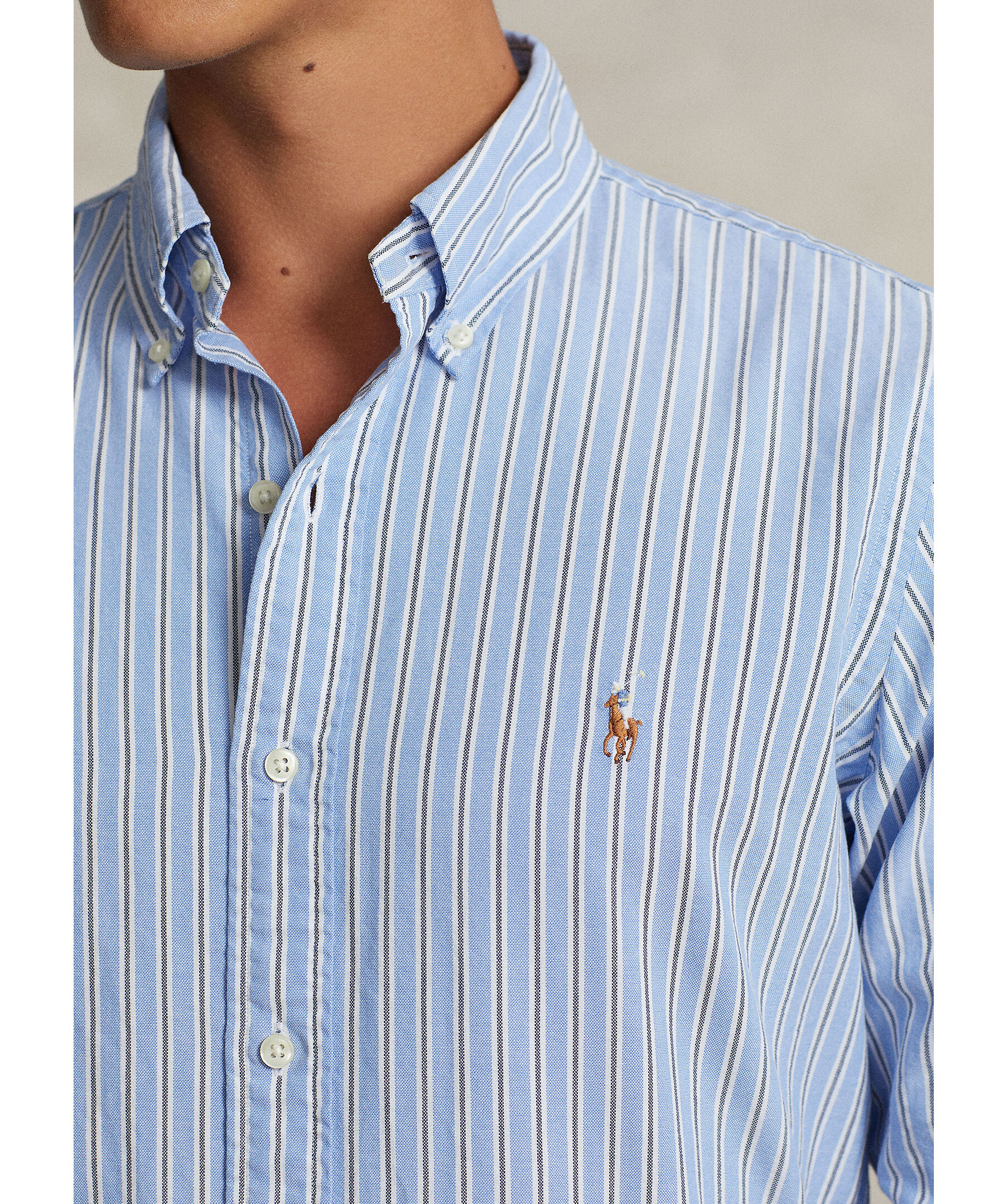Polo Ralph Lauren Oxford Custom Fit Stripe - Ljusblå