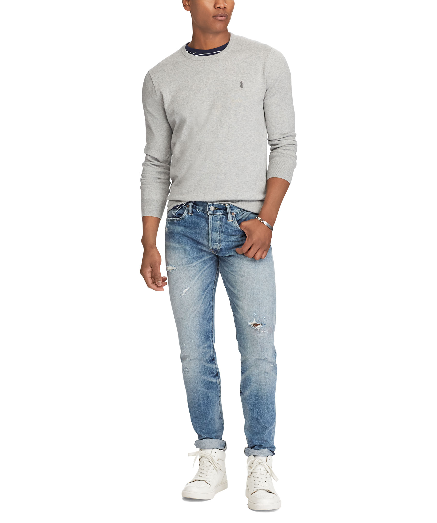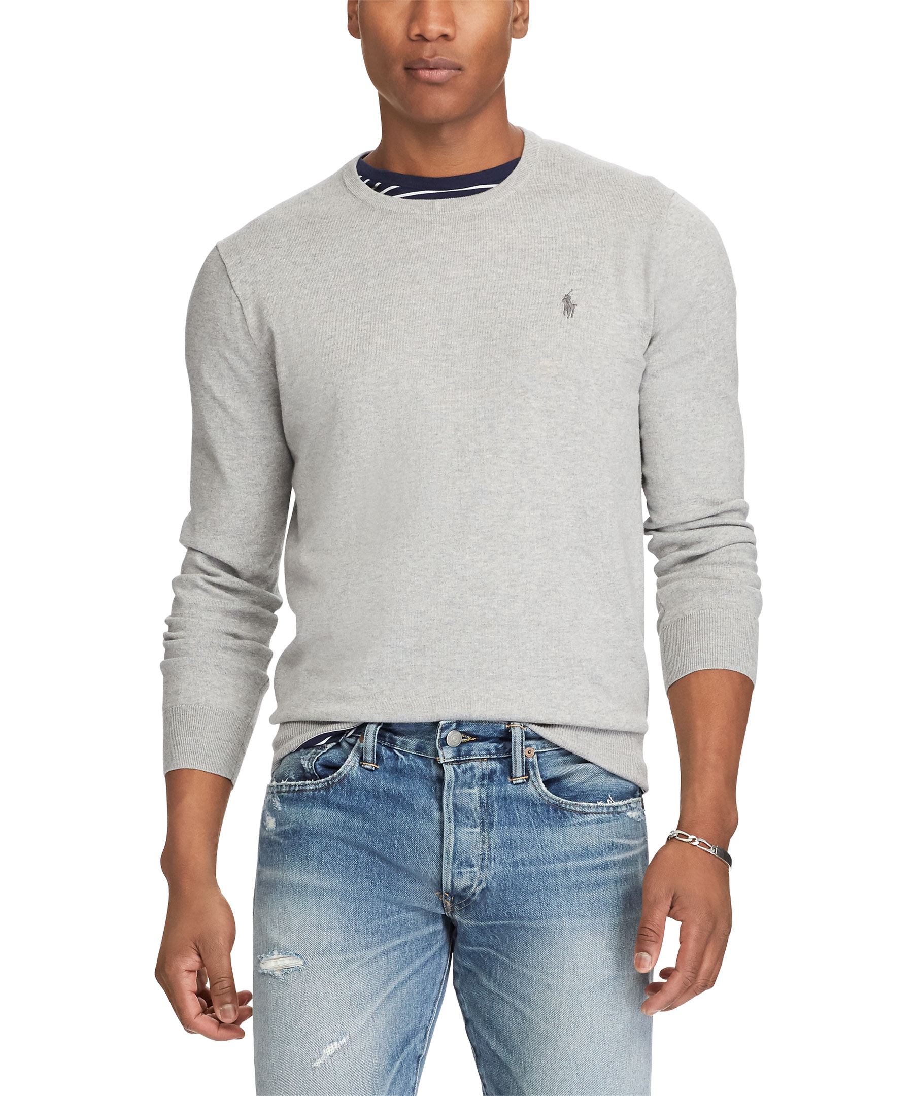 Grå stickad tröja från Polo Ralph Lauren. Tillverkad i 100% bomull.