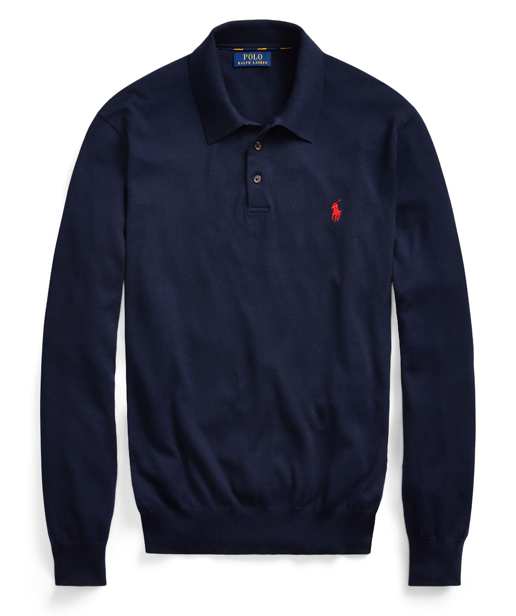 Mörkblå långärmad Polo Ralph Lauren. Tillverkad i 100% Bomull. Broderad logga på vänster bröst. Små slitsar på vardera sida.