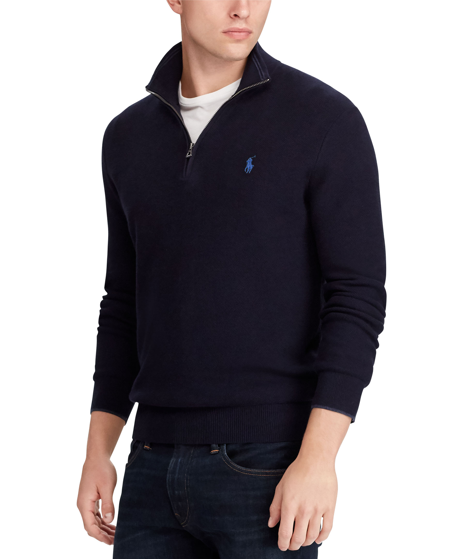 Polo Ralph Lauren Pima Textured Half Zip - Blå