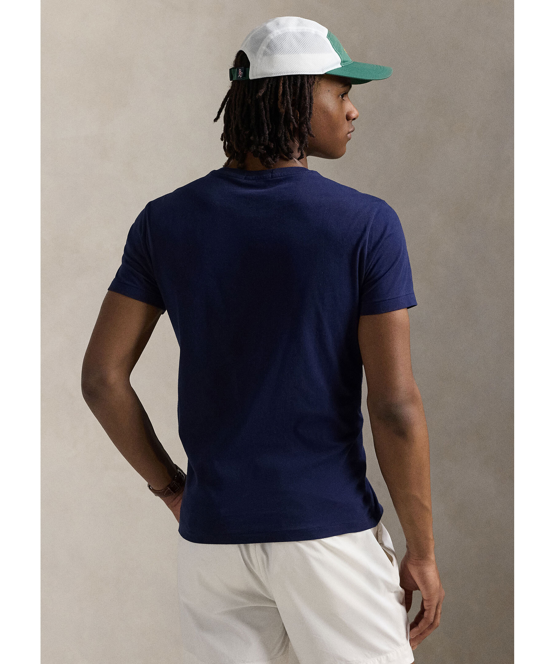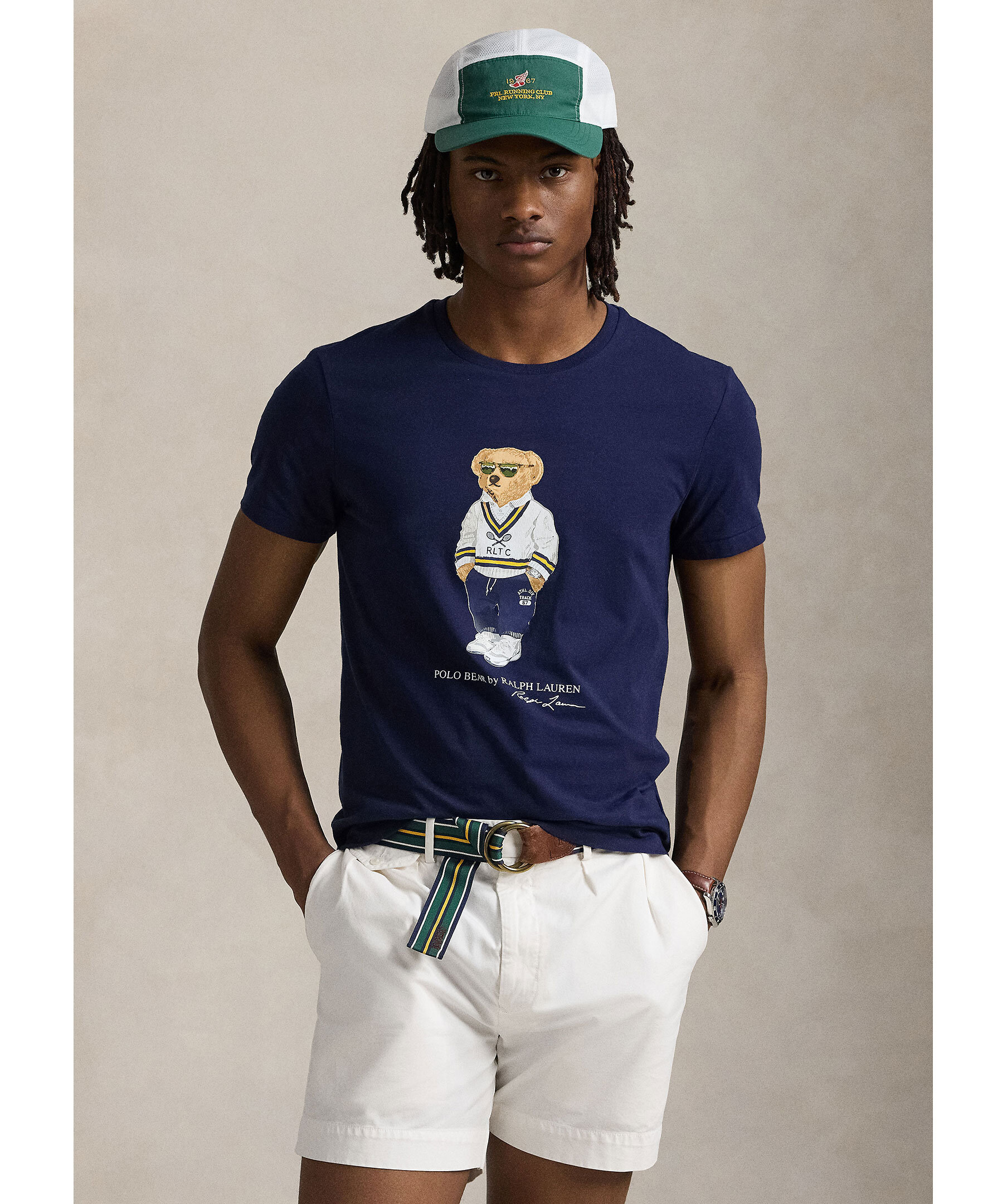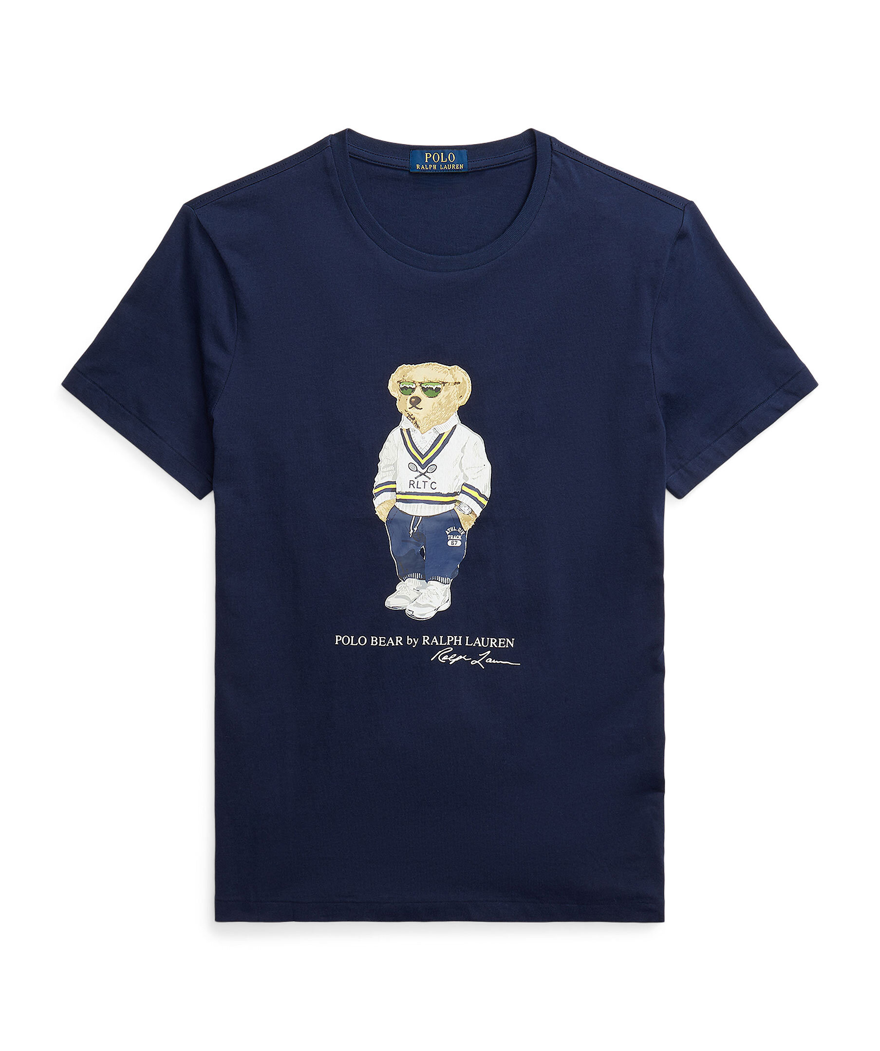 Mörkblå t-shirt från Polo Ralph Lauren. T-shirten har deras ikoniska björnlogotyp på framsidan. Rundad halsringning. Tillverkad av bomull.