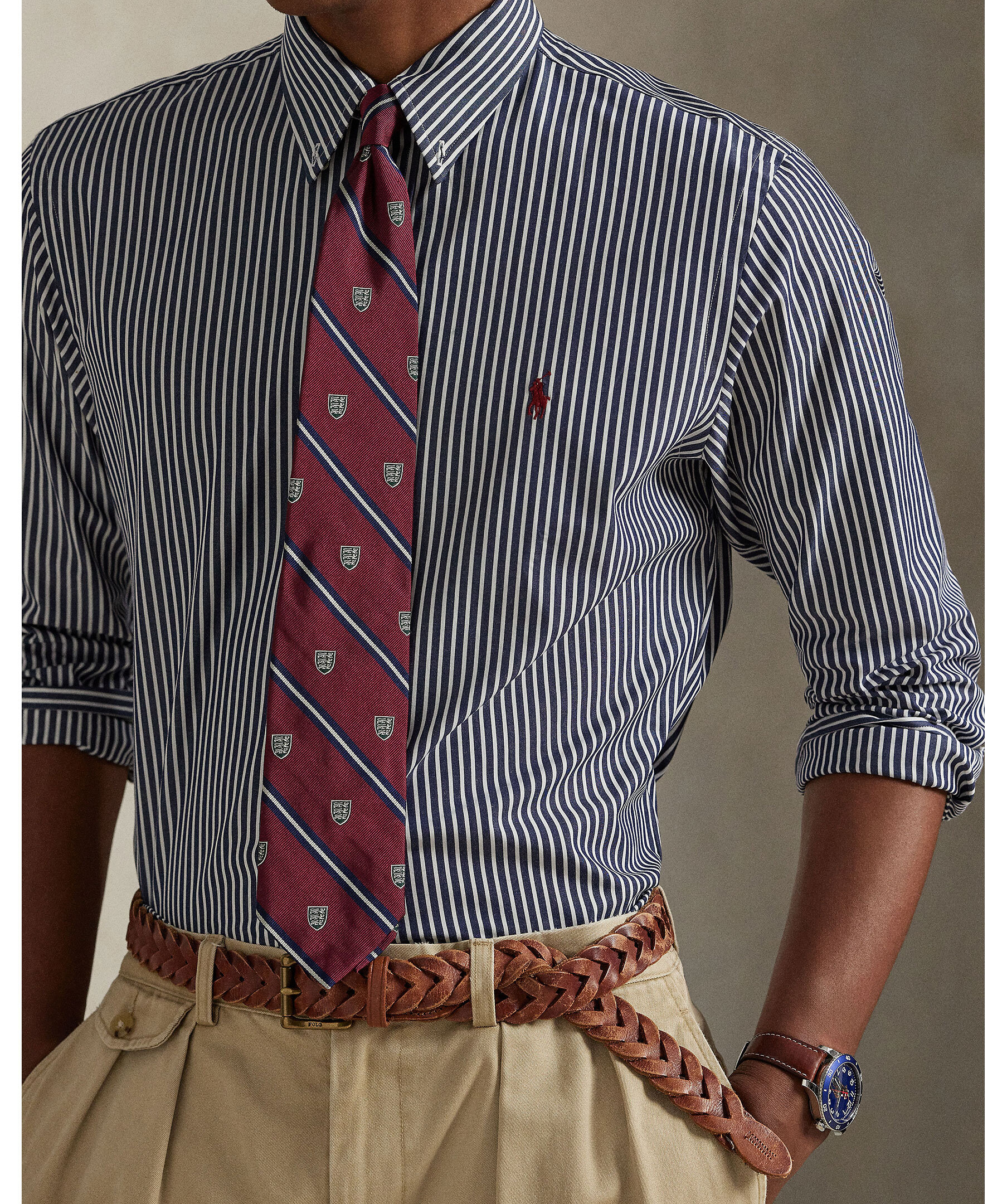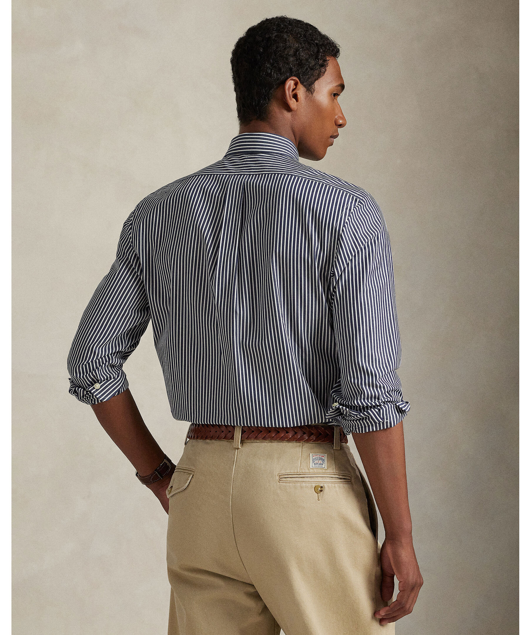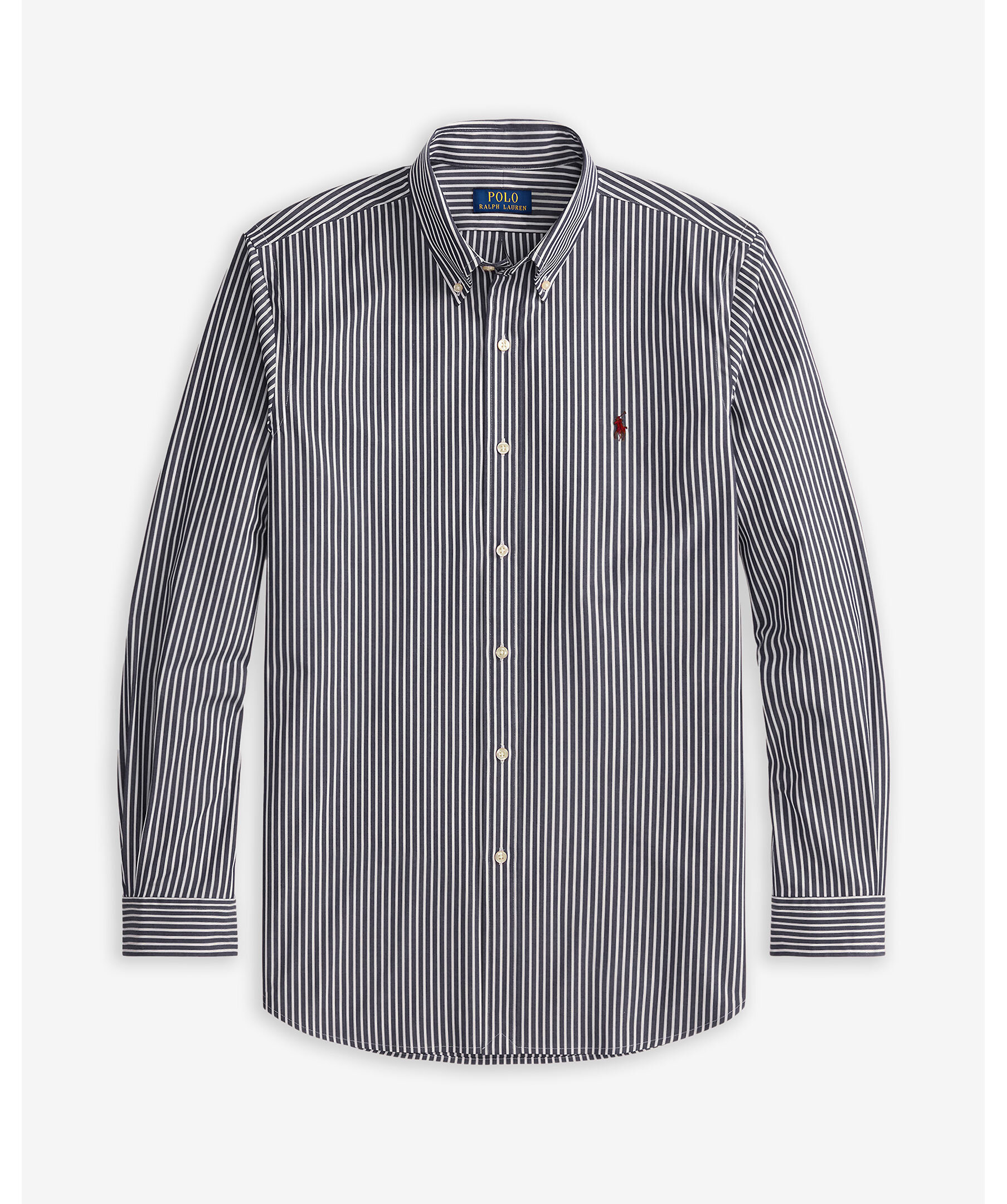 Marinblå och vitrandig skjorta från Polo Ralph Lauren. Gjord i mjuk och andningsbar bomullspoplin med extra stretch för komfort. Slim Fit ger en kroppsnära siluett med smalare midja, medan button-down-krage, hel knäppning och den ikoniska broderade polohästen på bröstet sätter den klassiska Ralph Lauren-prägeln.