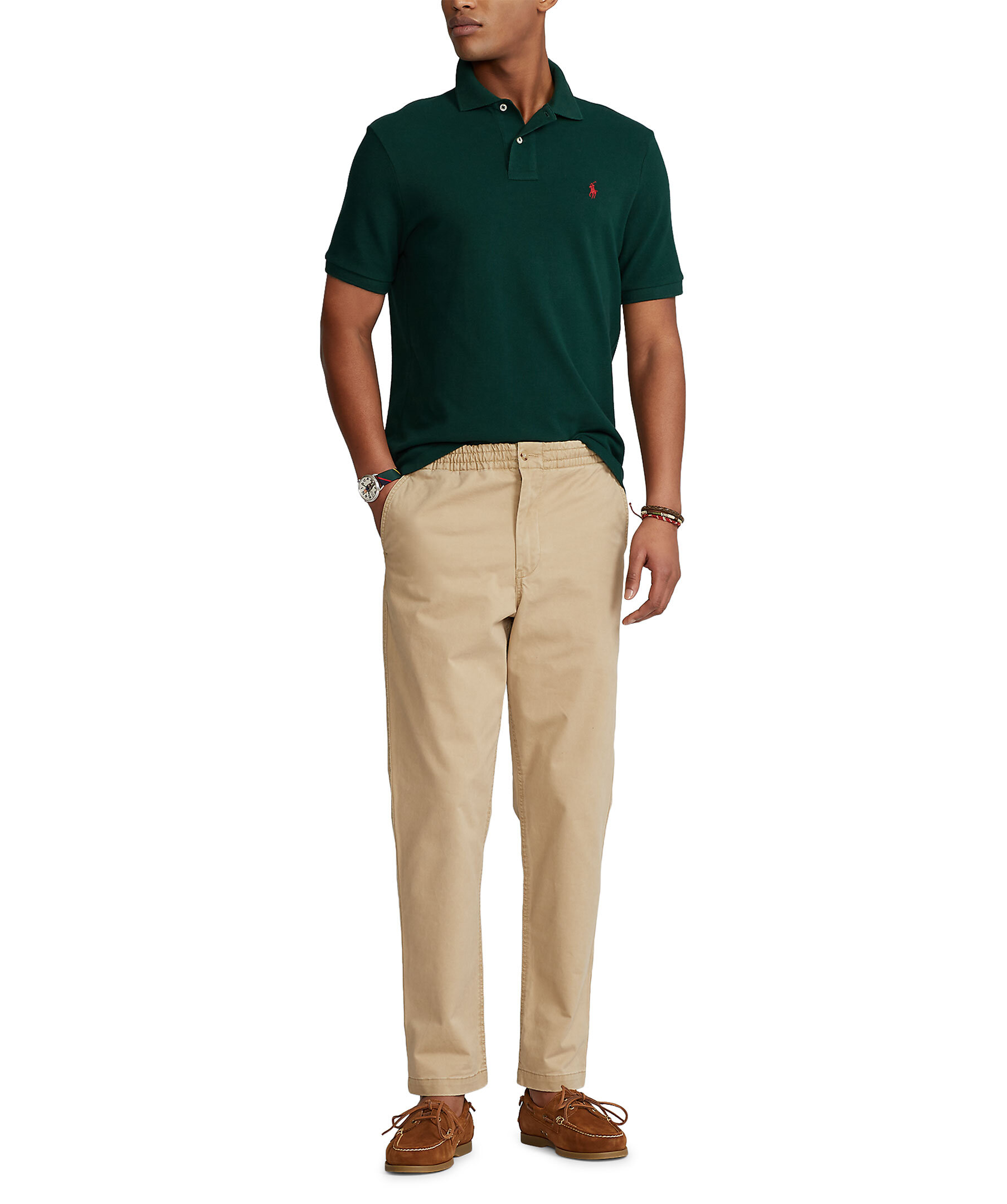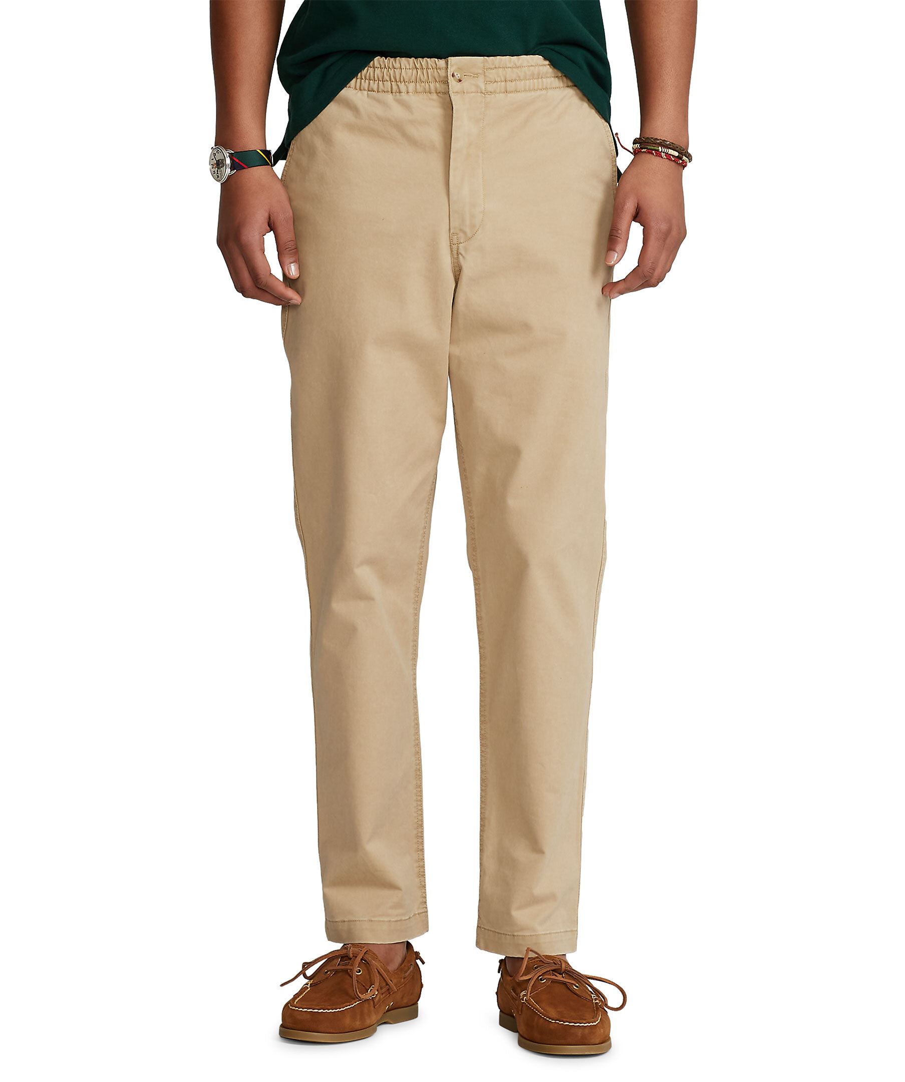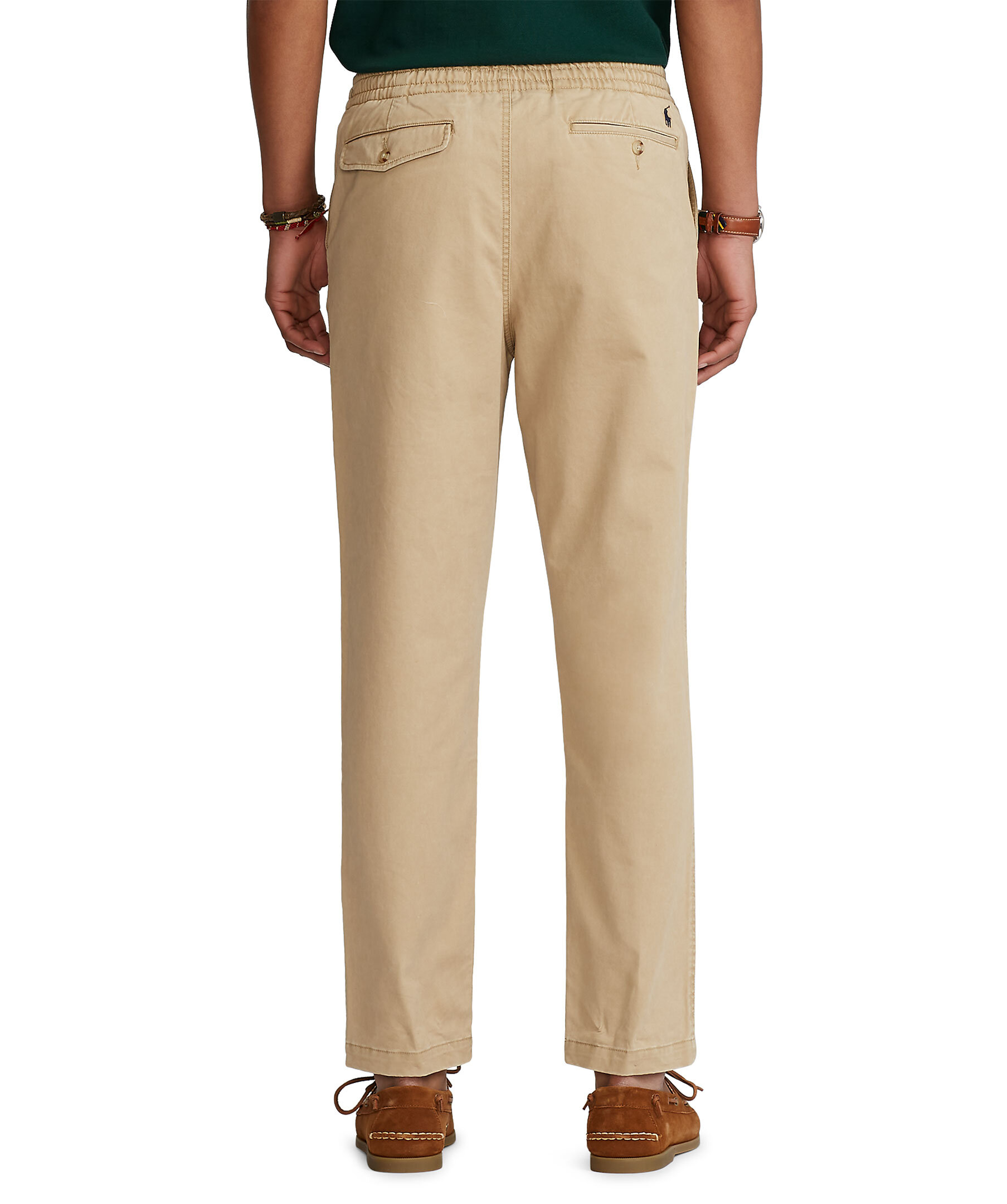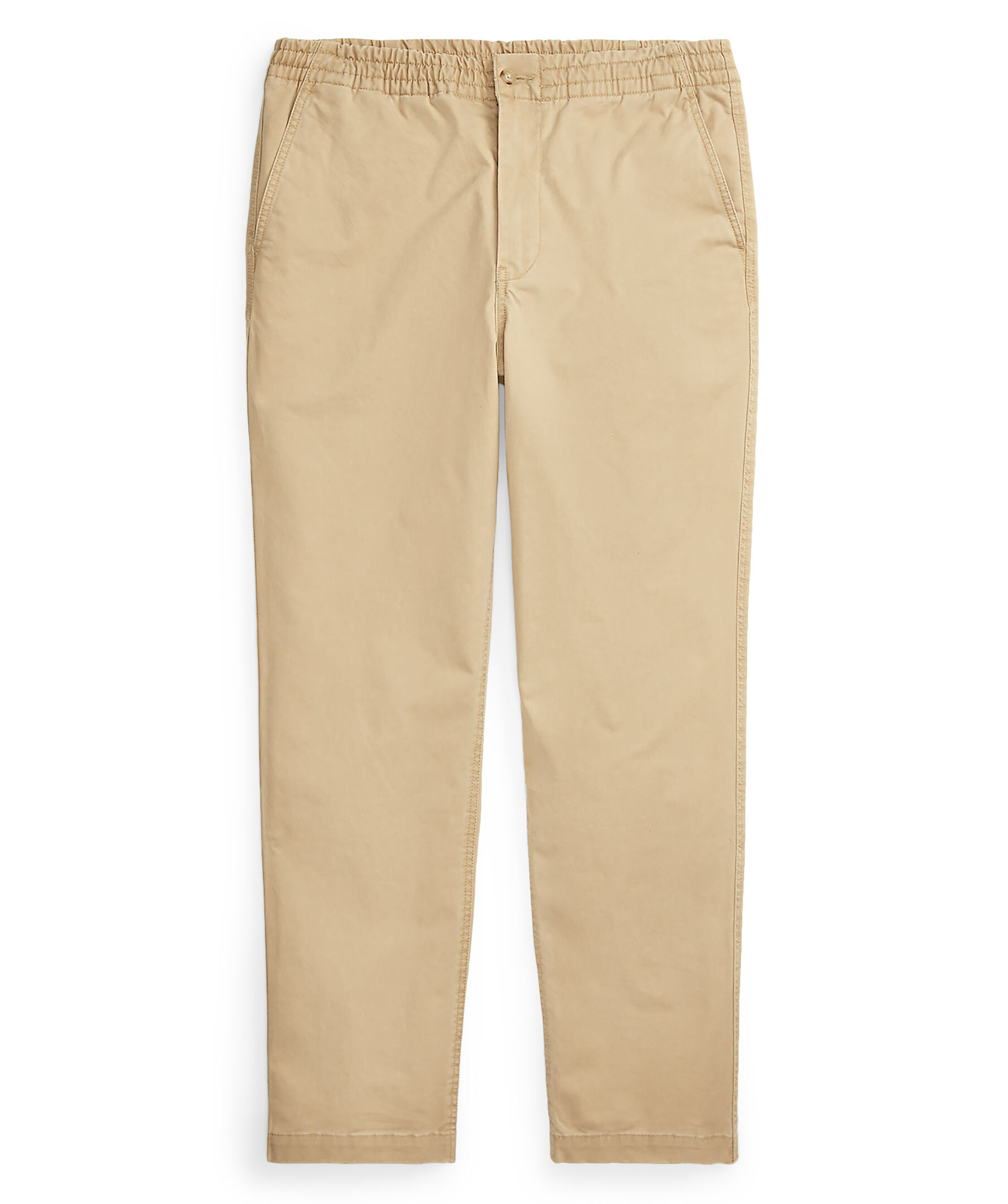 Beigea byxor från Polo Ralph Lauren. Raka ben, resår och dold snörning i midjan. Byxorna har två framfickor och två bakfickor. Liten marinblå broderad logotyp vid ena bakfickan.