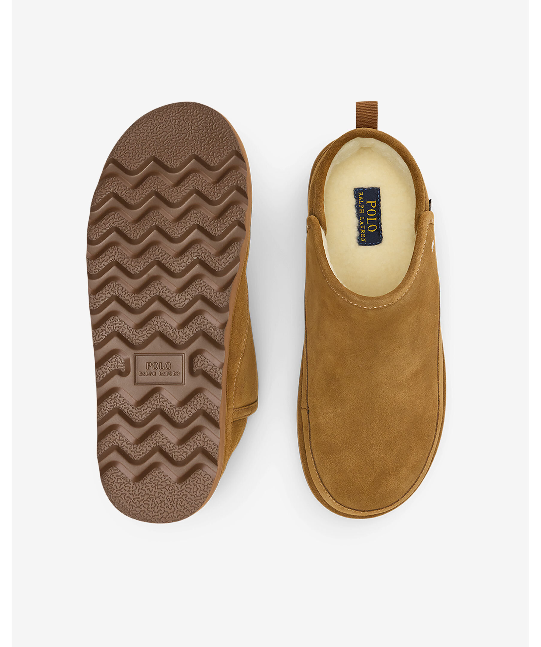 Mjuka mockaboots med låg skaft och slip-on-design från Polo Ralph Lauren. Skorna är helt fodrad med varm, syntetisk fårskinnsimitation och har en lätt, mönstrad EVA-sula för bra grepp. Detaljer inkluderar broderad Pony-logga och en praktisk ögla baktill.