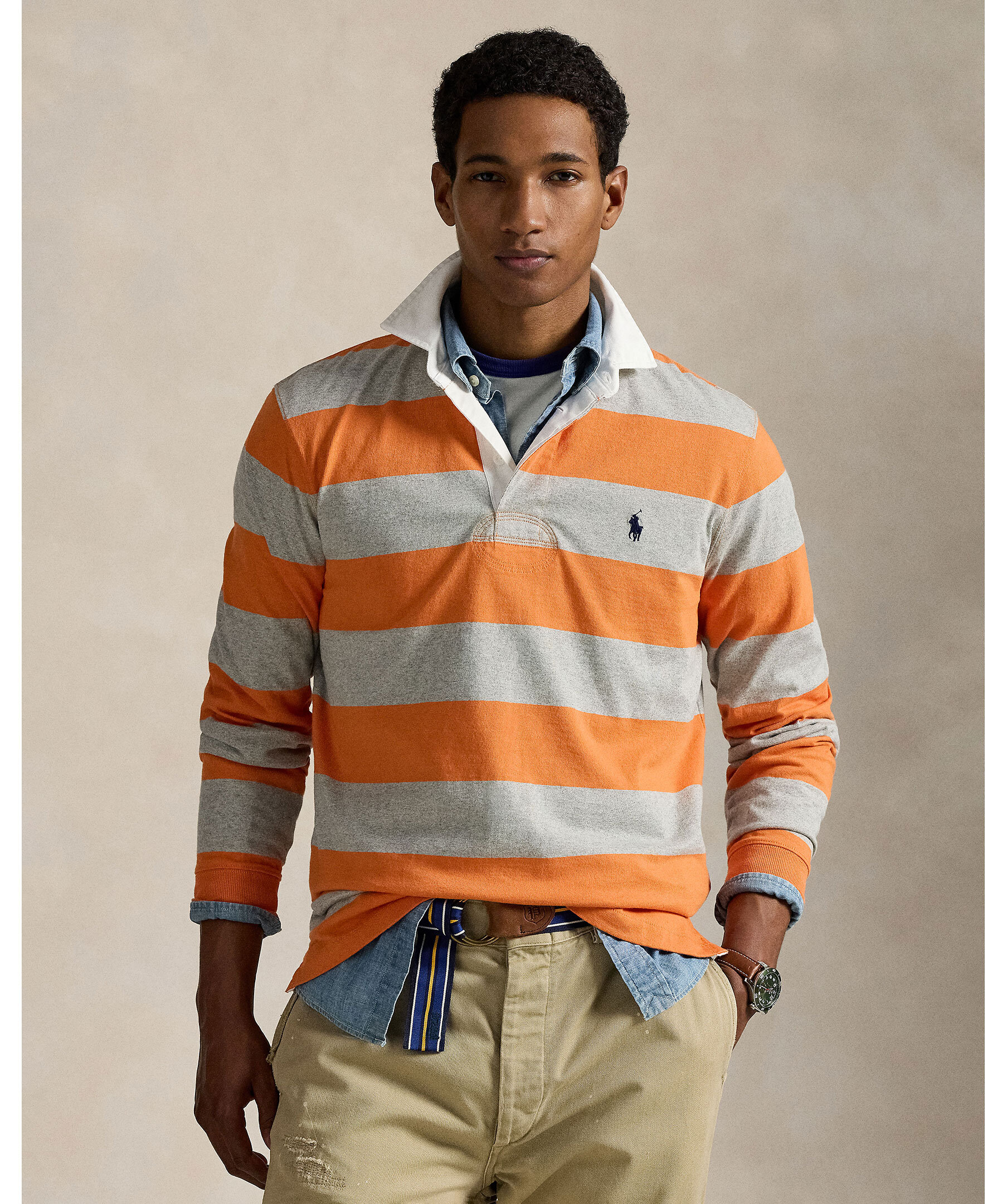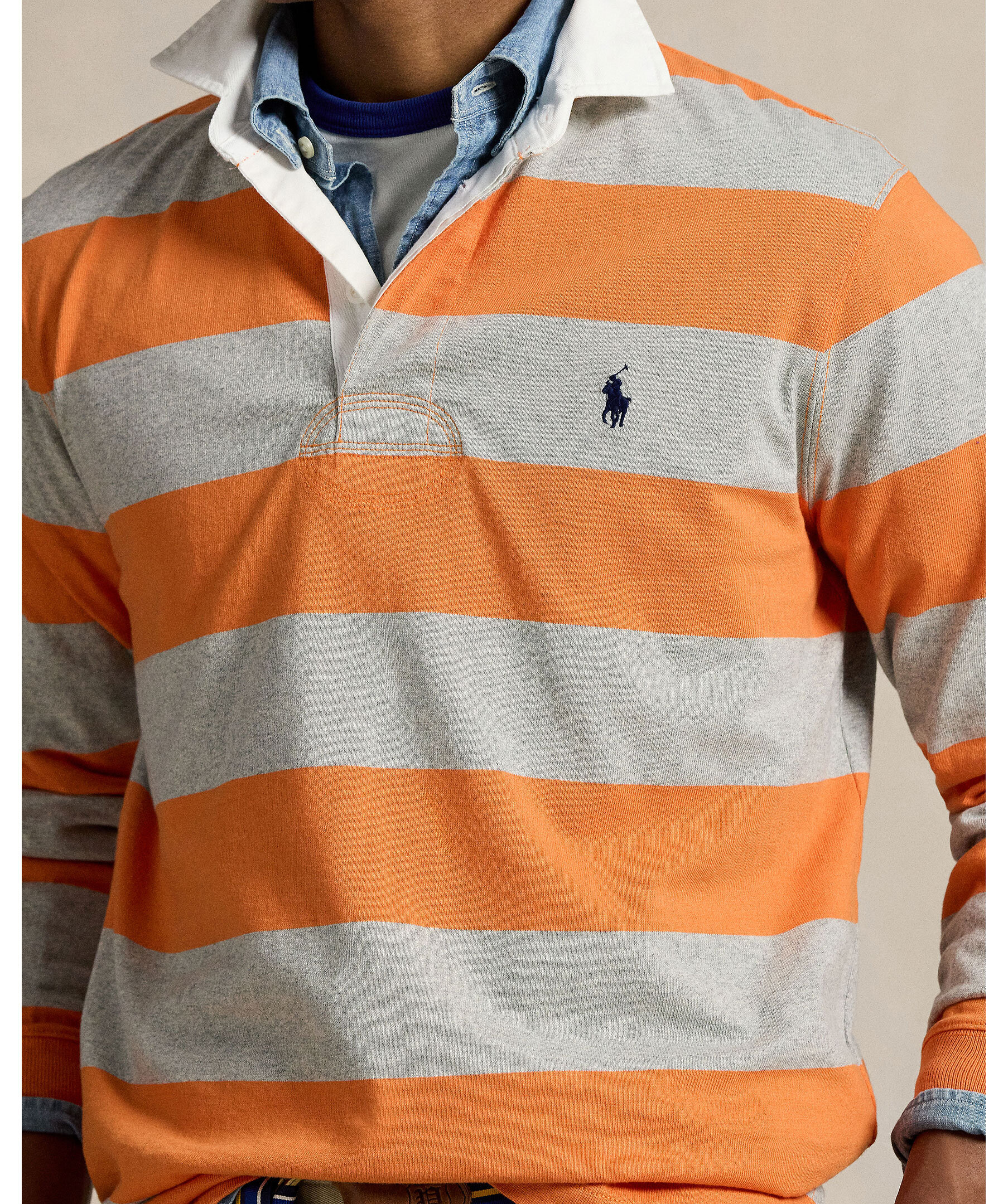 En klassisk rugby-inspirerad tröja med breda ränder från Polo Ralph Lauren. Gjord i 100% bomull. Kontrasterande krage och knappslå fram adderar autentisk sportkänsla.