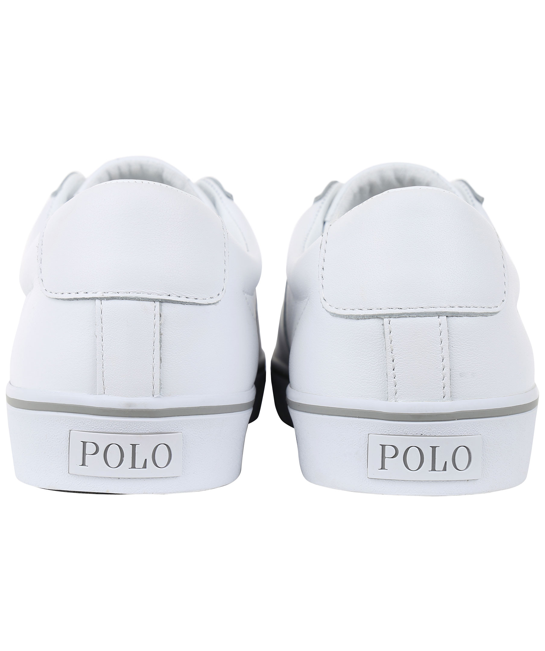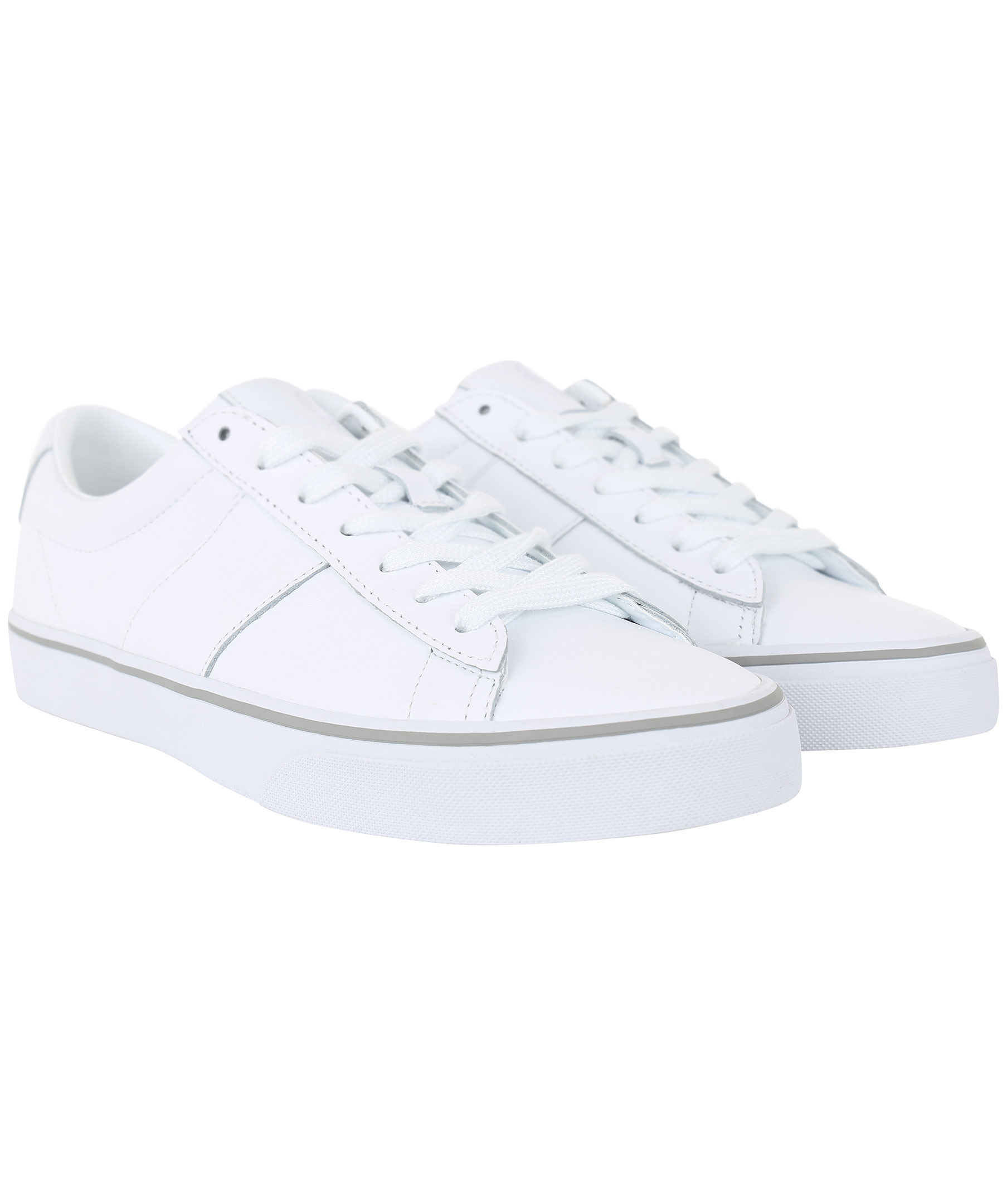 Vita sneakers i äkta skinn från Polo Ralph Lauren med broderad logga på plösen. Dessa skor kan du matcha med ett par jeans för en fantastisk söndagslook.