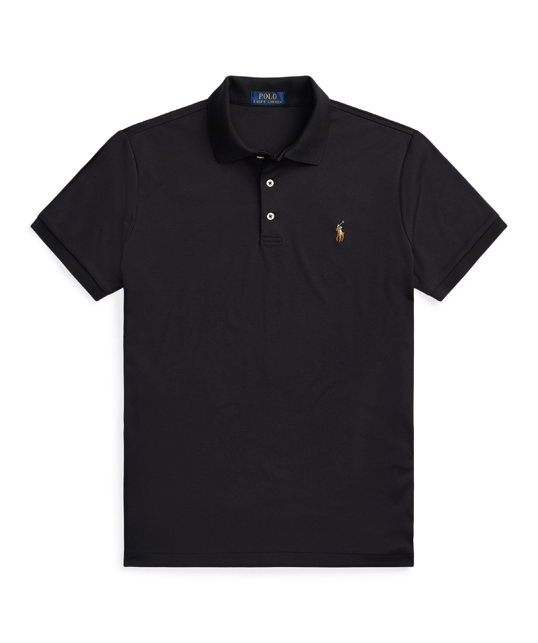 Svart, kortärmad pikétröja från Polo Ralph Lauren. Pikén har tre knappar framtill, ribbstickad krage och ärmslut samt broderad logotyp på bröstet. Tillverkad i bomull.