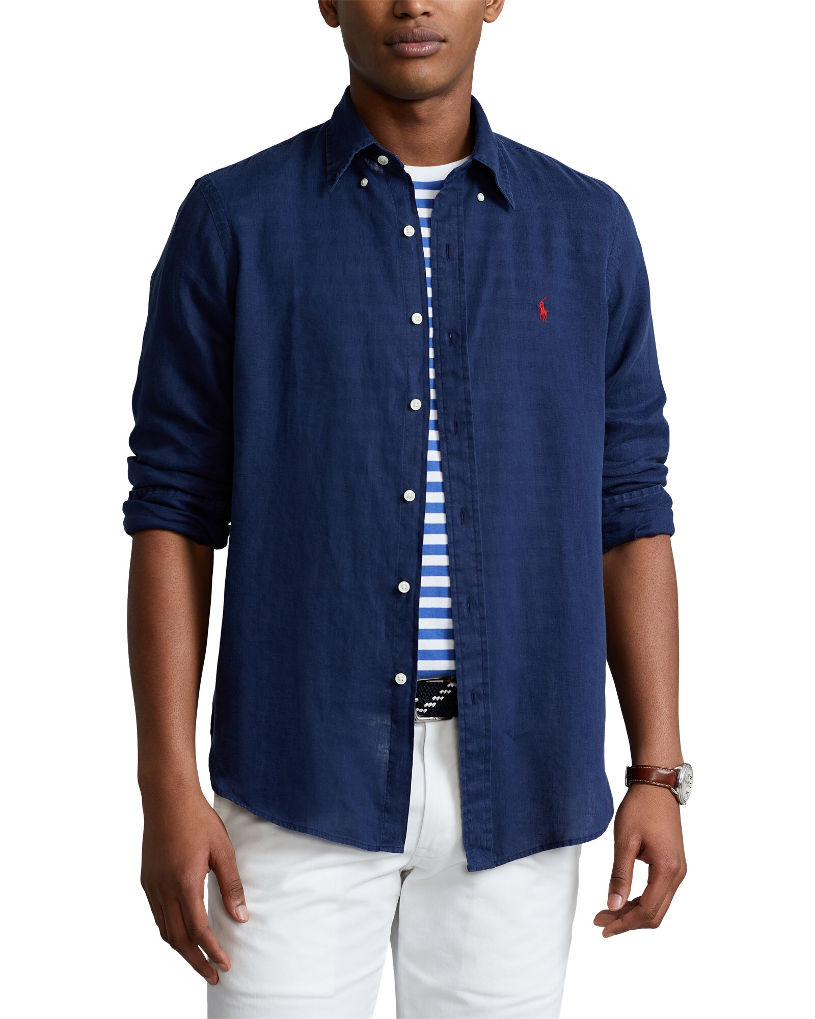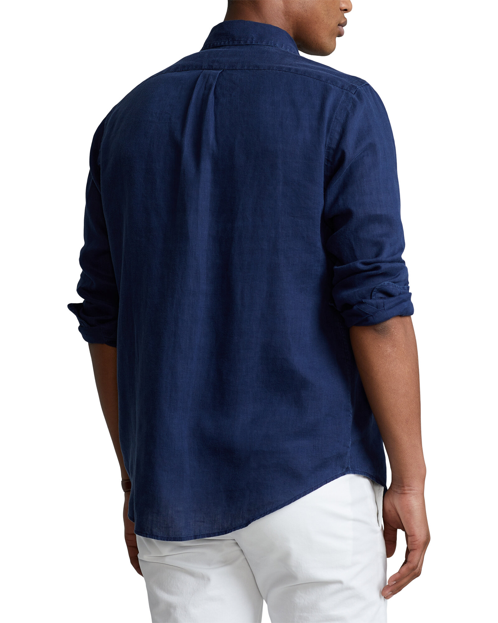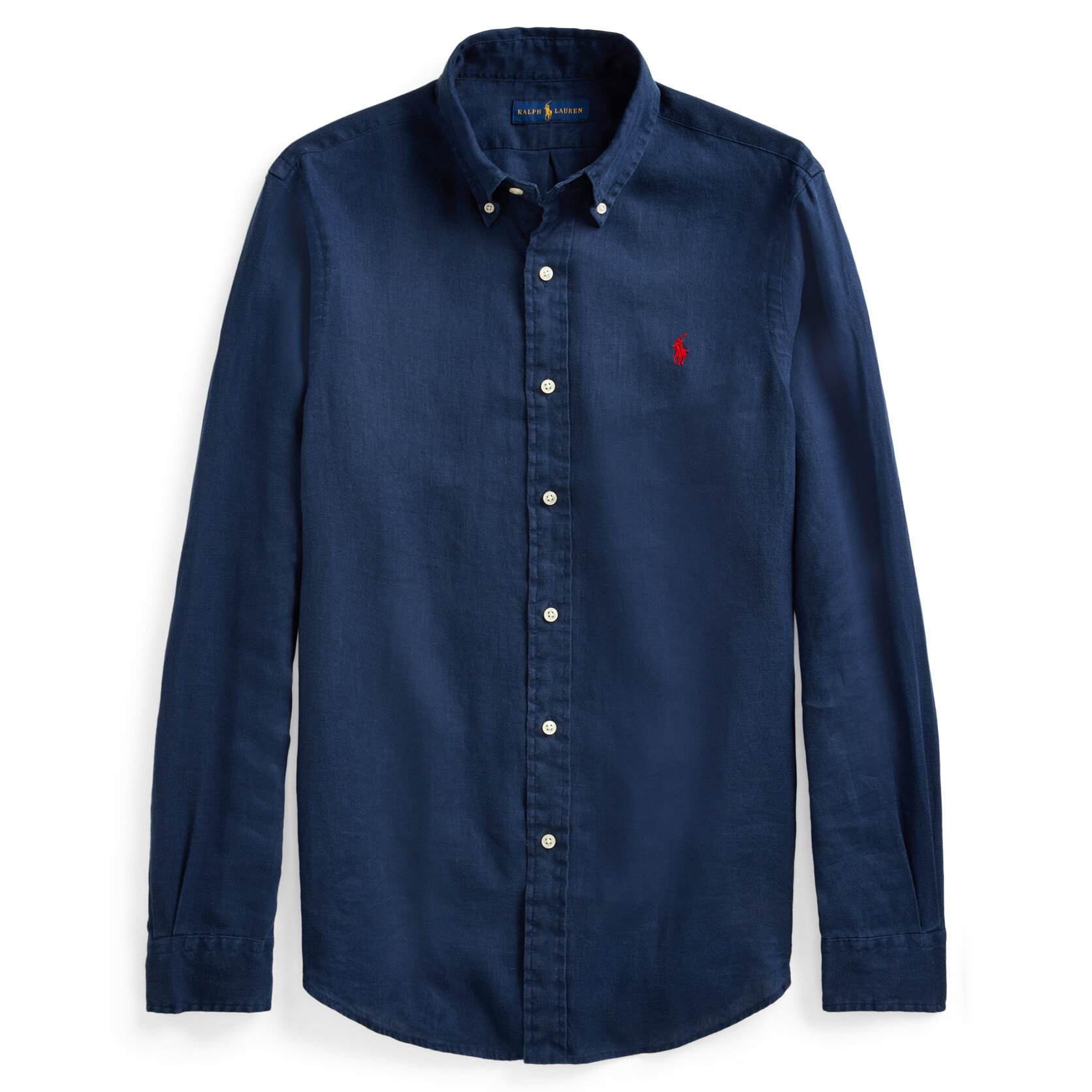 Marinblå linneskjorta från Polo Ralph Lauren. Tillverkad i 100% linne. Slim fit, button down krage, broderad logotyp på bröstet.