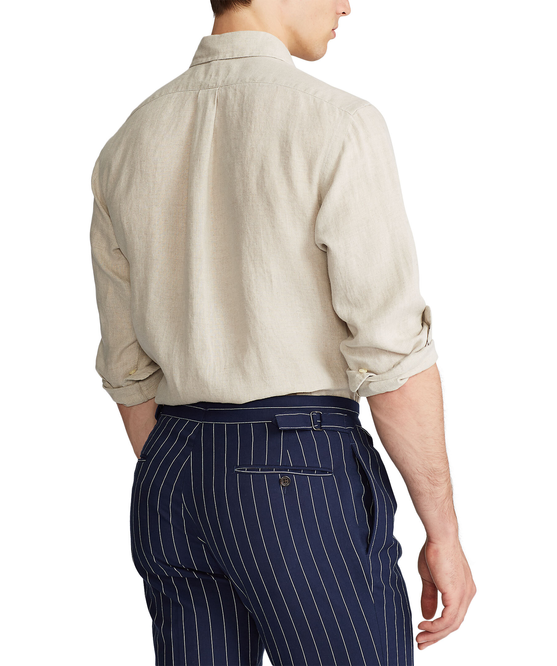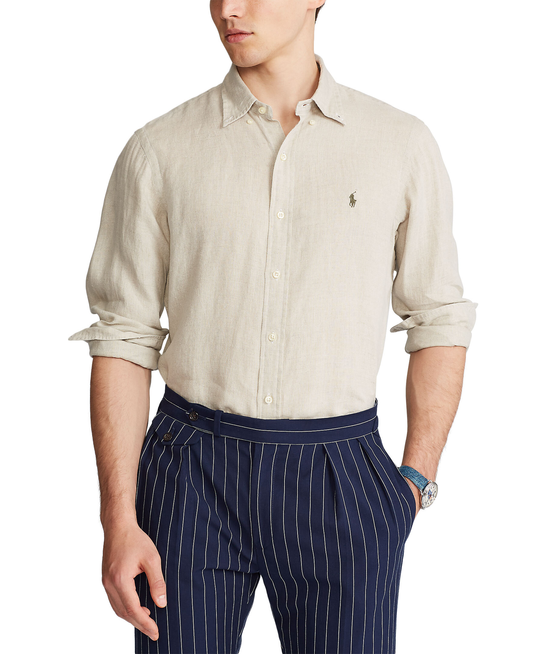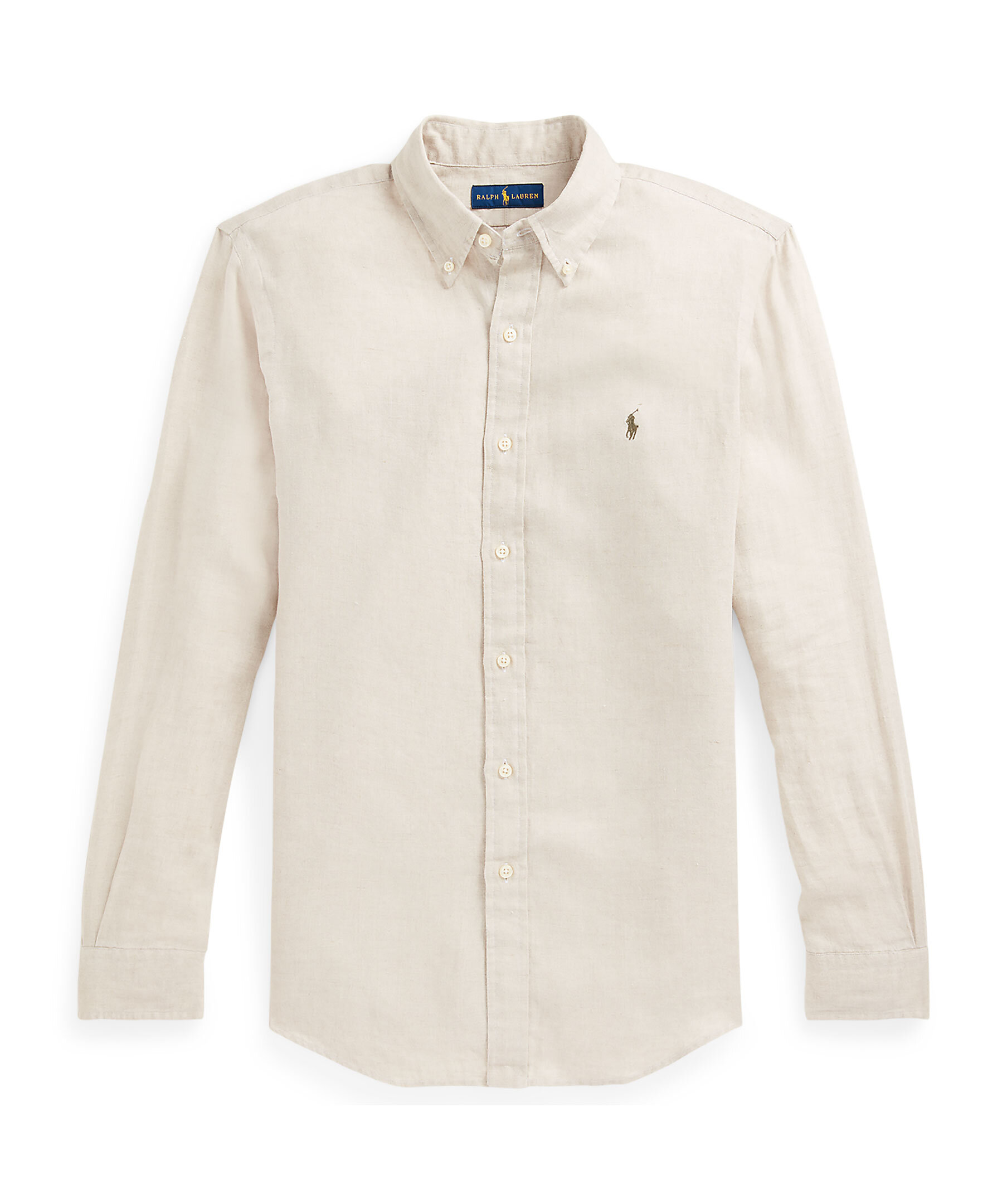 Beige linneskjorta från Polo Ralph Lauren. Tillverkad i 100% linne. Slim fit, button down krage, broderad logotyp på bröstet.