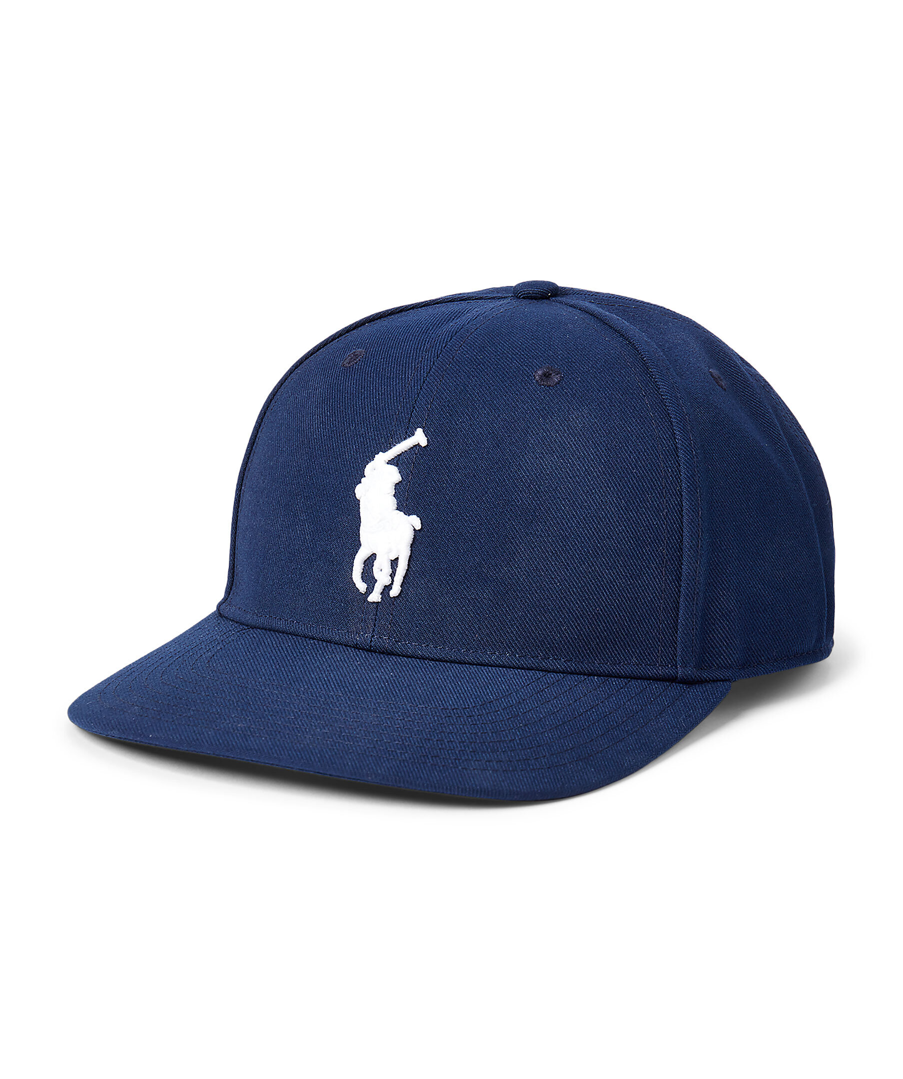 Marinblå keps från Polo Ralph Lauren med broderad vit polohäst på framsidan och baksidan. Justerbart spänne baktill.