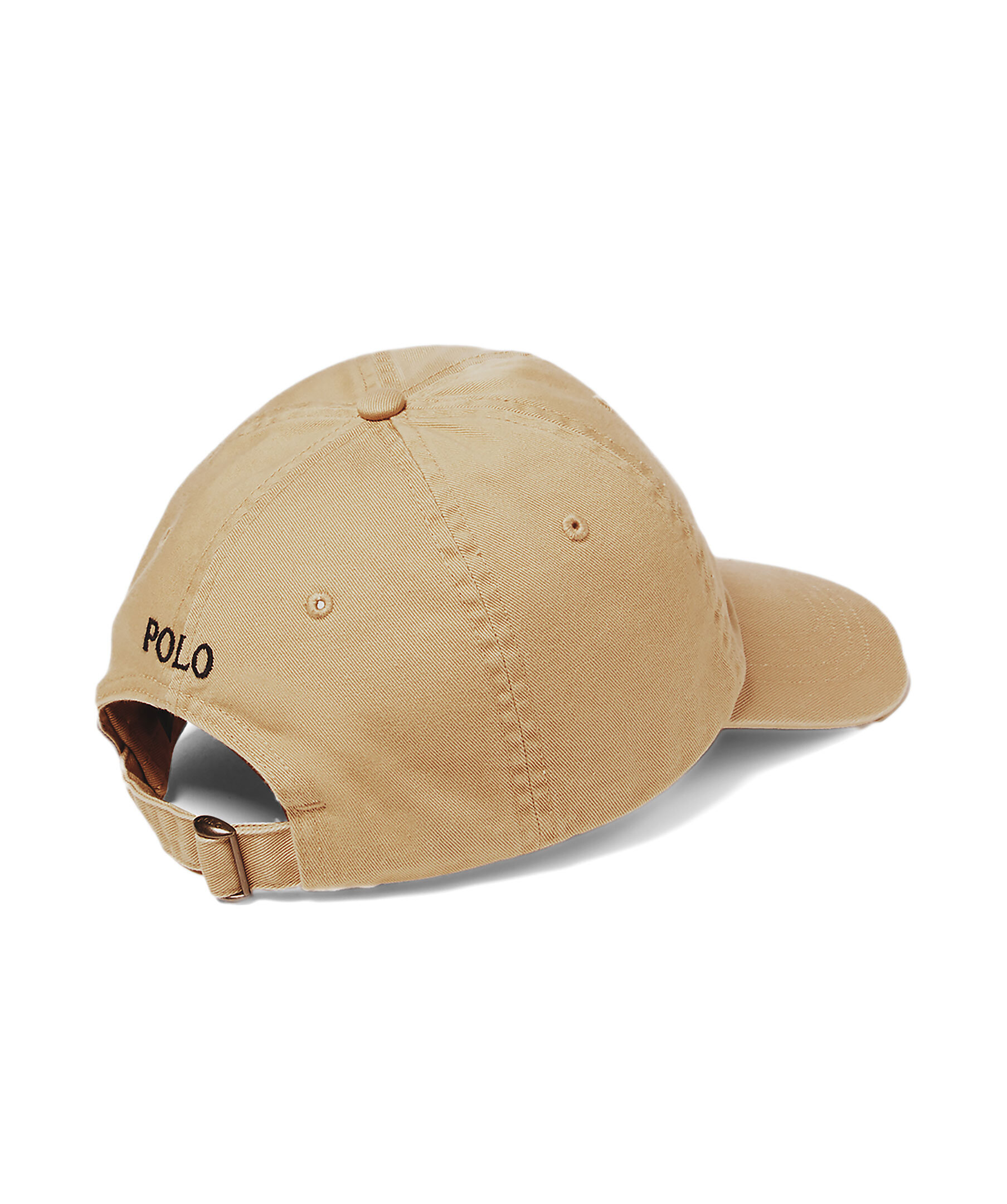 Beige keps från Polo Ralph Lauren. Kepsen har en signaturbroderad pony på framsidan. Tillverkad av 100% bomull, chinotyg i bomull blir bara bättre med slitage. Sömad brätte. Sexpanelskonstruktion. Broderade ventilationshylsor. Broderad "Polo" och ett glidspänne bak. 59,1 cm inneromkrets.