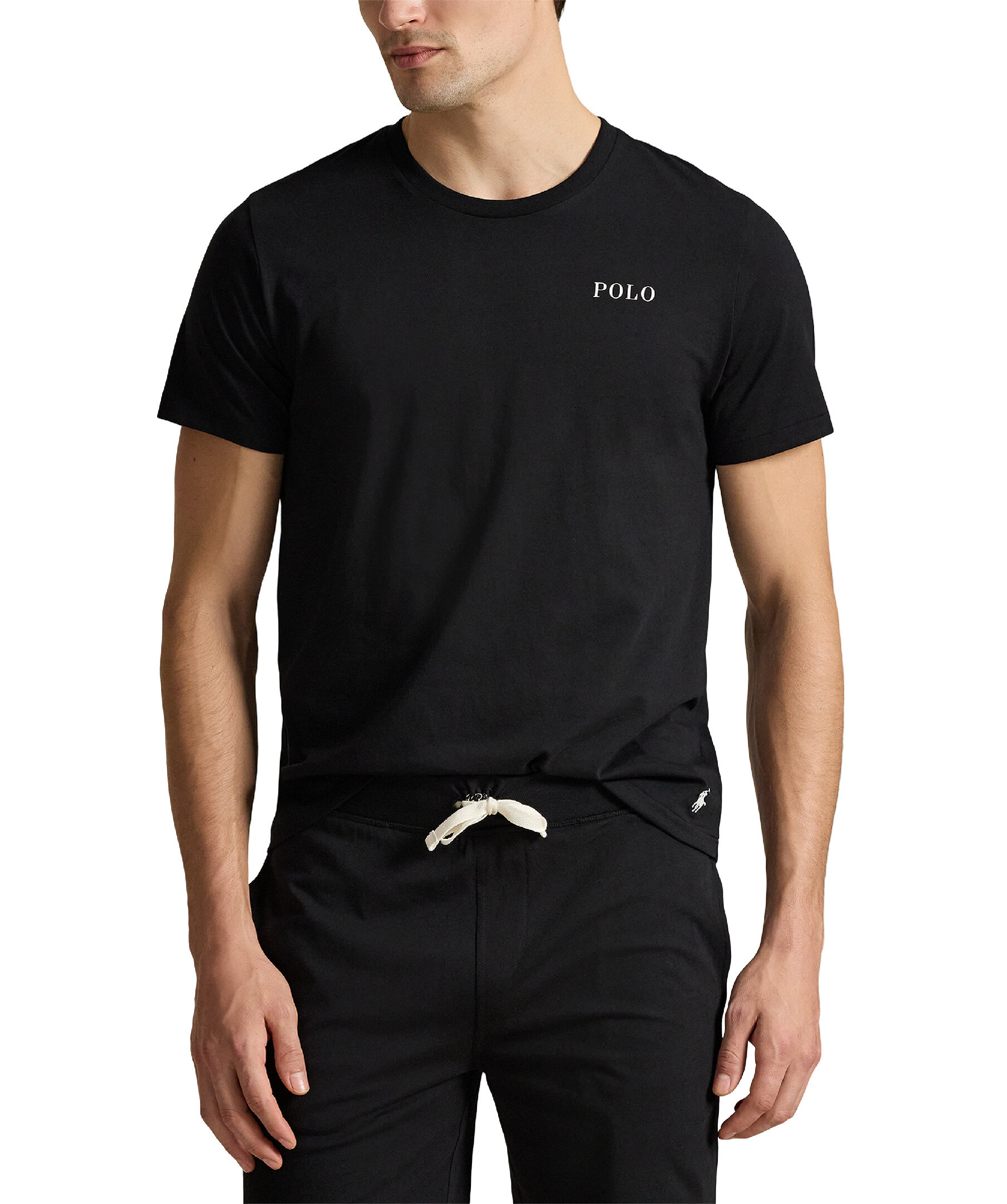 Svart pyjamas t-shirt från Polo Ralph Lauren. Denna mjuka, kortärmade pyjamaströja i bomullsjersey har den ikoniska logotypen och signaturbroderade ponnyn.