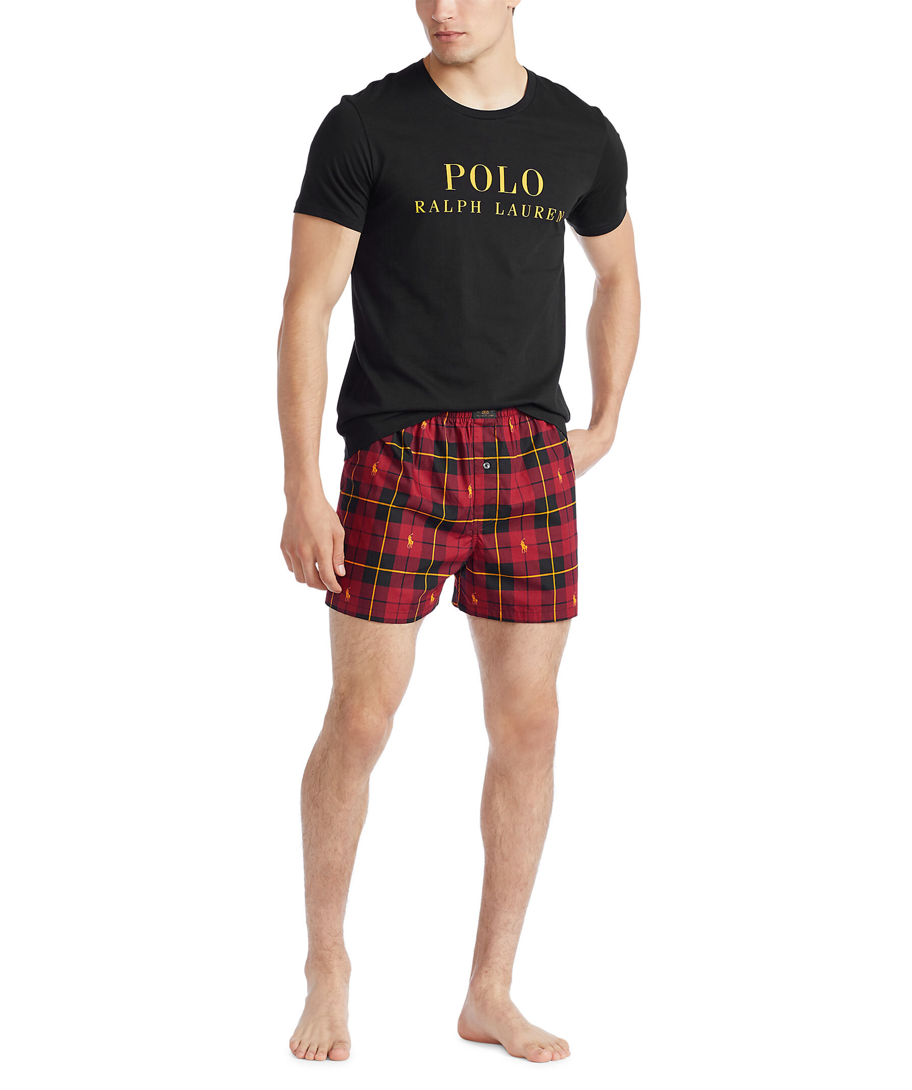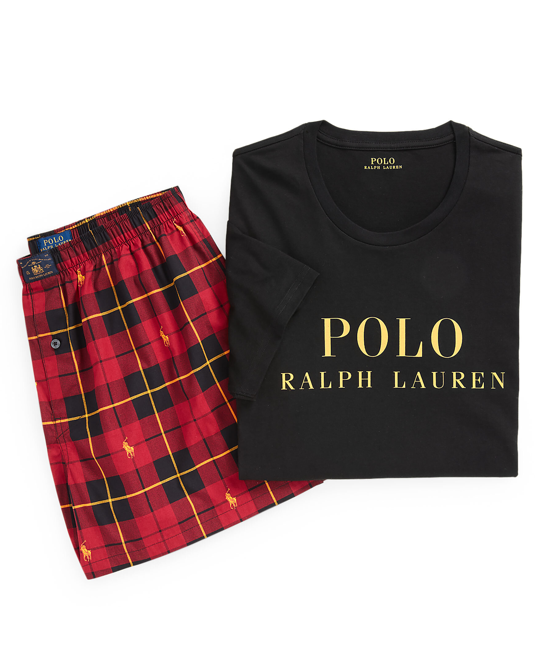 Svart och rödrutigt pyjamas set från Polo Ralph lauren. Kalsonger och t-shirt tillverkade i 100% bomull. Svart t-shirt med tyckt logotyp över bröstet. Rödrutiga kalsonger med knappar med logotyp på patch framtill.