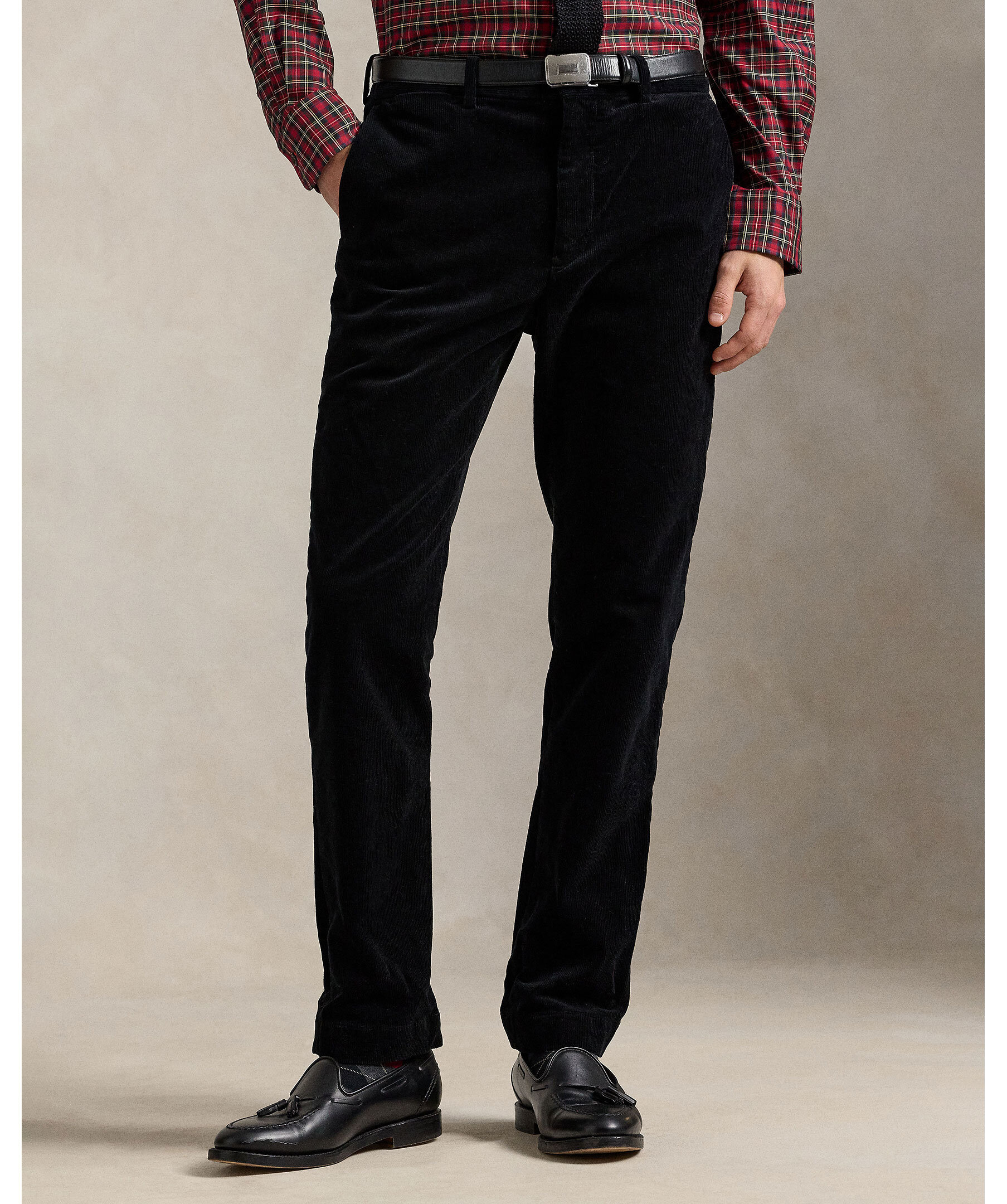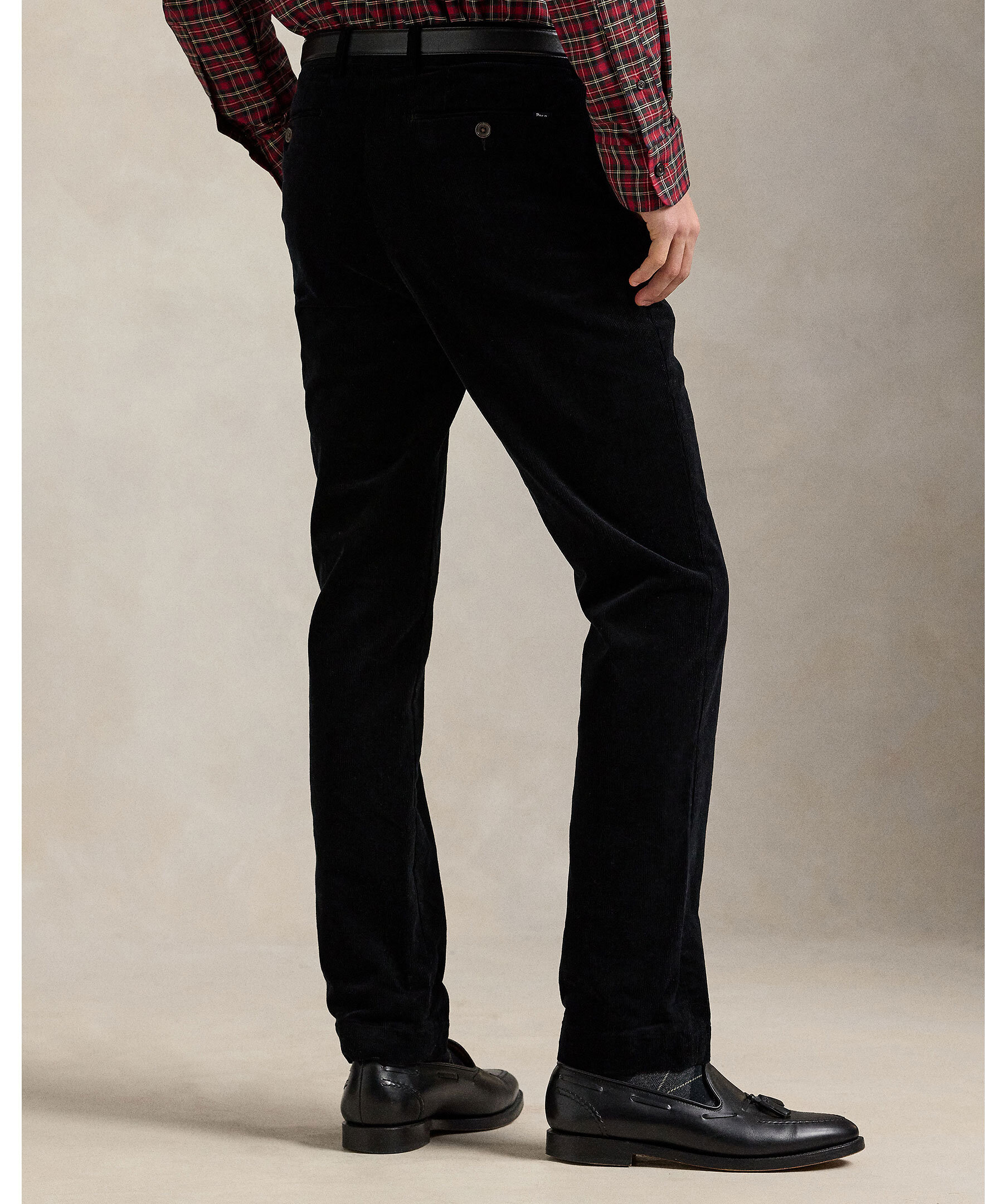 Svarta, finspåriga manchester byxor från Polo Ralph Lauren. Byxorna har en smal passform och manchestertyget ger en lyxig känsla och en aning stretch för komfort. Designade med låg midja, smal passform genom benet, klassiska fickor och knappstängda bakfickor.