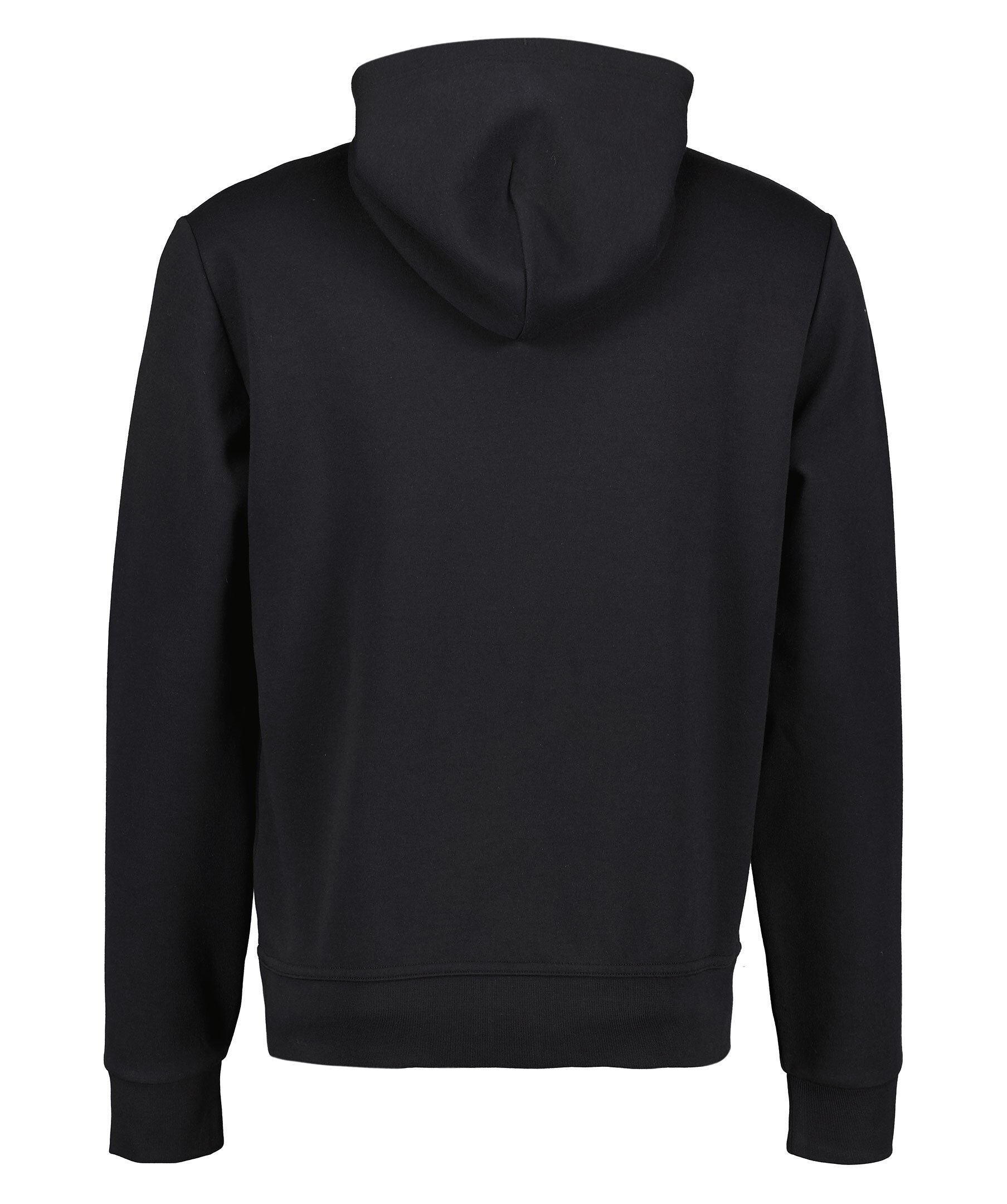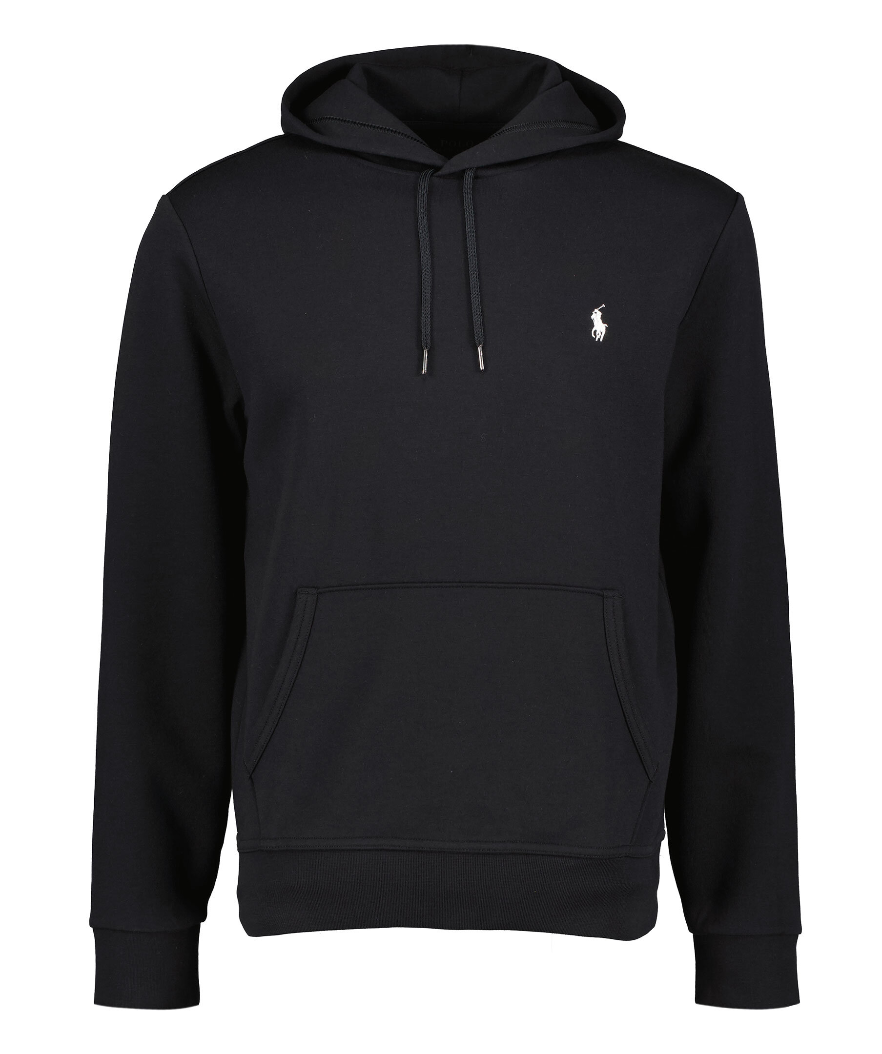 Svart hoodie från Polo Ralph Lauren. Luva med dragsko. Ribbstickade muddar i ärm- och plaggslut. Känguruficka på magen. Broderad logotyp på vänster bröst.
