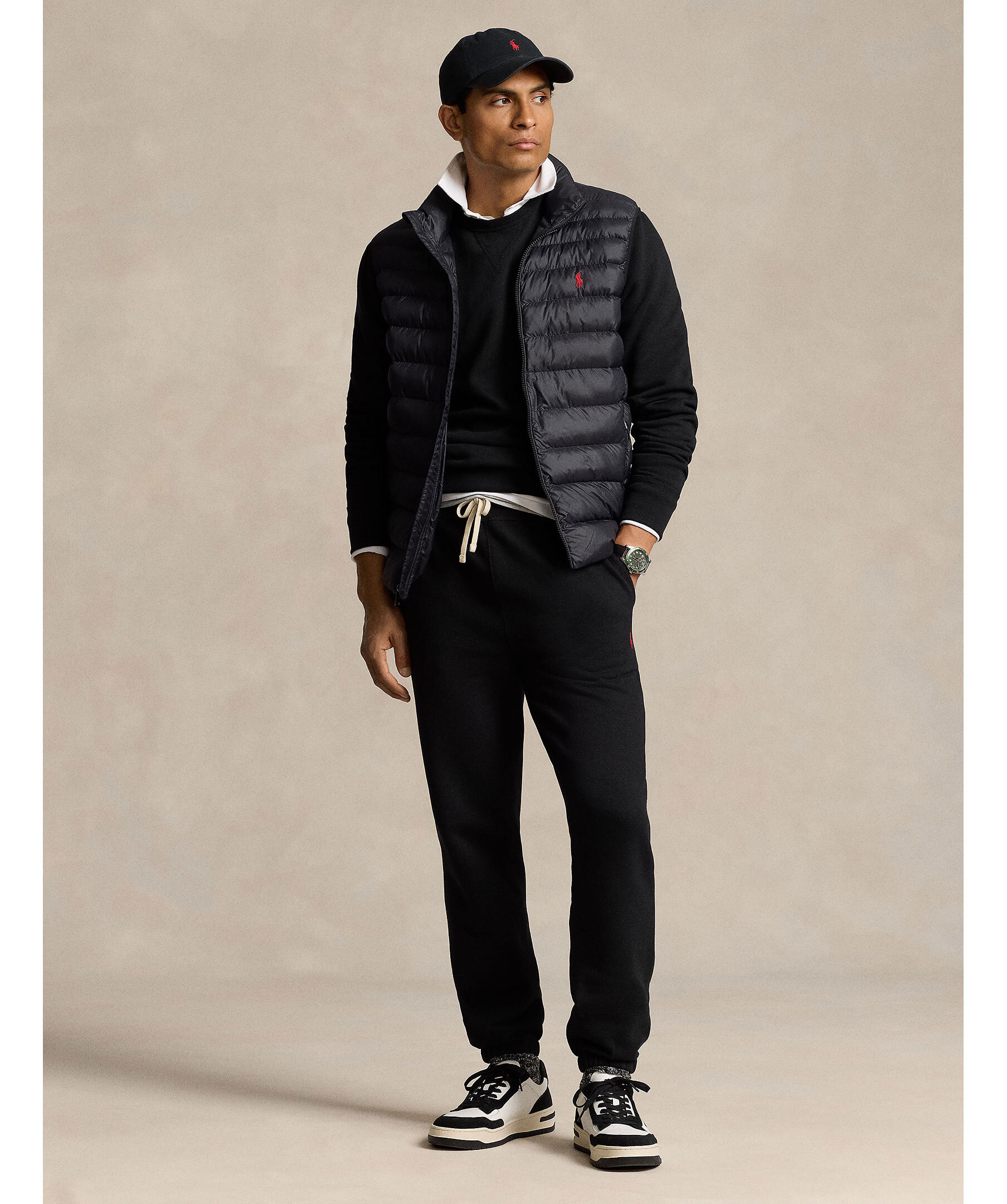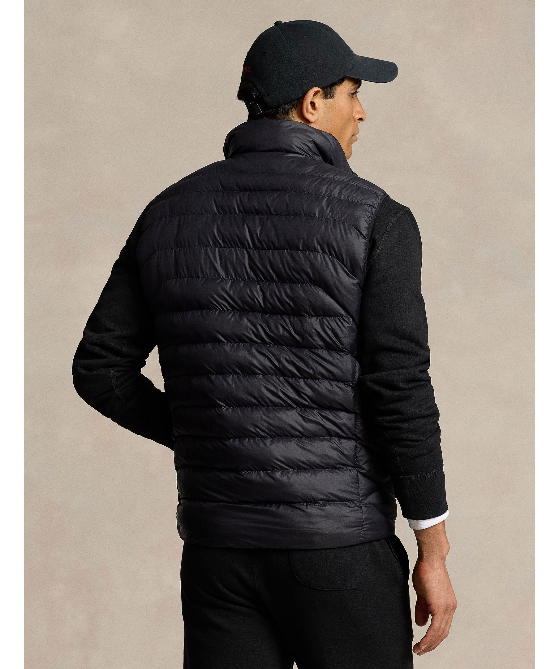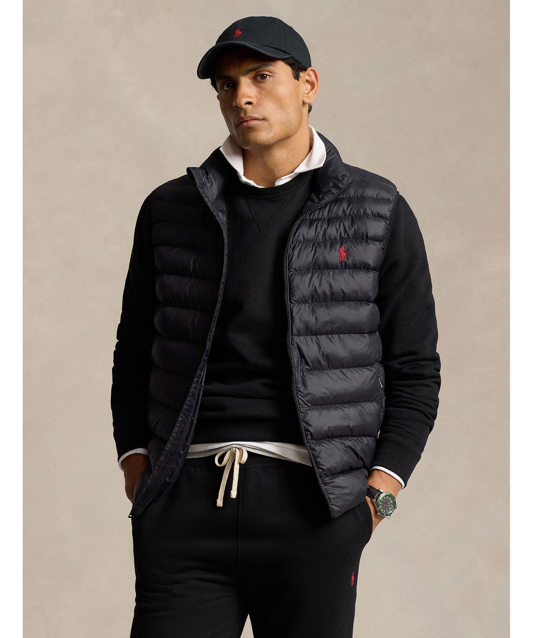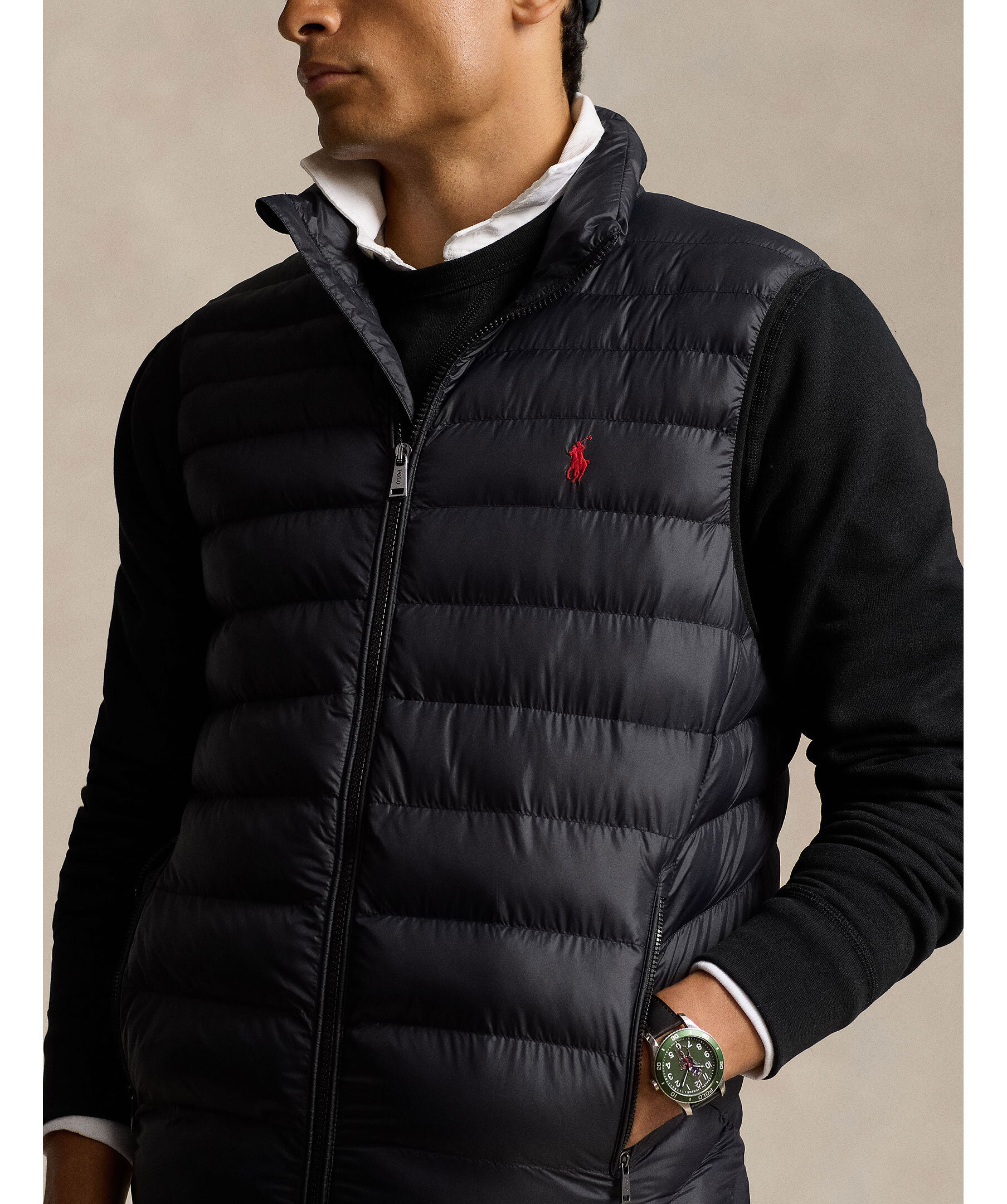 Svart vadderad väst från Polo Ralph Lauren. Vattenavvisande yttertyg. Vadderad med polyester och utvecklad som ett alternativ till den klassiska dunvästen. Två framfickor med dragkedja, broderad logotyp på bröstet. Dragsko vid plaggslutet. Packbar design. Modellen är 185cm och har på sig strl M.