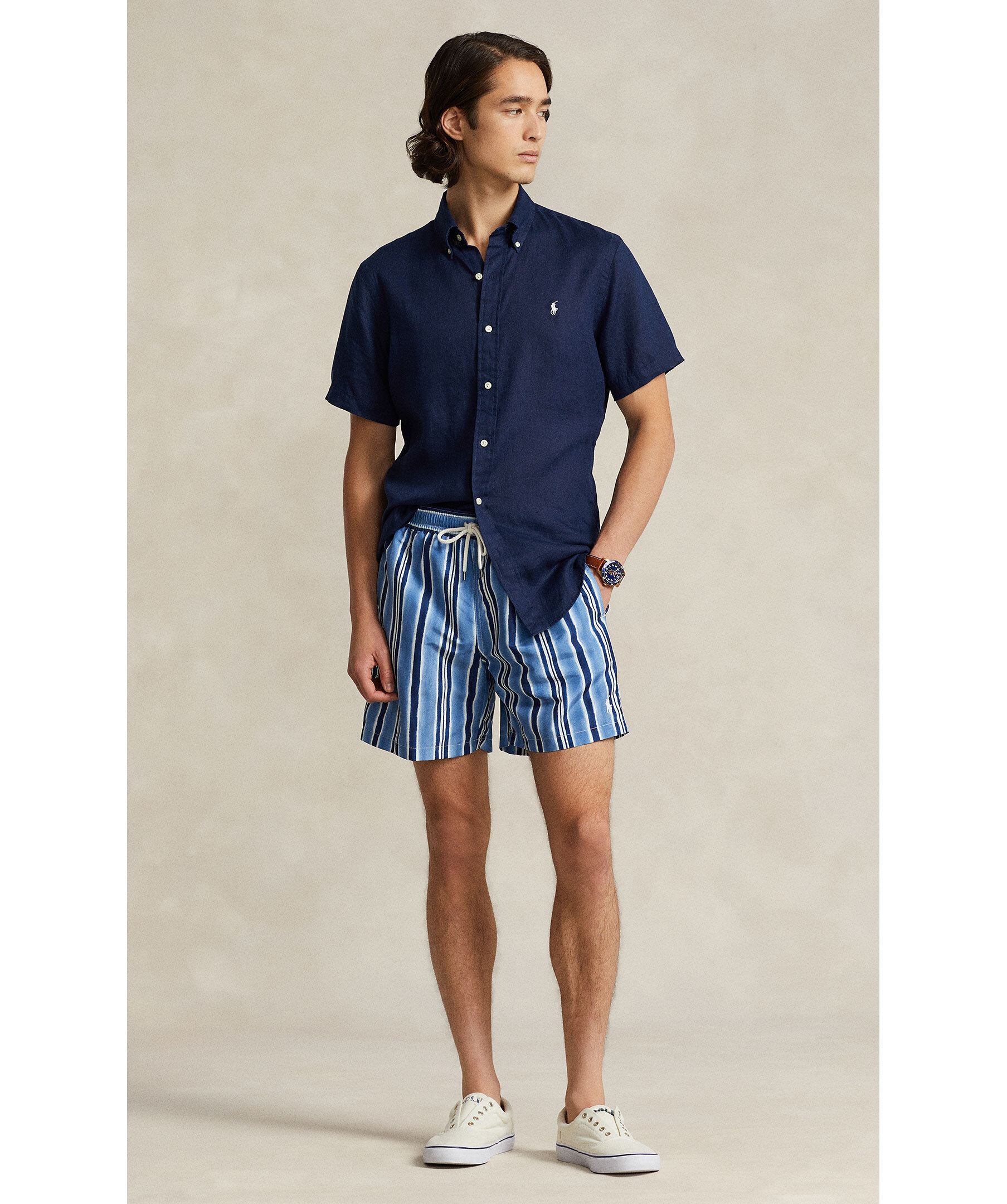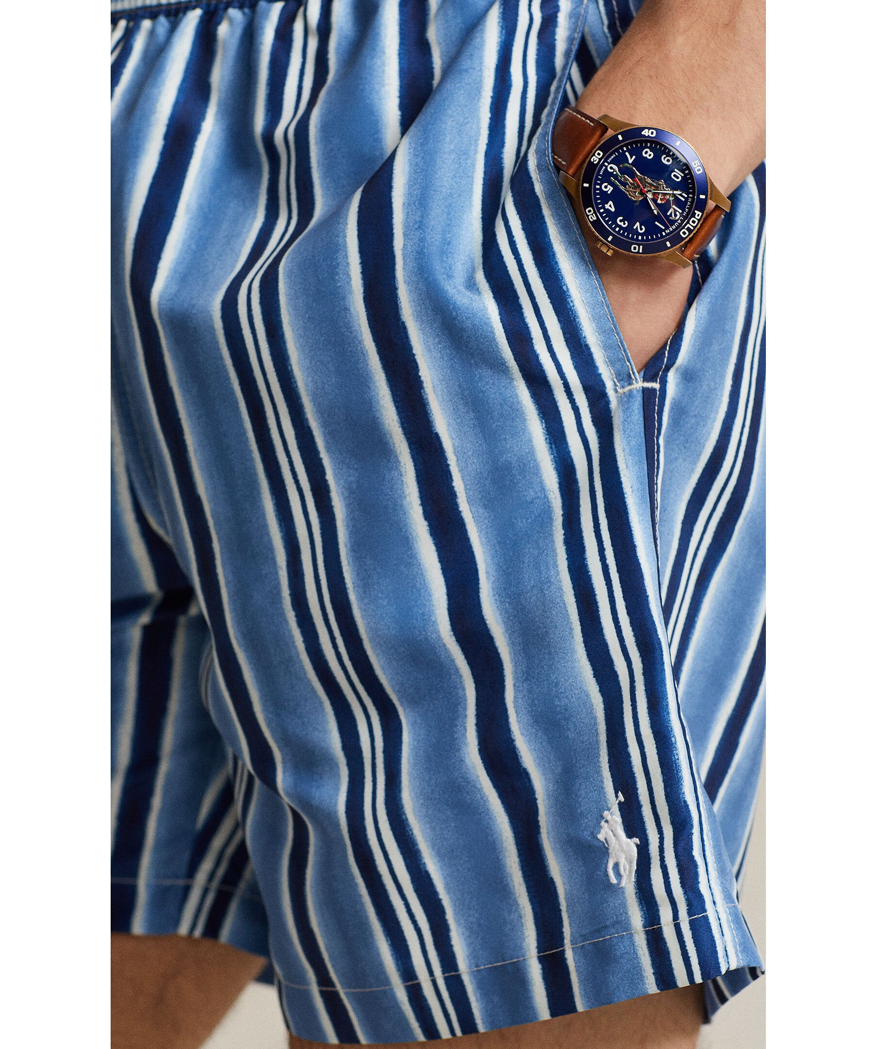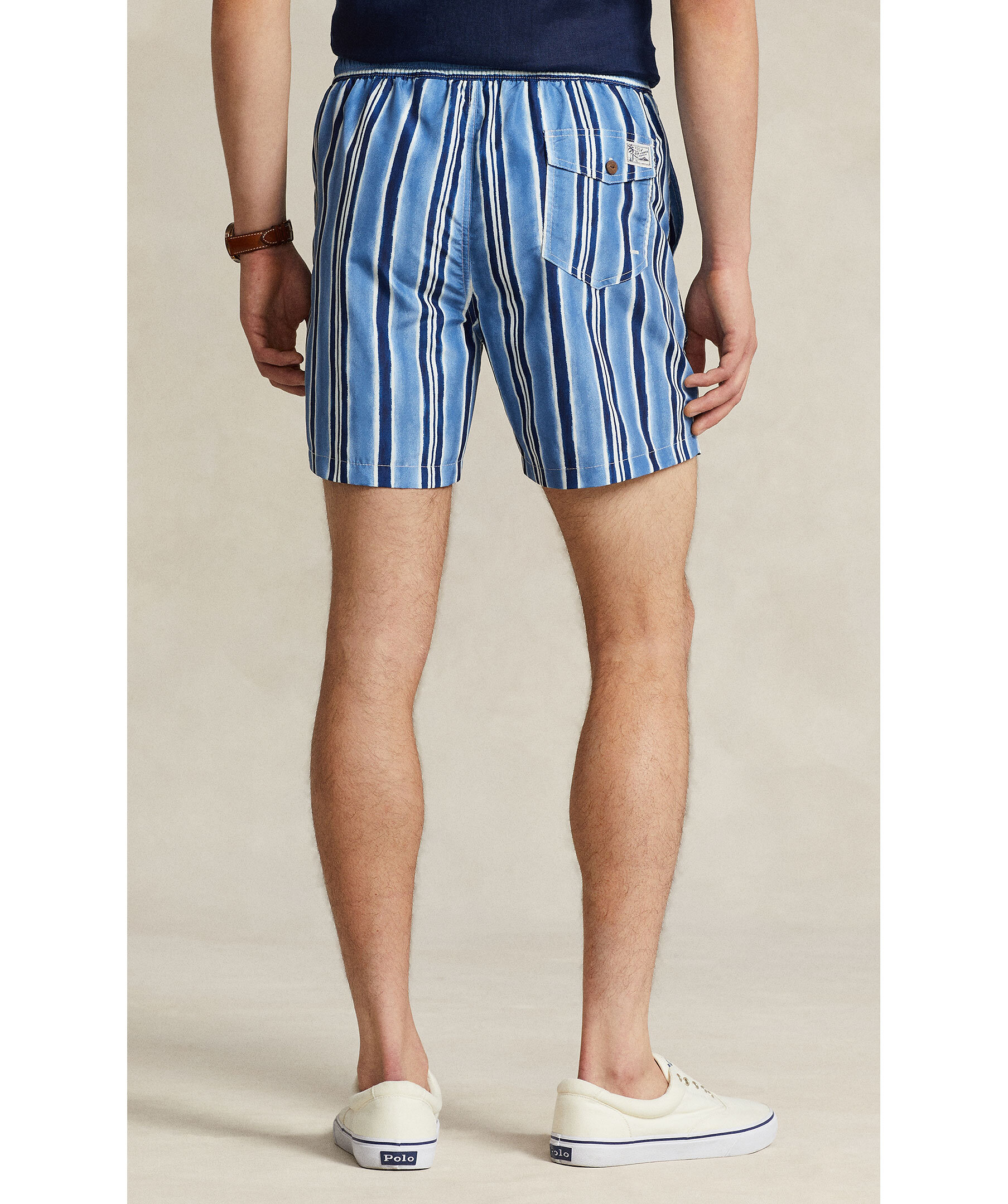 Blå, randiga badbyxor från Polo Ralph Lauren. Elastisk midja med dragsko, två sidfickor samt en bakficka med lock och knapp. Broderad signaturponny vid vänster fåll. Tillverkade i en stretchig bomullsblandning.