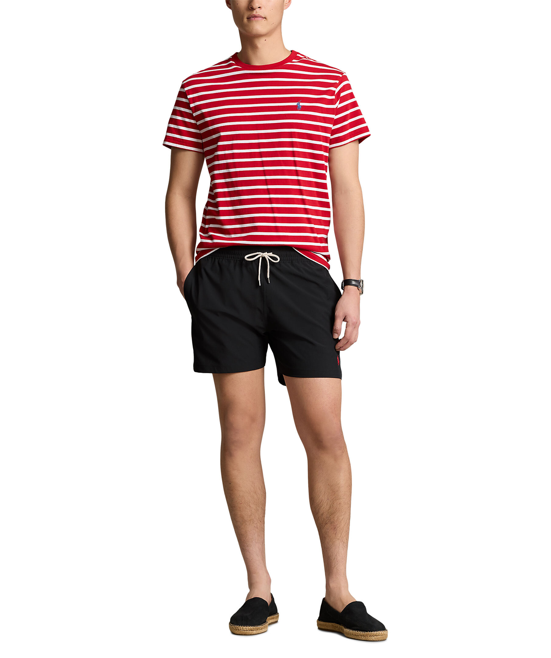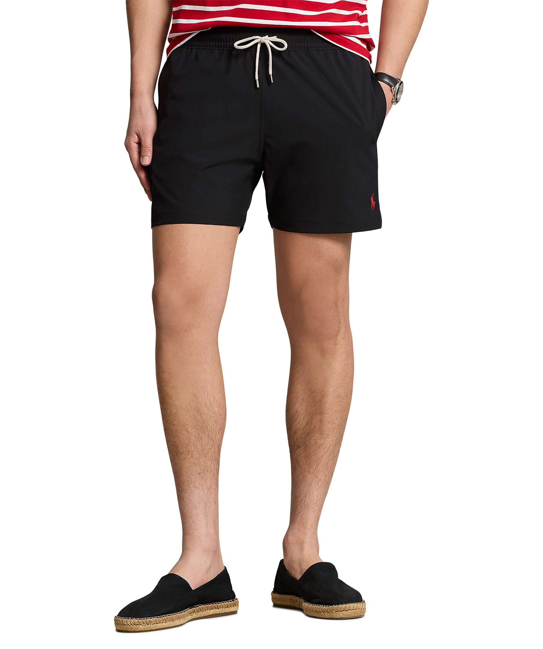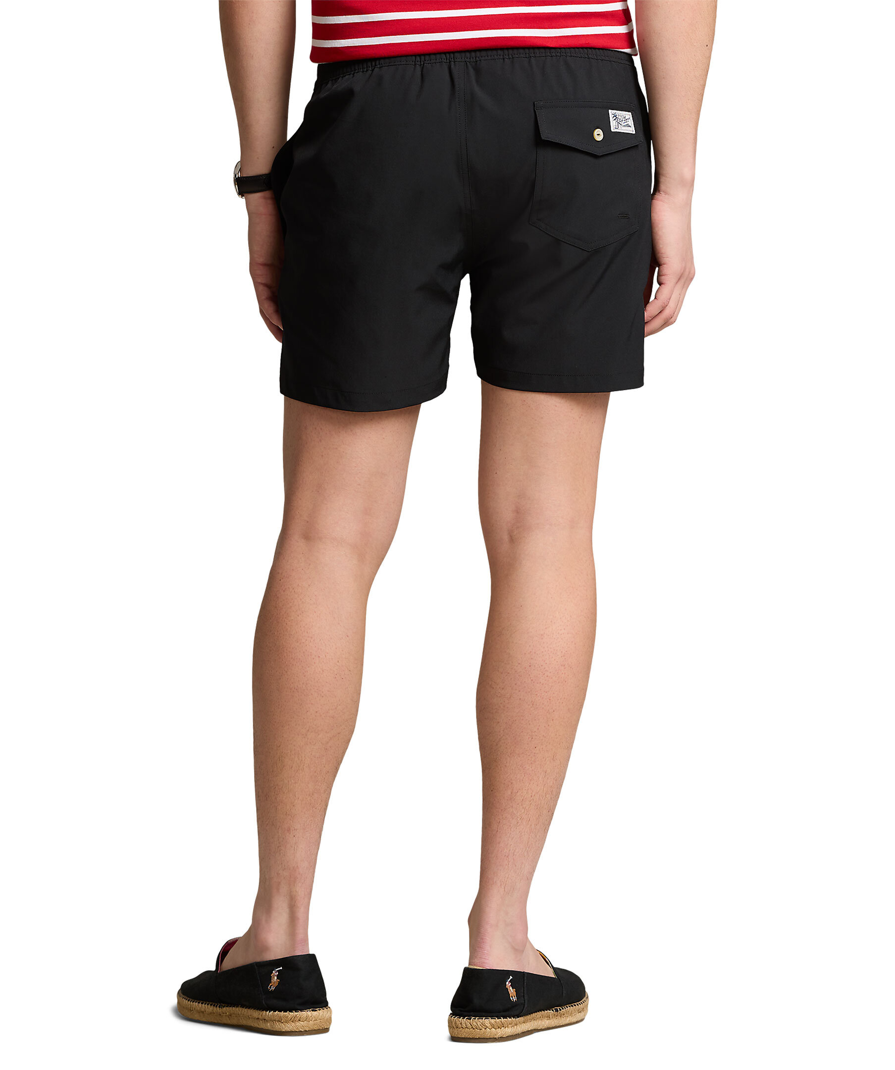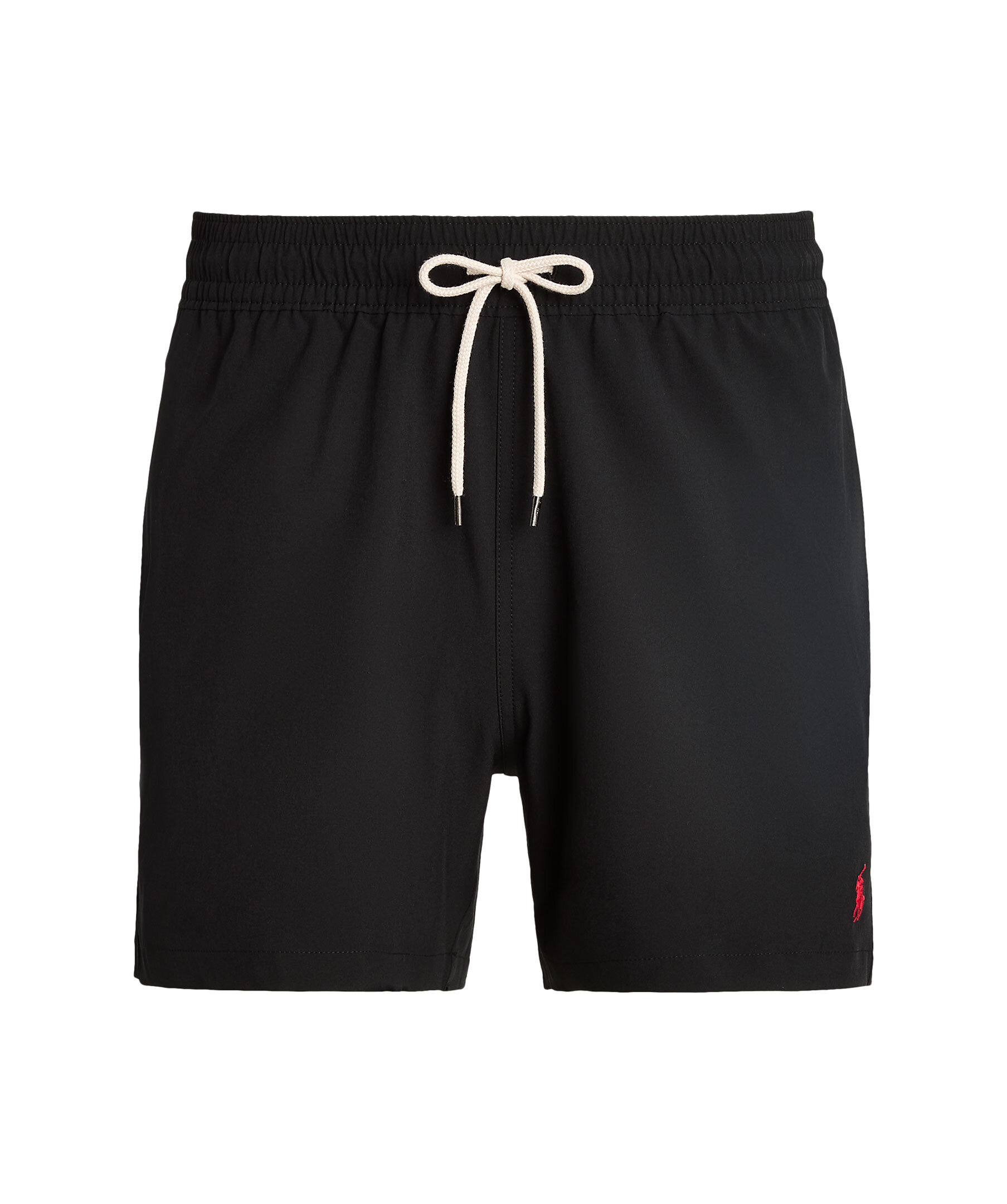 Svarta badbyxor från Polo Ralph Lauren. Elastisk midja med dragsko, två sidfickor samt en bakficka med lock och knapp. Broderad signaturponny på vänster fåll. Tillverkade i en stretchig bomullsblandning.