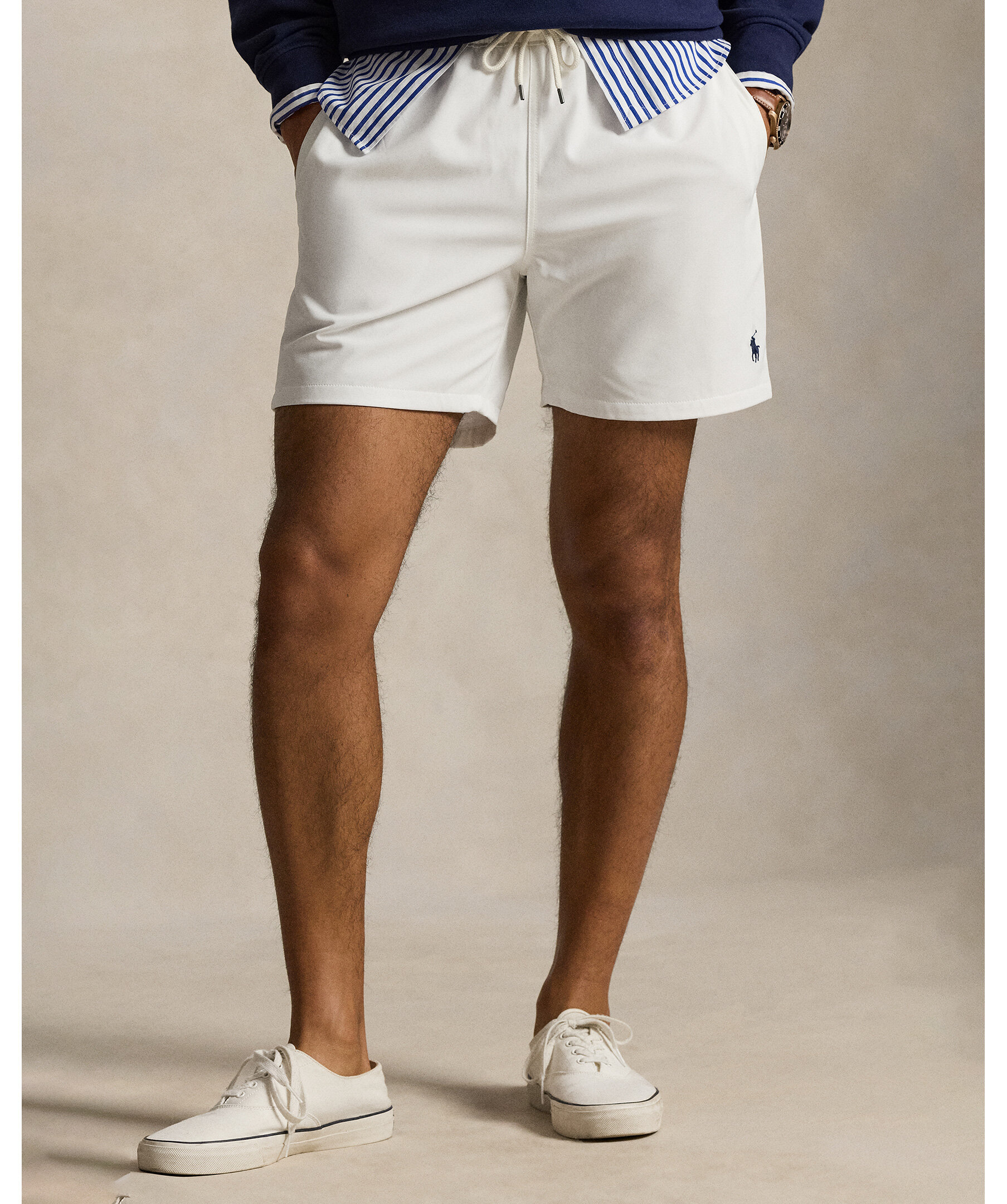 Vita badbyxor från Polo Ralph Lauren. Dessa badbyxor med nätfoder är vävda med extra stretch och har den signaturbroderade ponnyn.