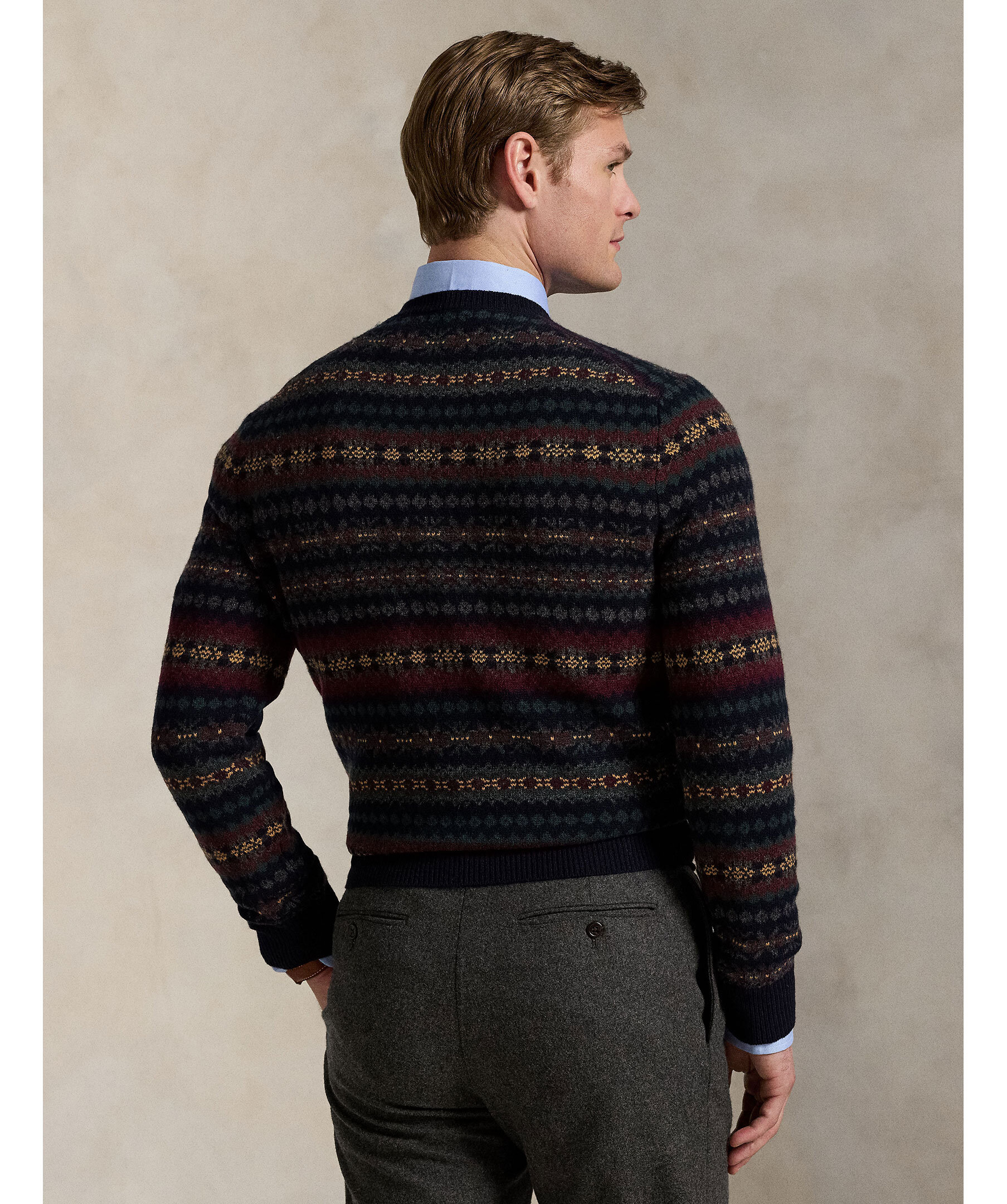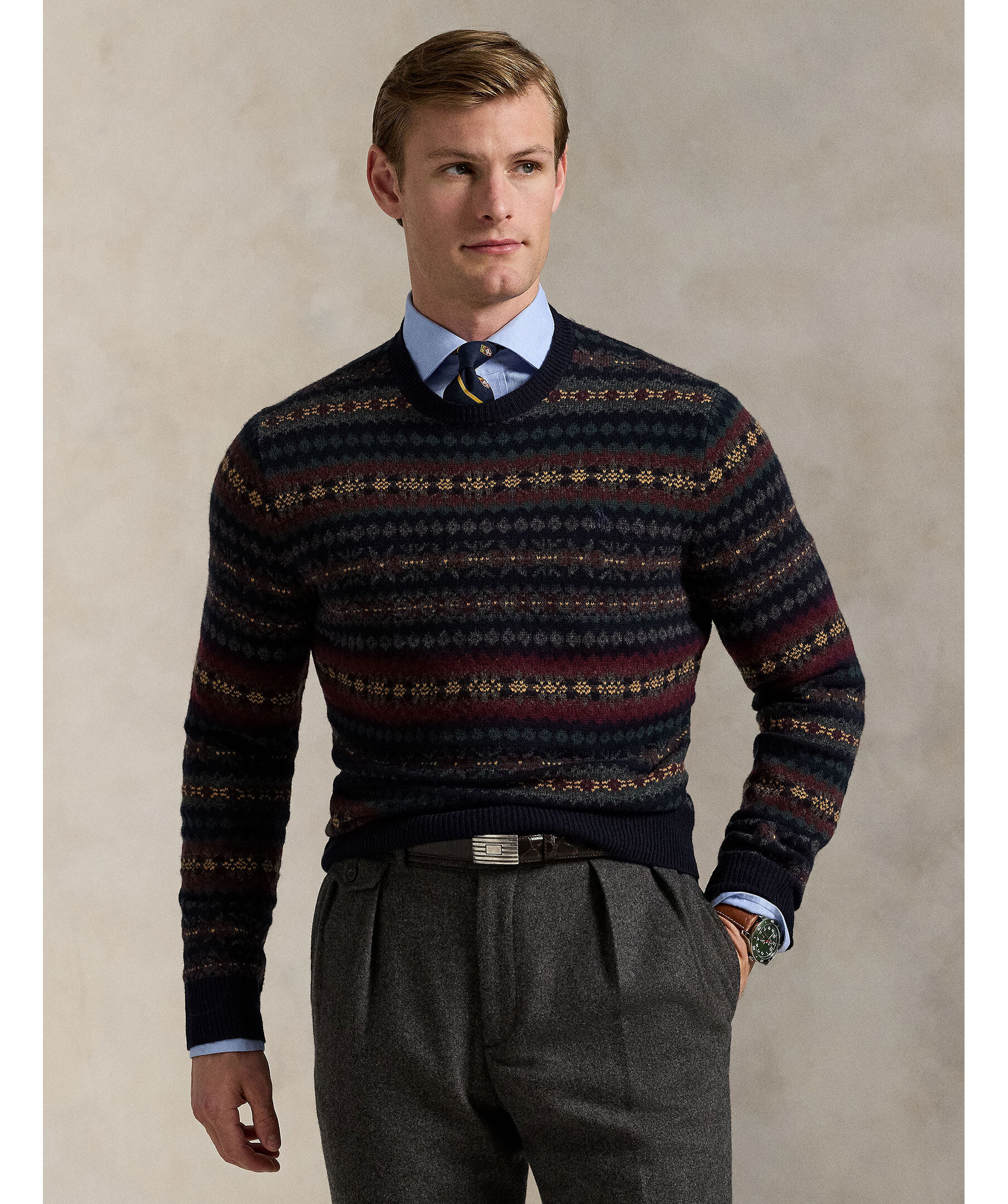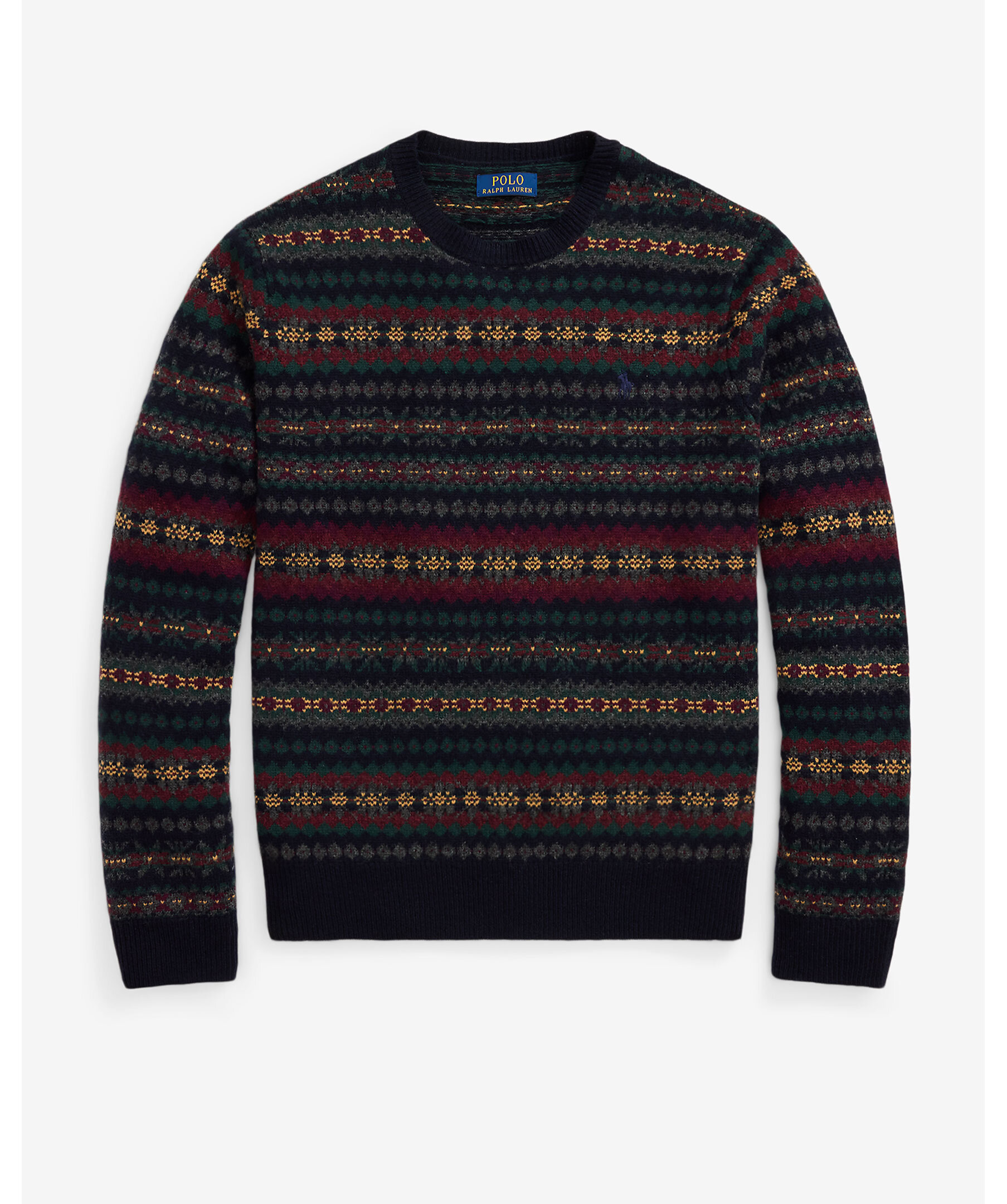 En stickad tröja med Fair Isle‑mönster från Polo Ralph Lauren. Tillverkad i ren ull, ribbstickade detaljer vid halsringning, ärmslut och nederkant ger bättre passform och komfort. Tröjan har rund hals och normal passform.