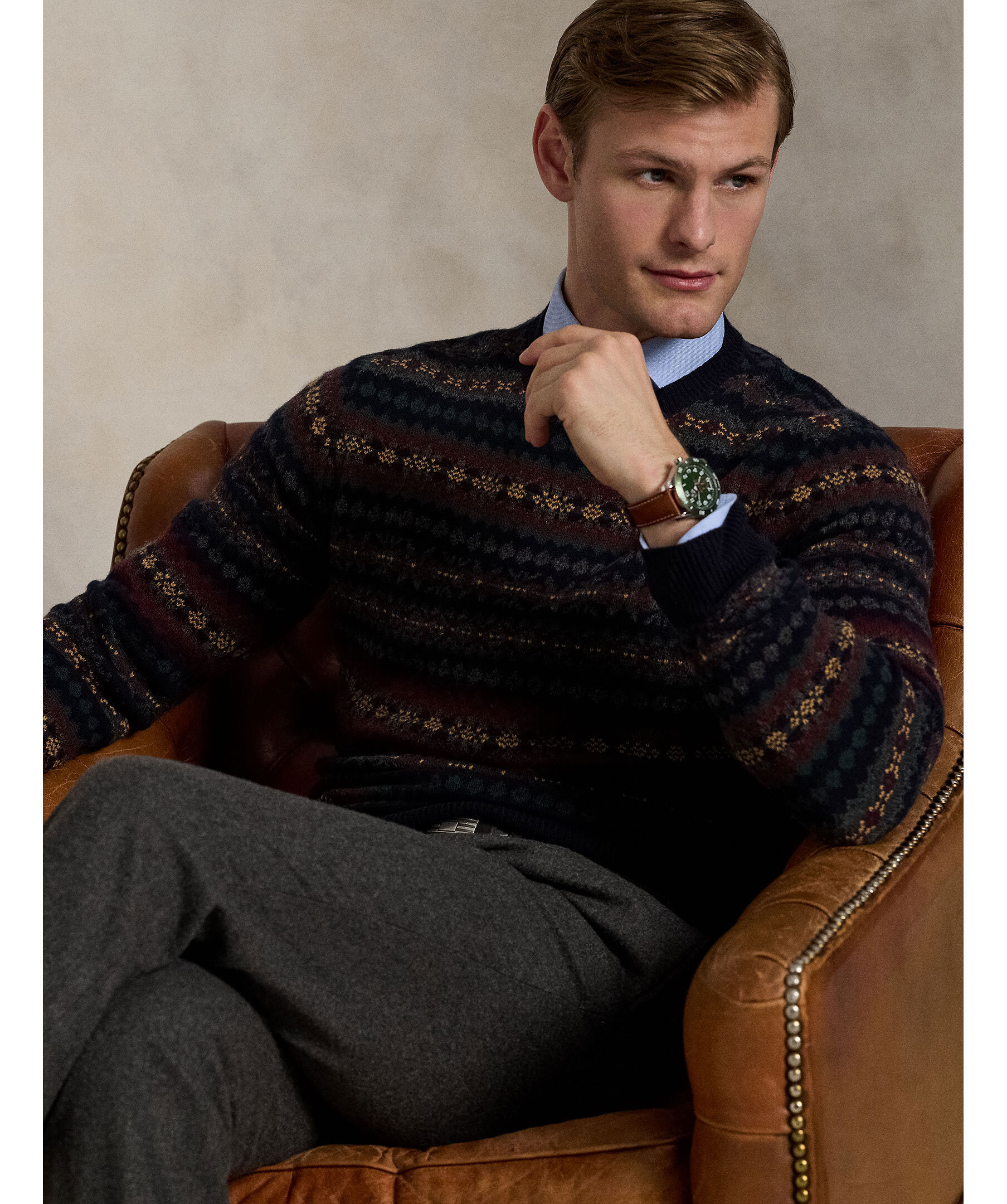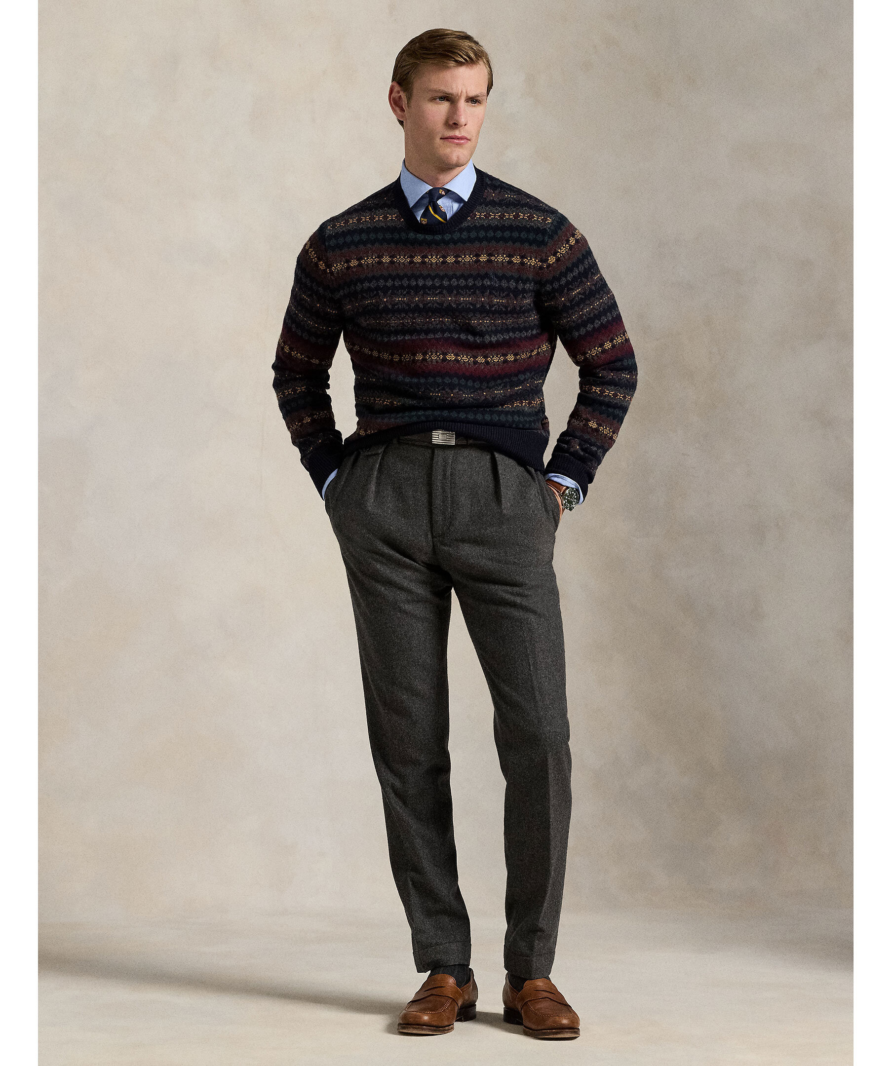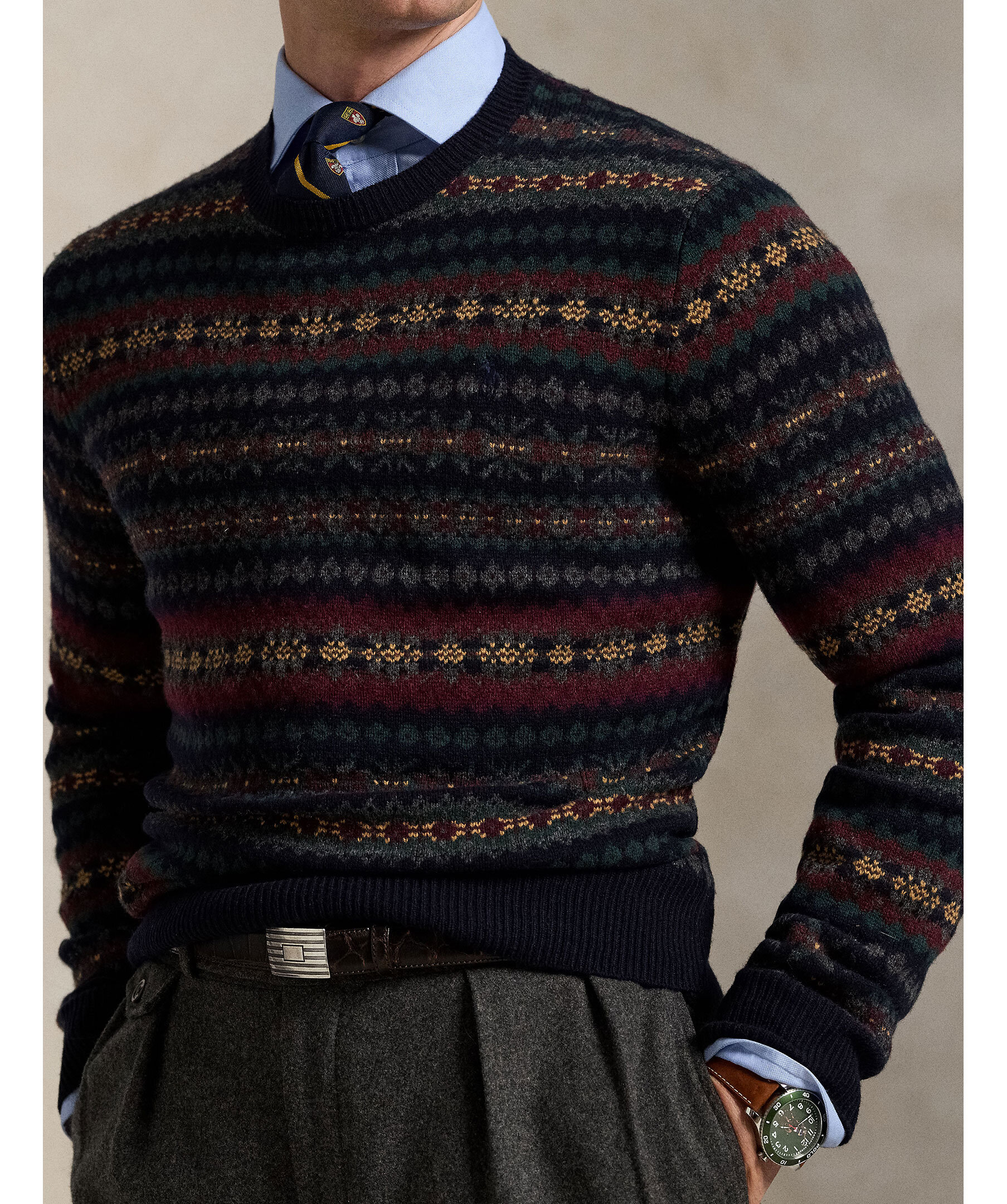 En stickad tröja med Fair Isle‑mönster från Polo Ralph Lauren. Tillverkad i ren ull, ribbstickade detaljer vid halsringning, ärmslut och nederkant ger bättre passform och komfort. Tröjan har rund hals och normal passform.