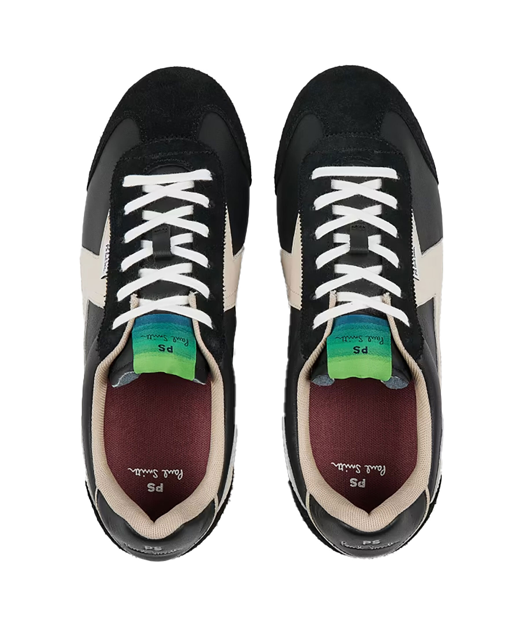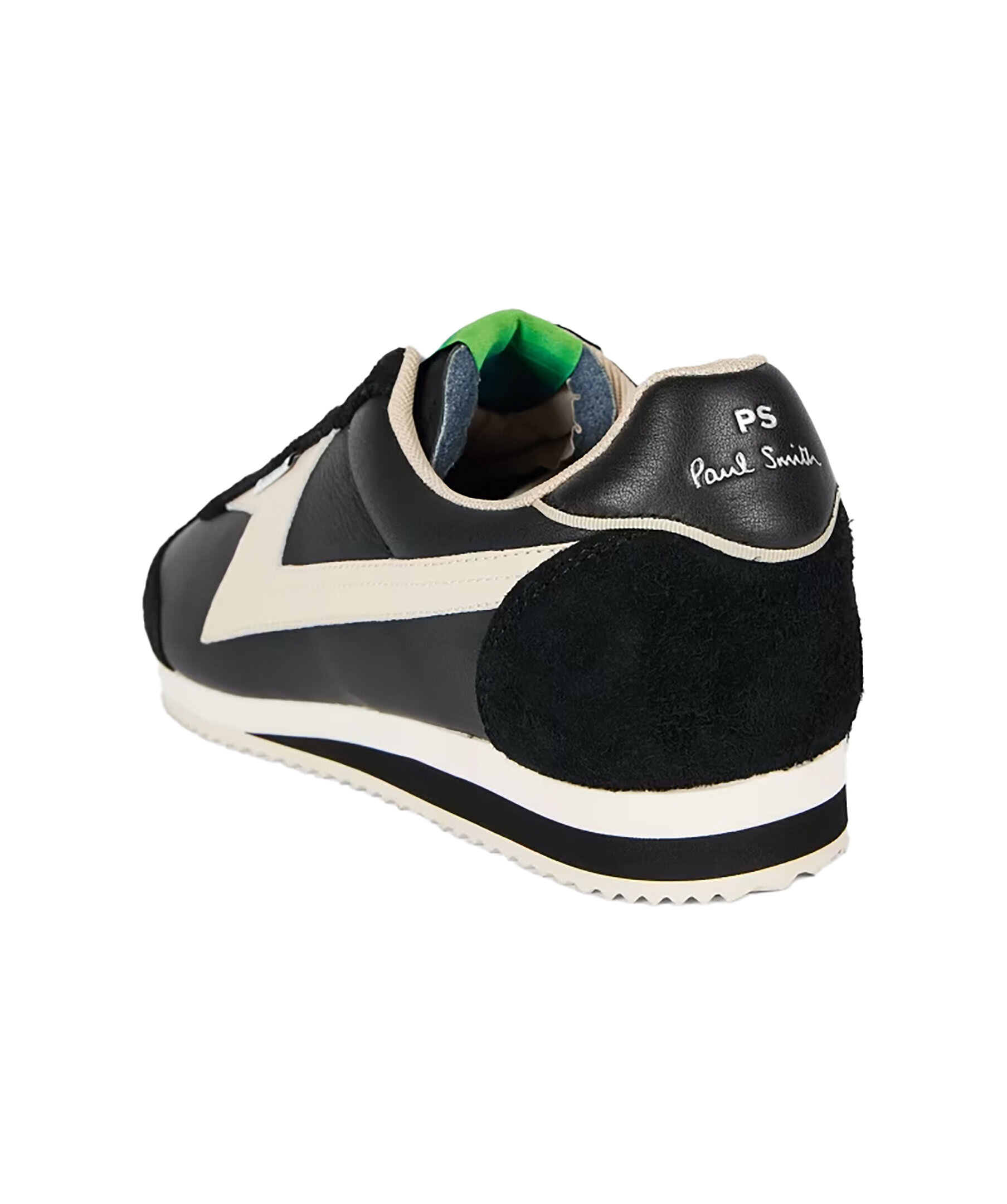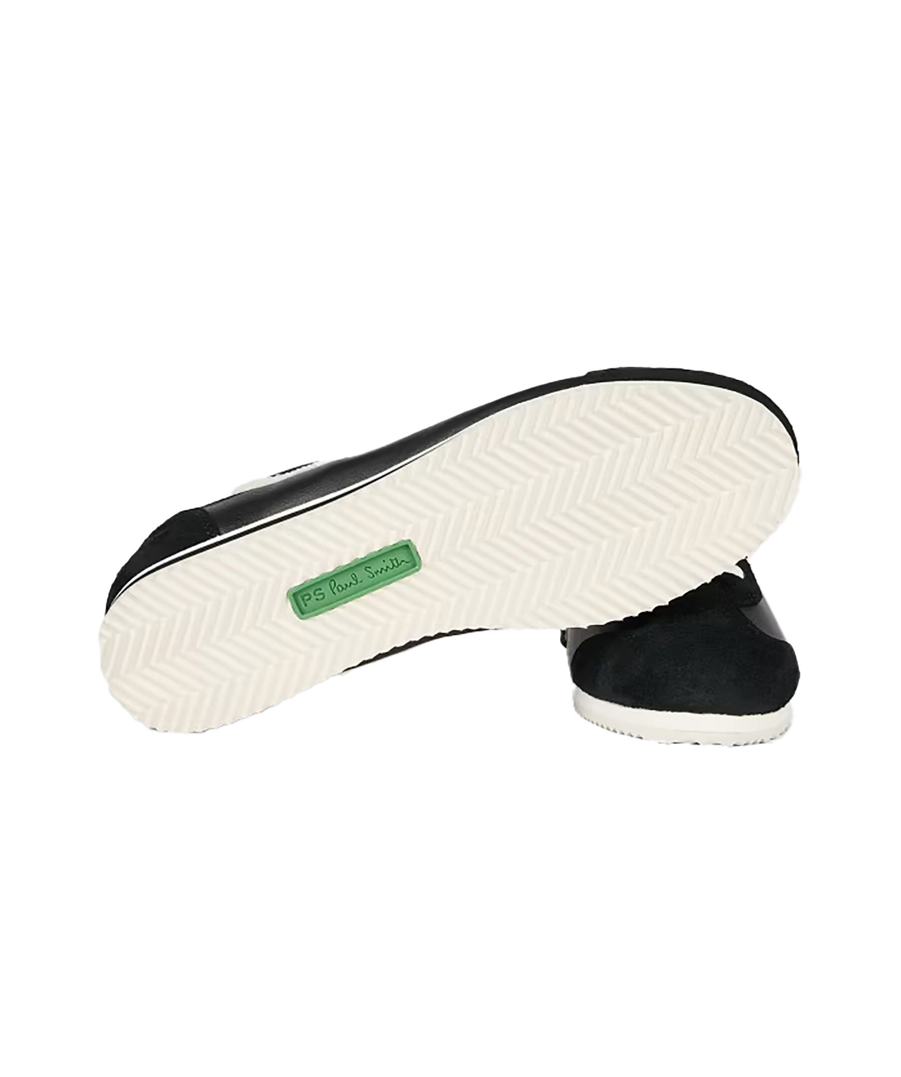 Svarta sneakers i läder från PS Paul Smith. Skorna har ton-i-ton mockadetaljer och en vintageinspirerad löparstil med kontrasterande detaljer. Logotyp på plösen, hälen och utsidan. Komplett med vadderad plös, innersulor och gummisulor för extra komfort.