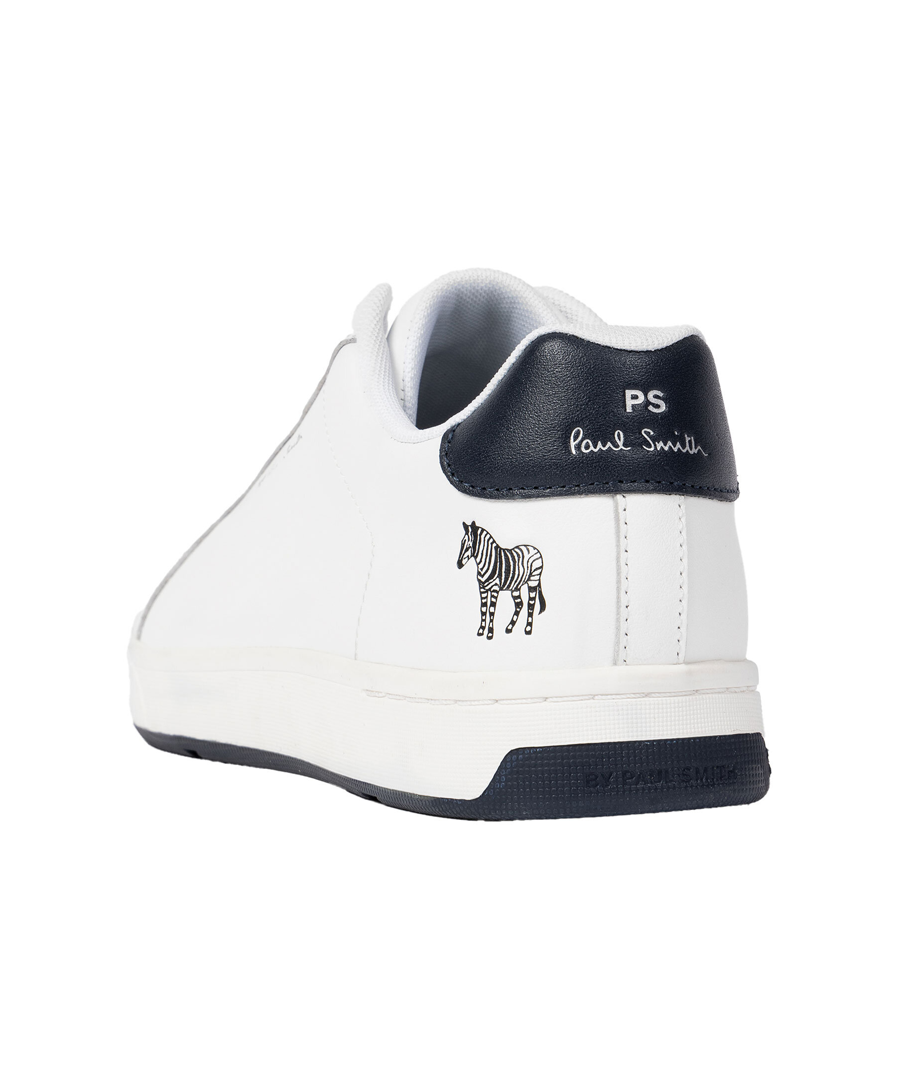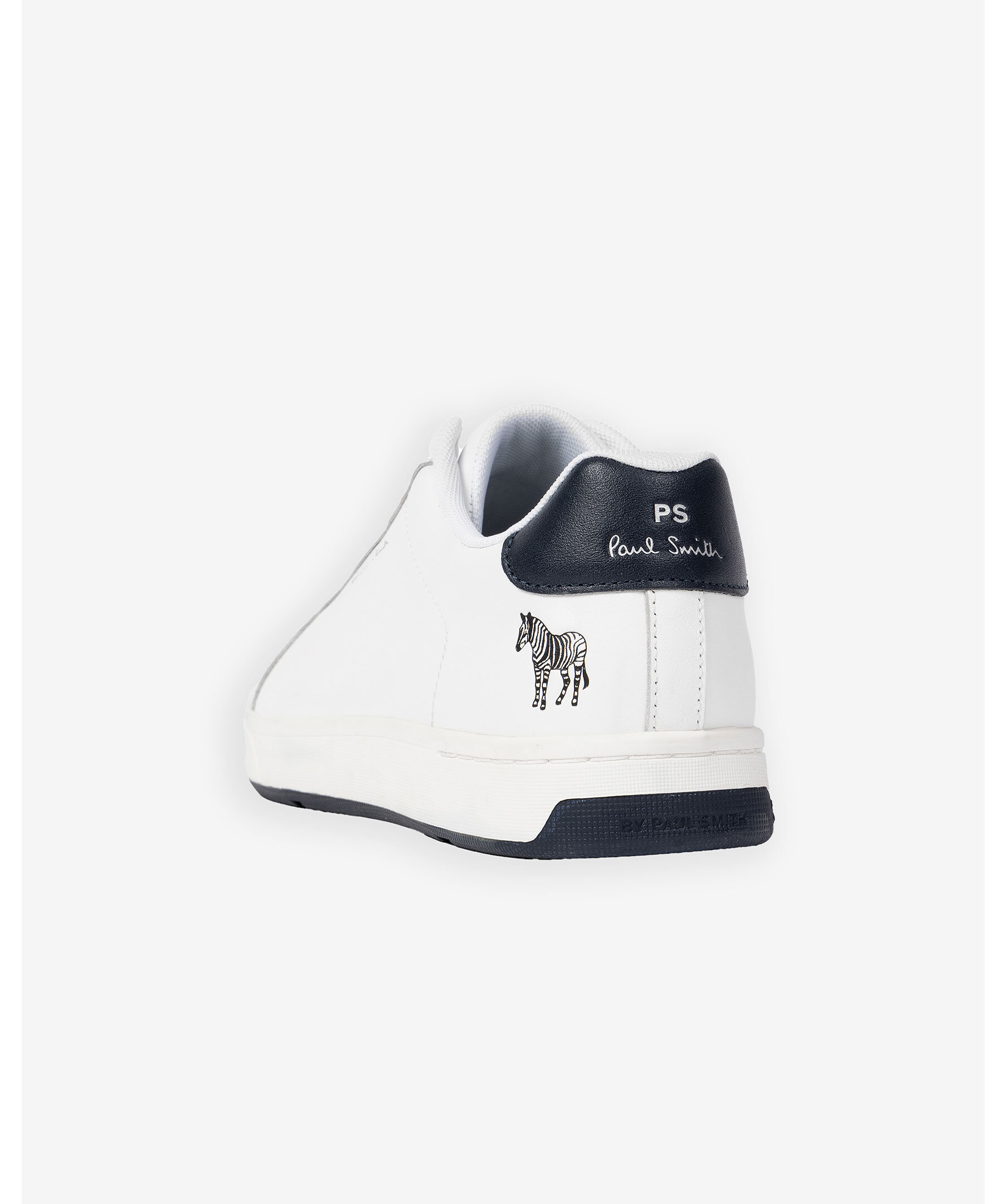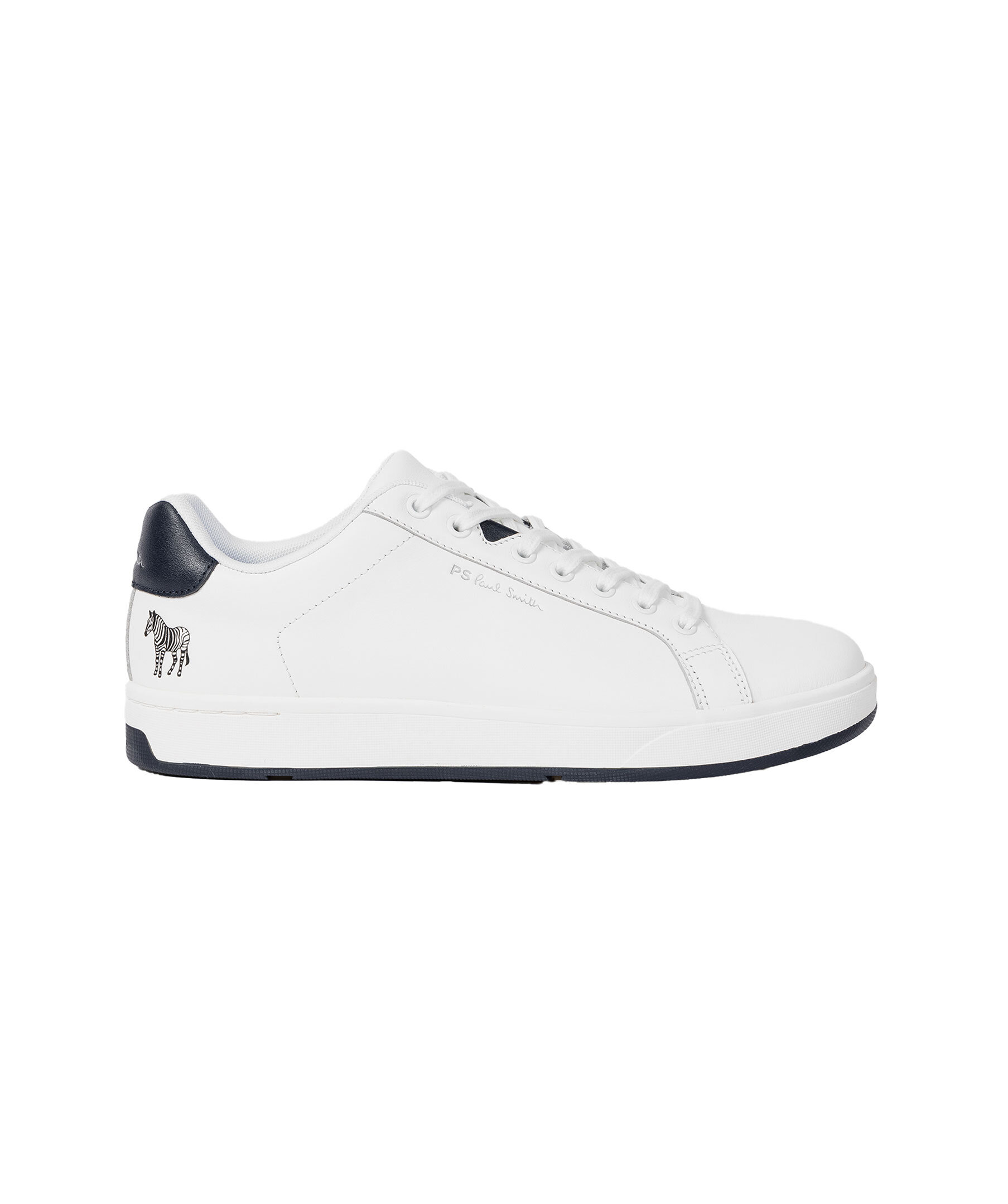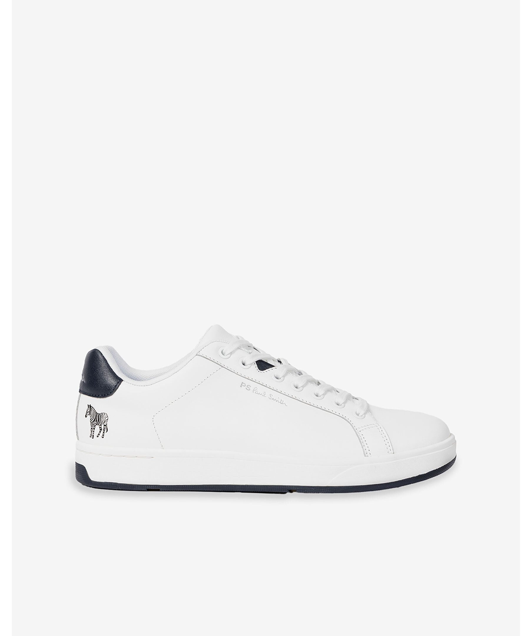 Vita sneakers i läder från PS Paul Smith. Skorna har detaljer i mörkblått, logotyp på plösen, hälen och utsidan samt ett zebramotiv vid hälen.