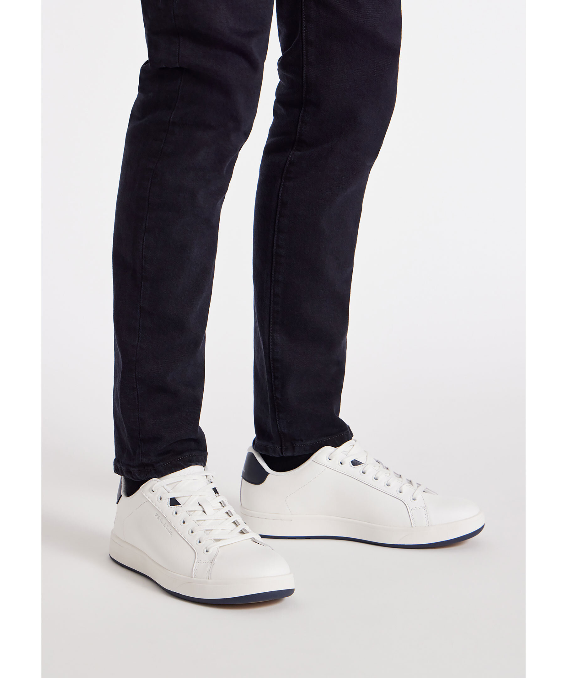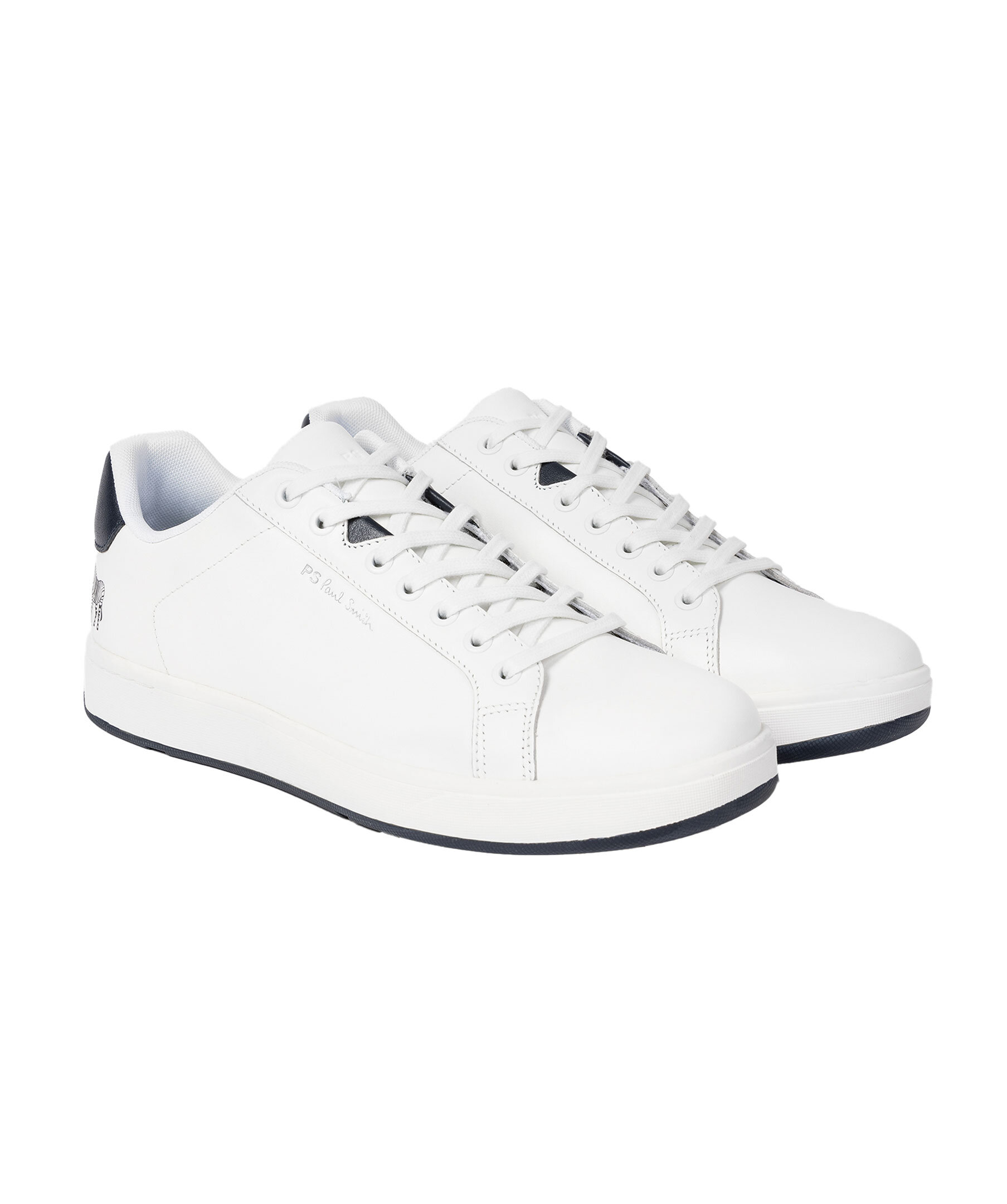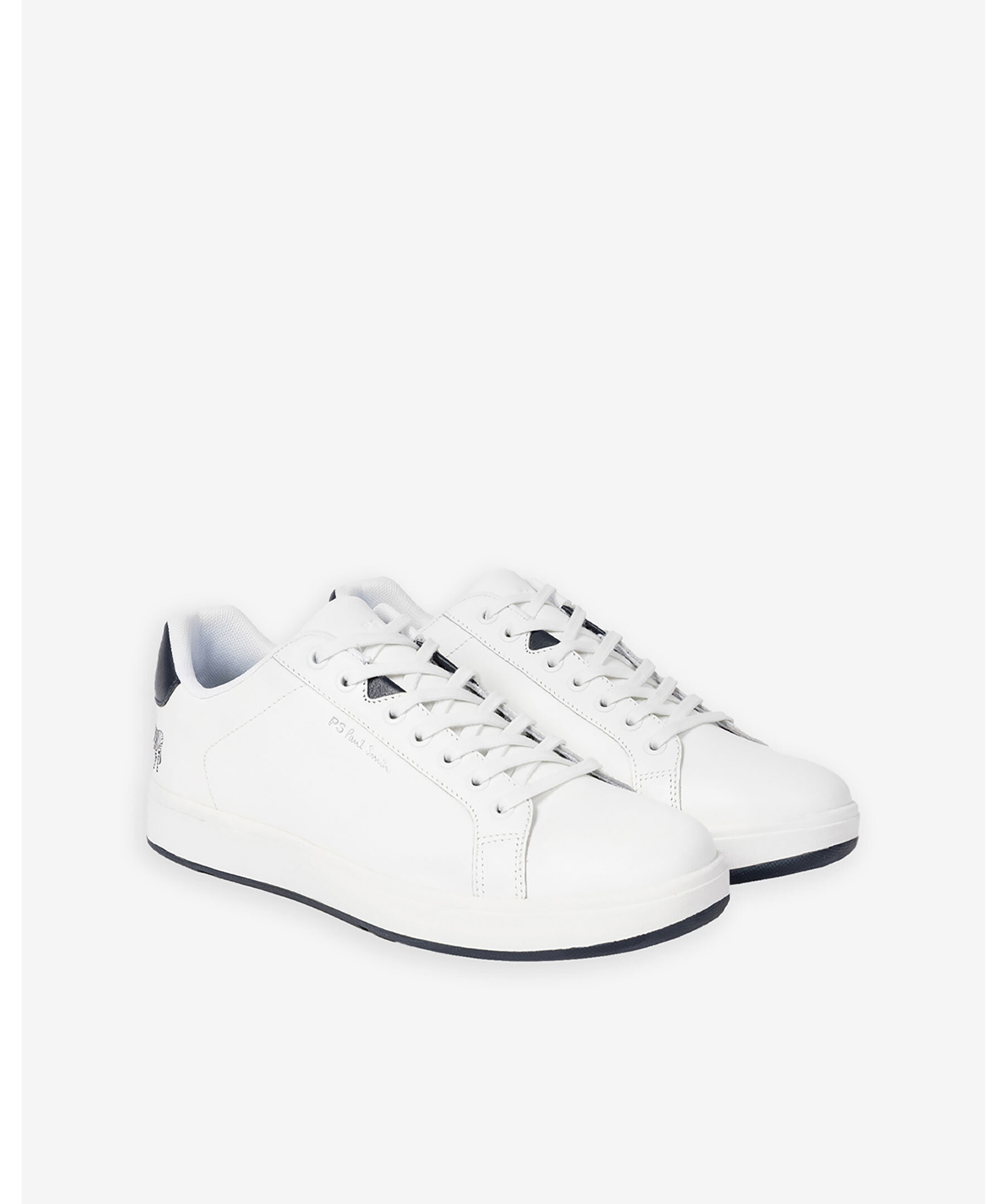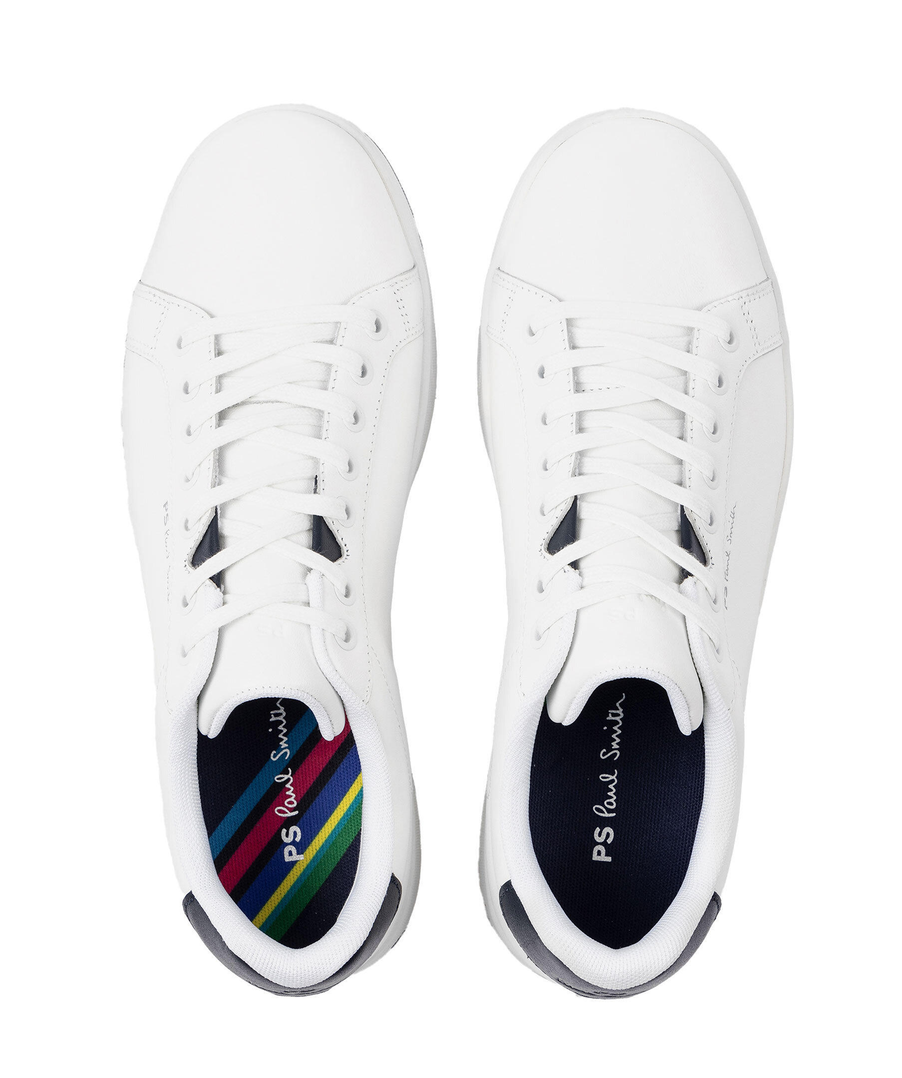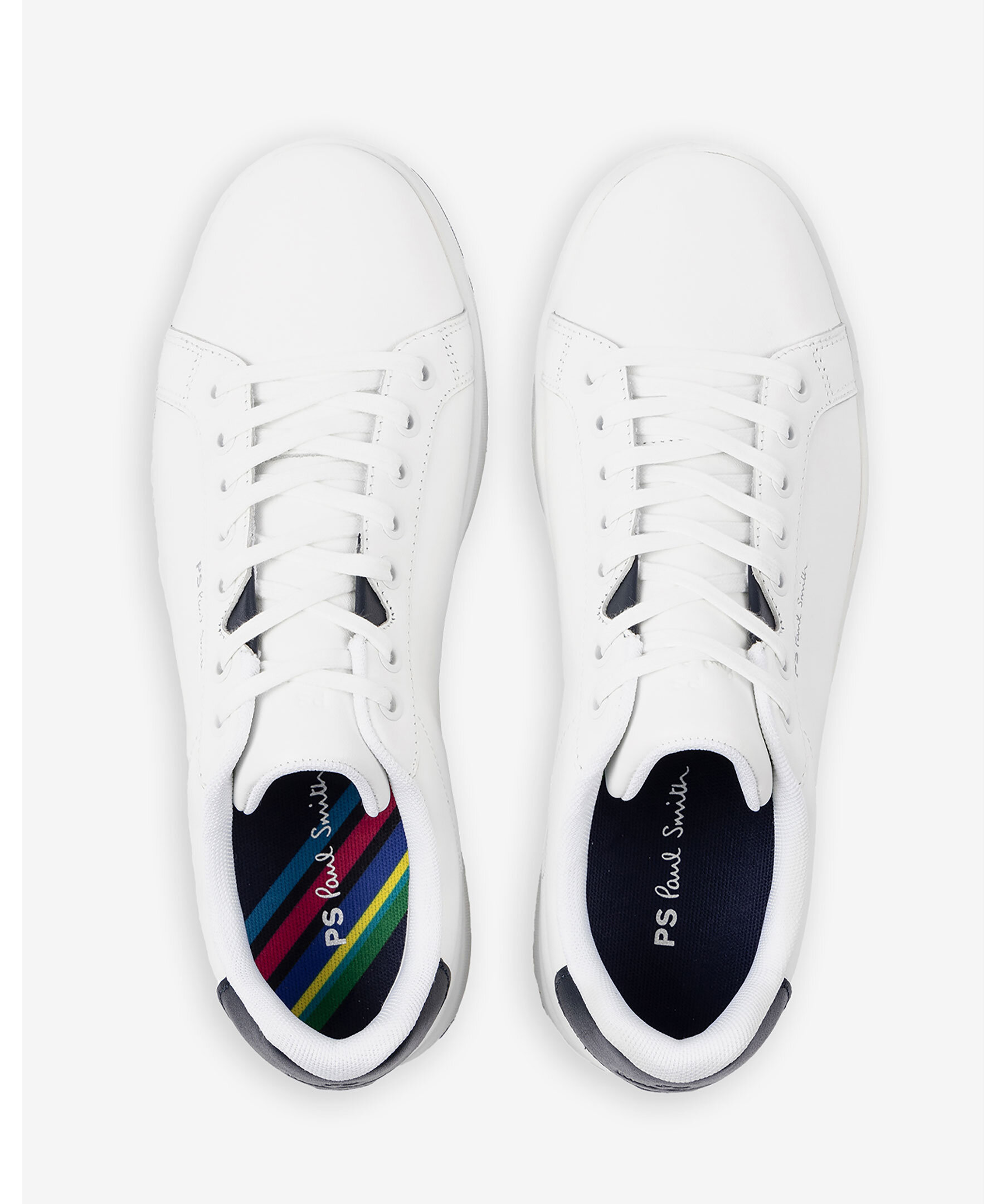 Vita sneakers i läder från PS Paul Smith. Skorna har detaljer i mörkblått, logotyp på plösen, hälen och utsidan samt ett zebramotiv vid hälen.
