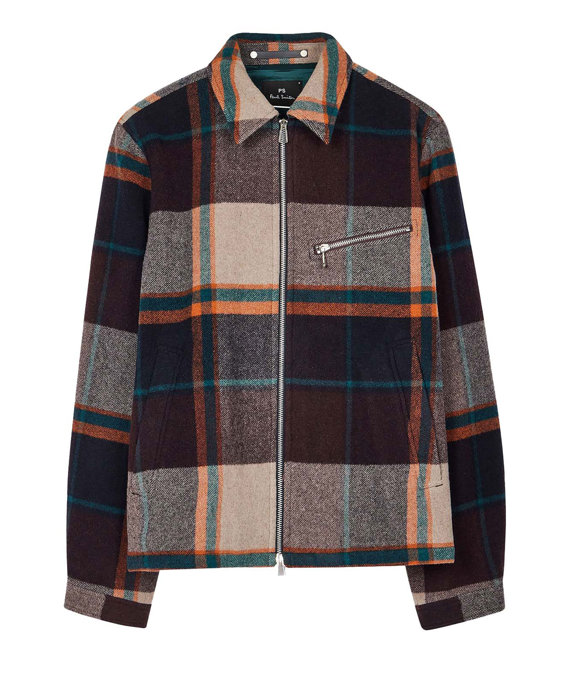 Rutig flerfärgad jacka från PS Paul Smith. En klassisk harringtonjacka med tvåvägs dragkedja. På framsidan har jackan en bröstficka med silverfärgade detaljer och dragkedja. Dubbla fickor med tryckknappar och kontrastfoder. En perfekt övergångsjacka när säsongerna skiftar.