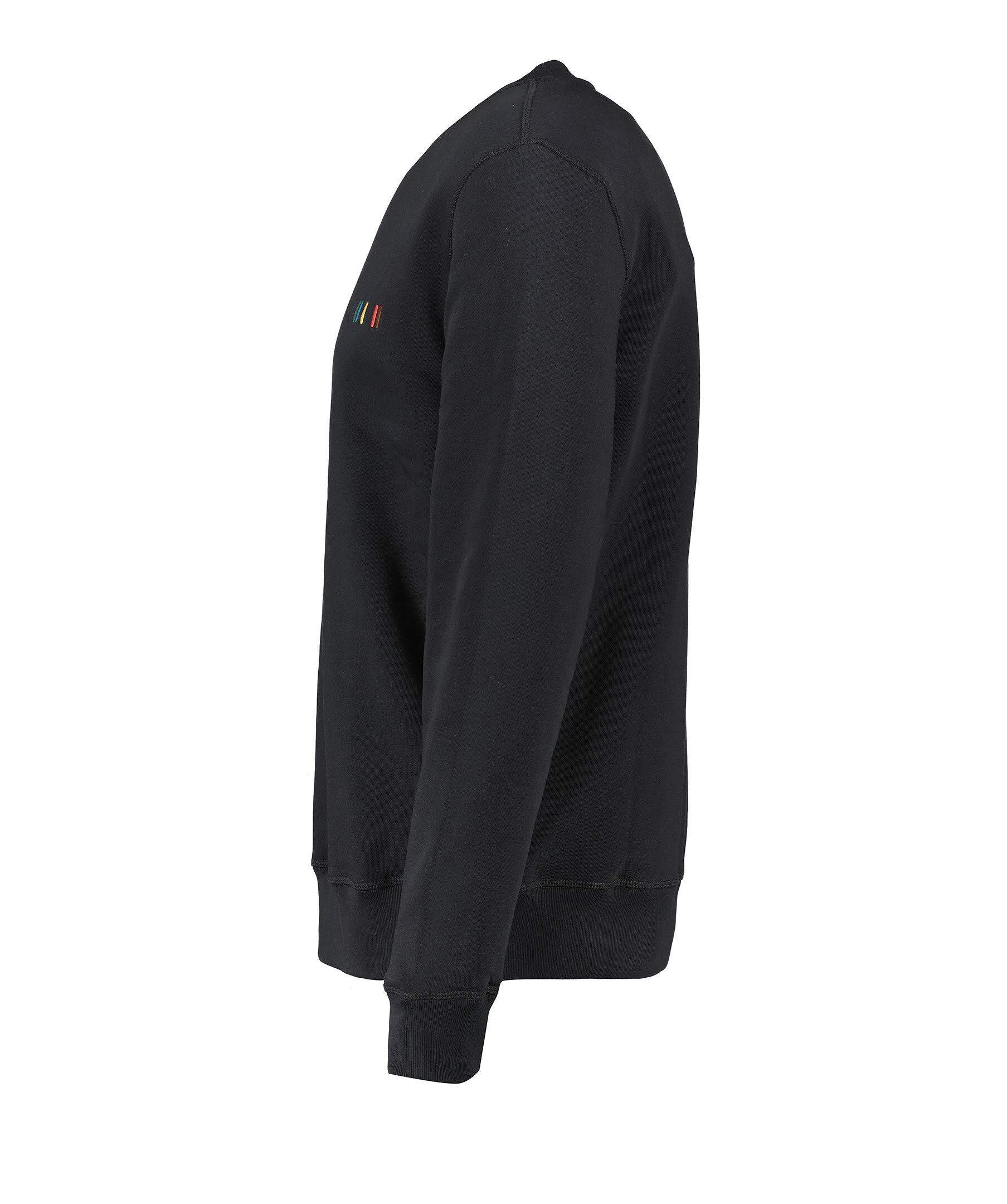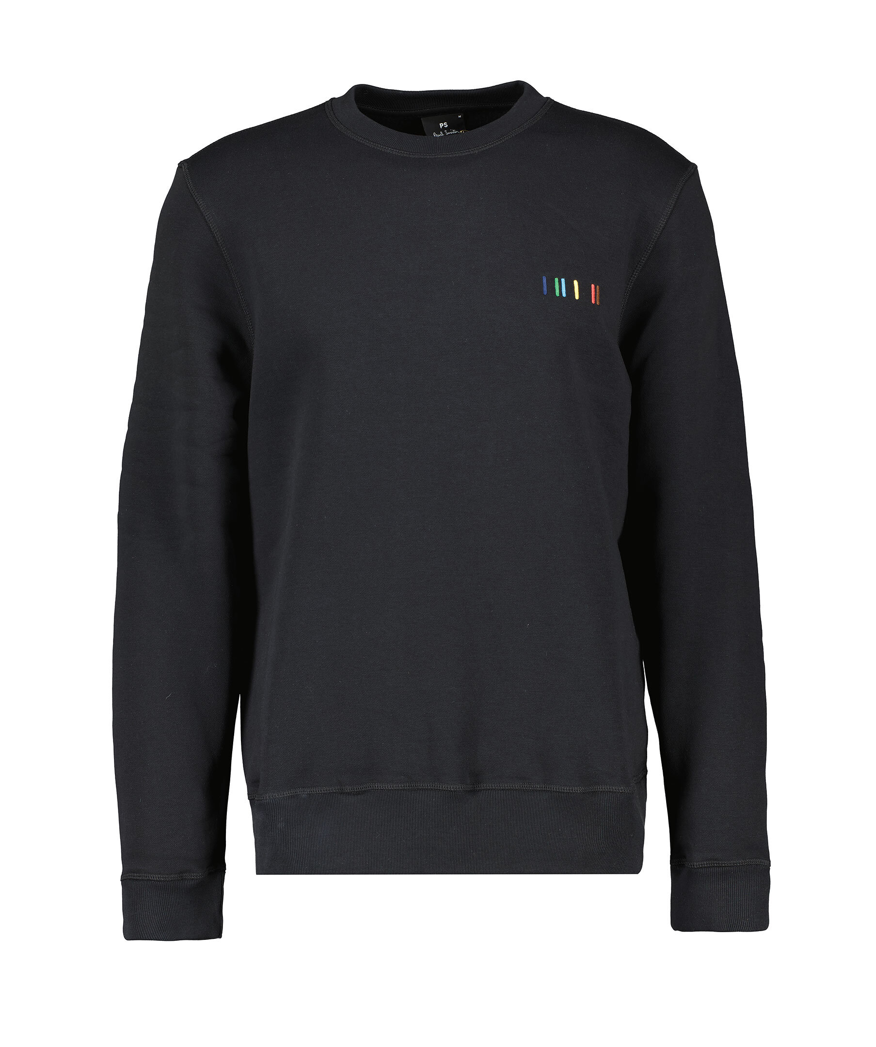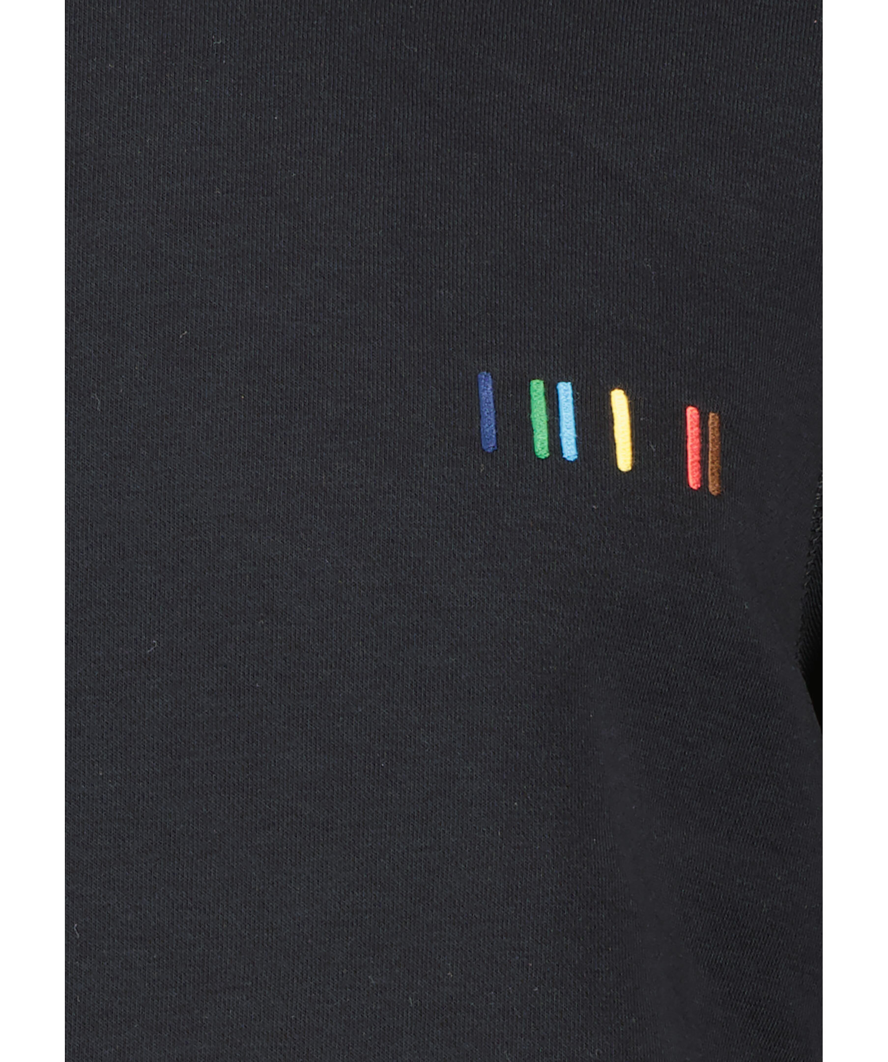 Svart sweatshirt från PS Paul Smith. Sweatshirten har rundad halsringning, multifärgade, broderade streck på bröstet och ribbade muddar, krage och midjeband. Tillverkad i en bomullsblandning.