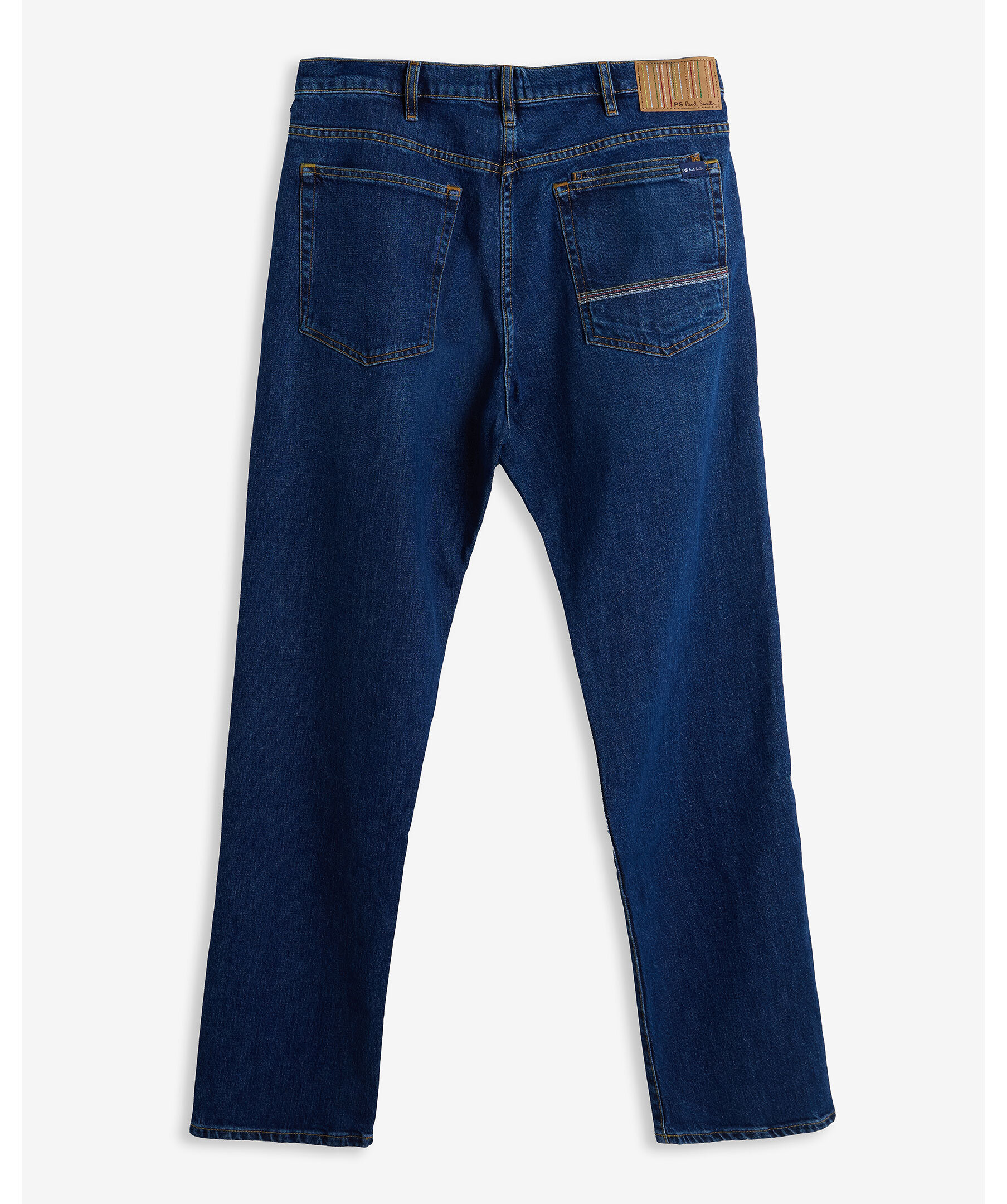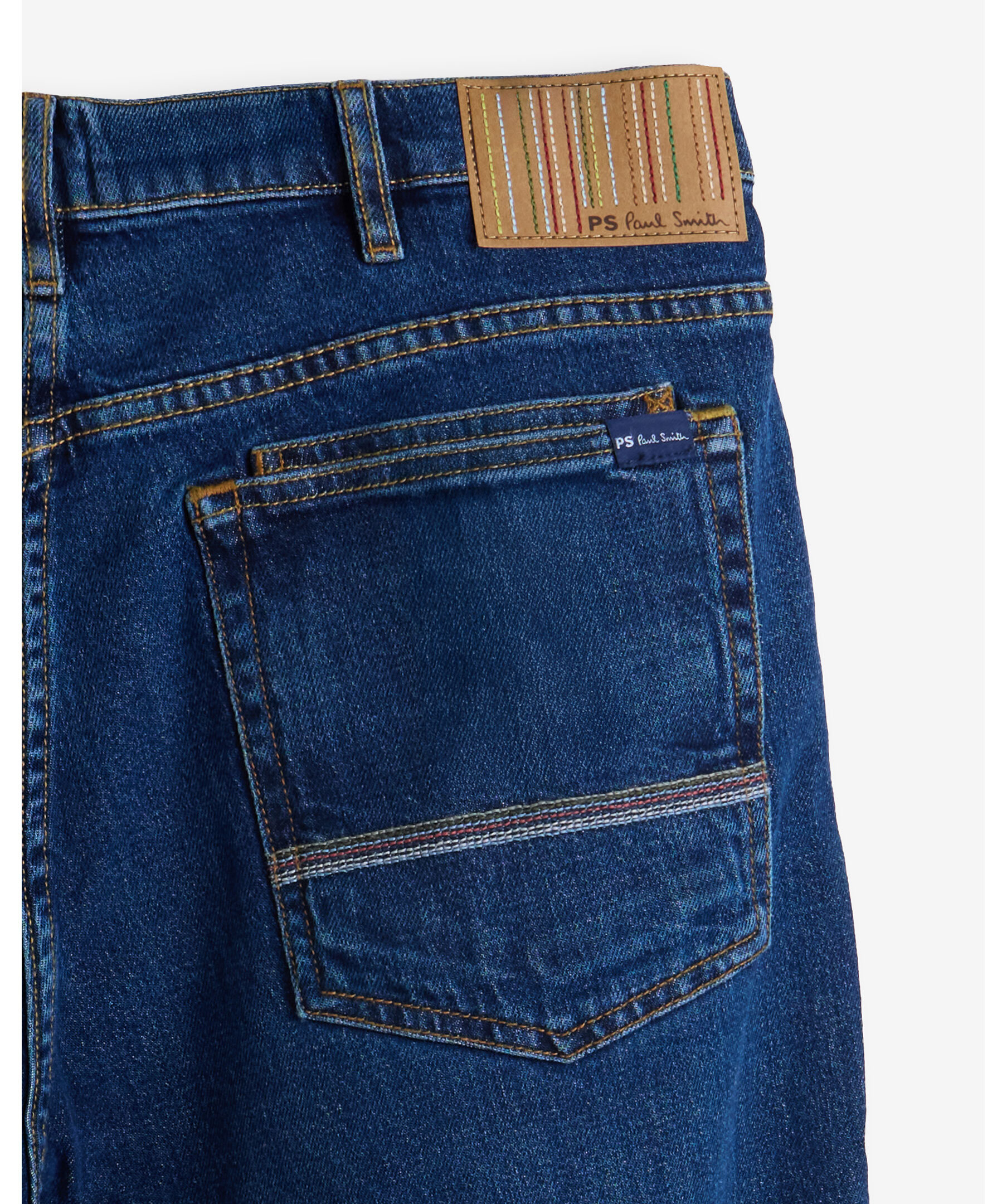 Mörkblåa jeans från PS Paul Smith. Jeansen har en relaxed-tapered passform som kombinerar komfort och stil – rymlig över höft och låren men snyggt avsmalnande nedåt. Tillverkade av ekologisk bomull med stretch. Patch med logotyp och färgglada stygn samt sydda ränder på bakfickan.