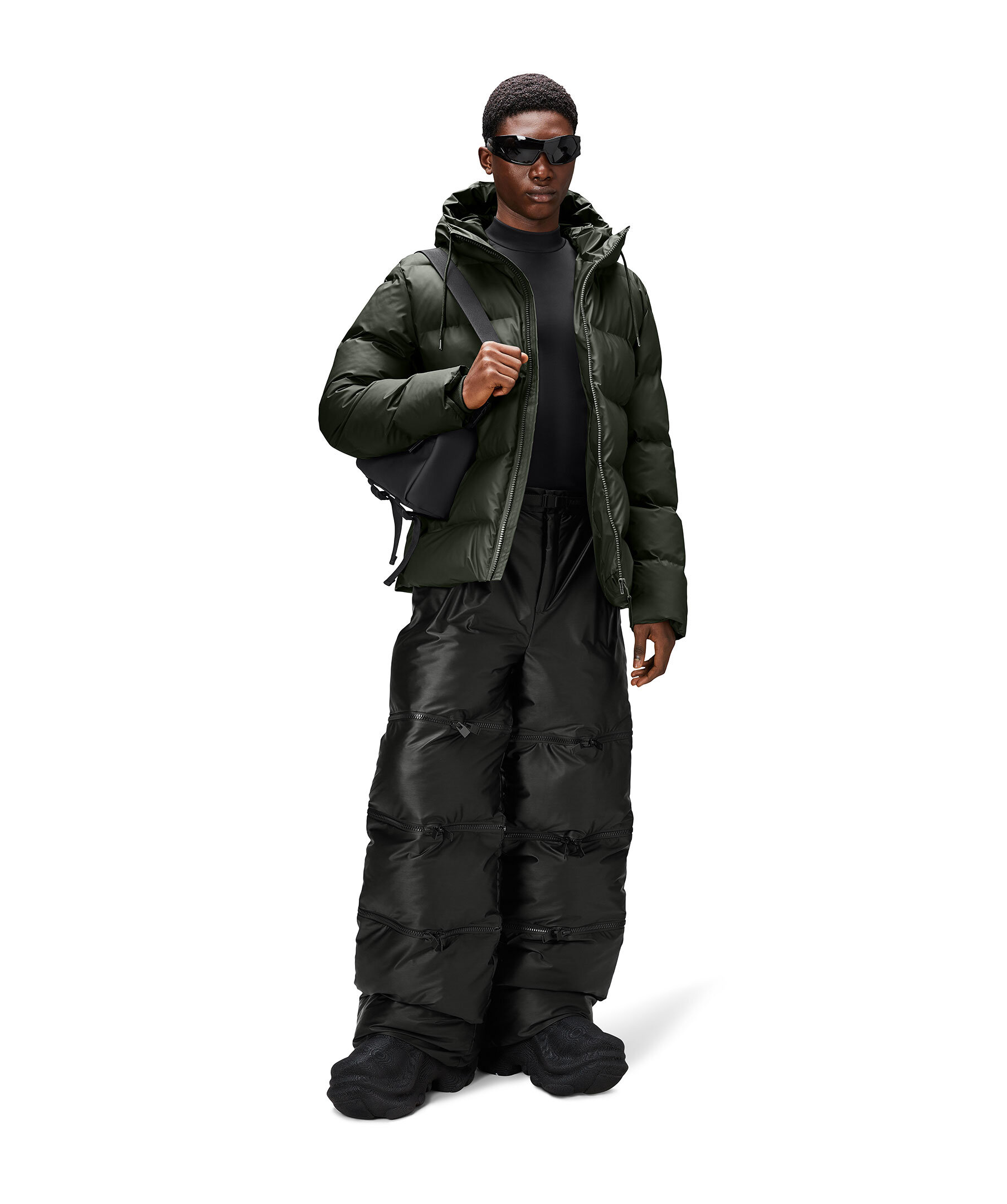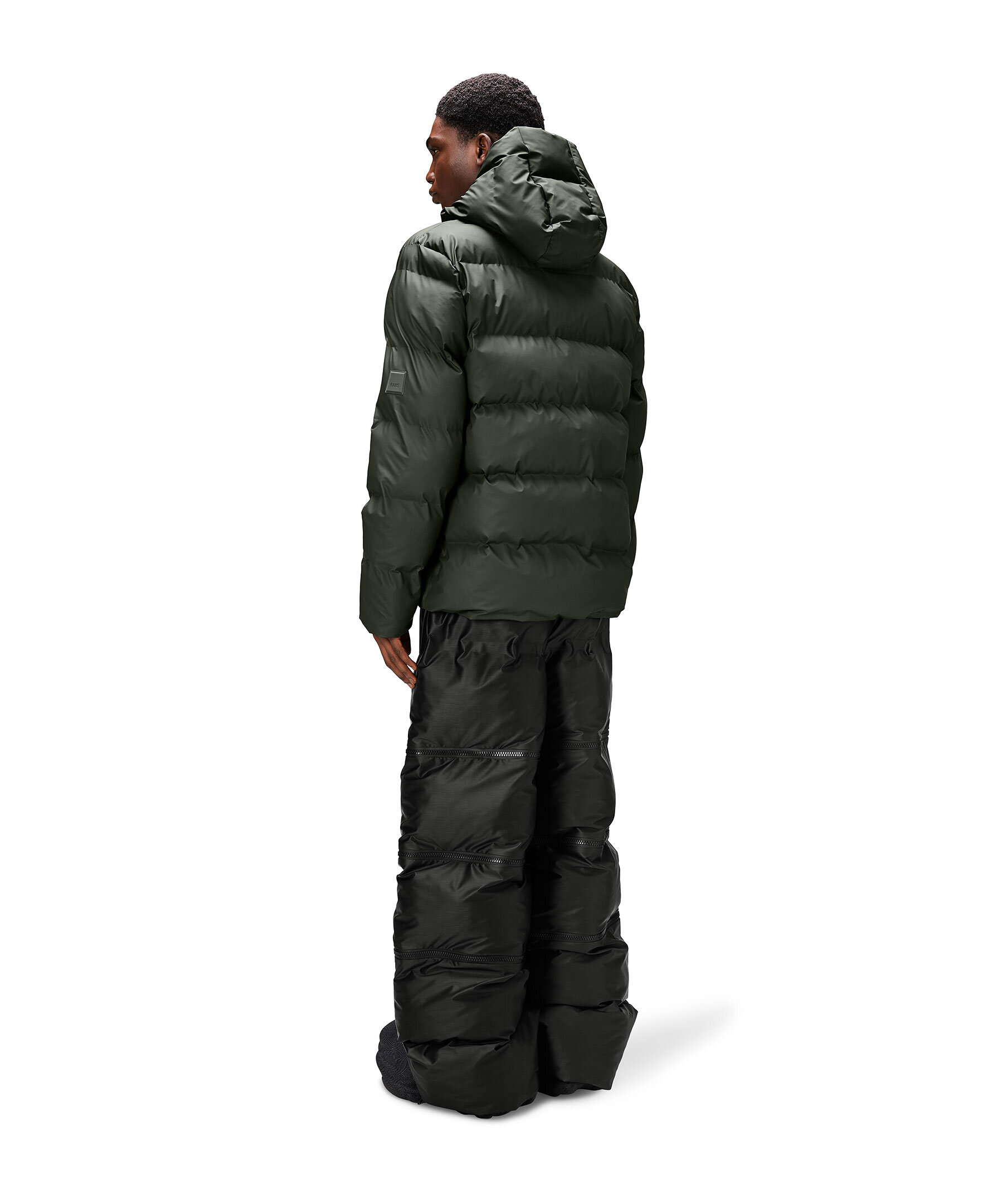 Mörkgrön Puffer jacka från Rains. En vattentät vinterjacka med en ren, lättburen puffer-estetik. Som en del av Alta Puffer-serien kännetecknas plagget av en raffinerad silhuett, breda signaturkammare och avskalade detaljer. Den här lyxiga puffern i vattentätt signaturtyg som andas bygger på fjäderlös kammarteknologi som håller dig varm och bekväm i de kallaste vädren. Jackan har gummerat tvåvägsblixtlås, ultraljudsgjutna sömmar, rymliga fleecefodrade sidfickor, dolda stormmanschetter och inre bröstficka. Silhuetten har fodrad huva med dragsko.