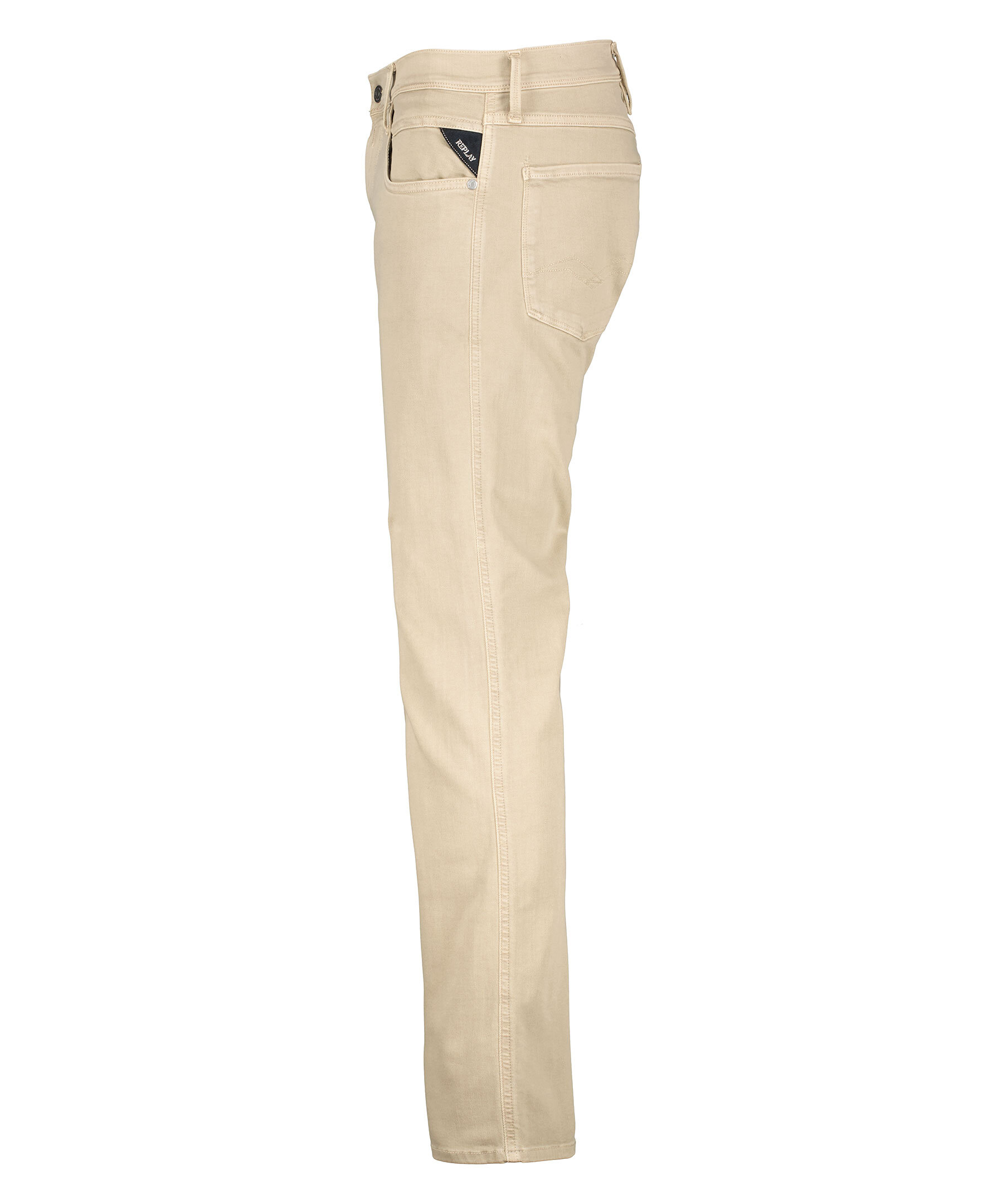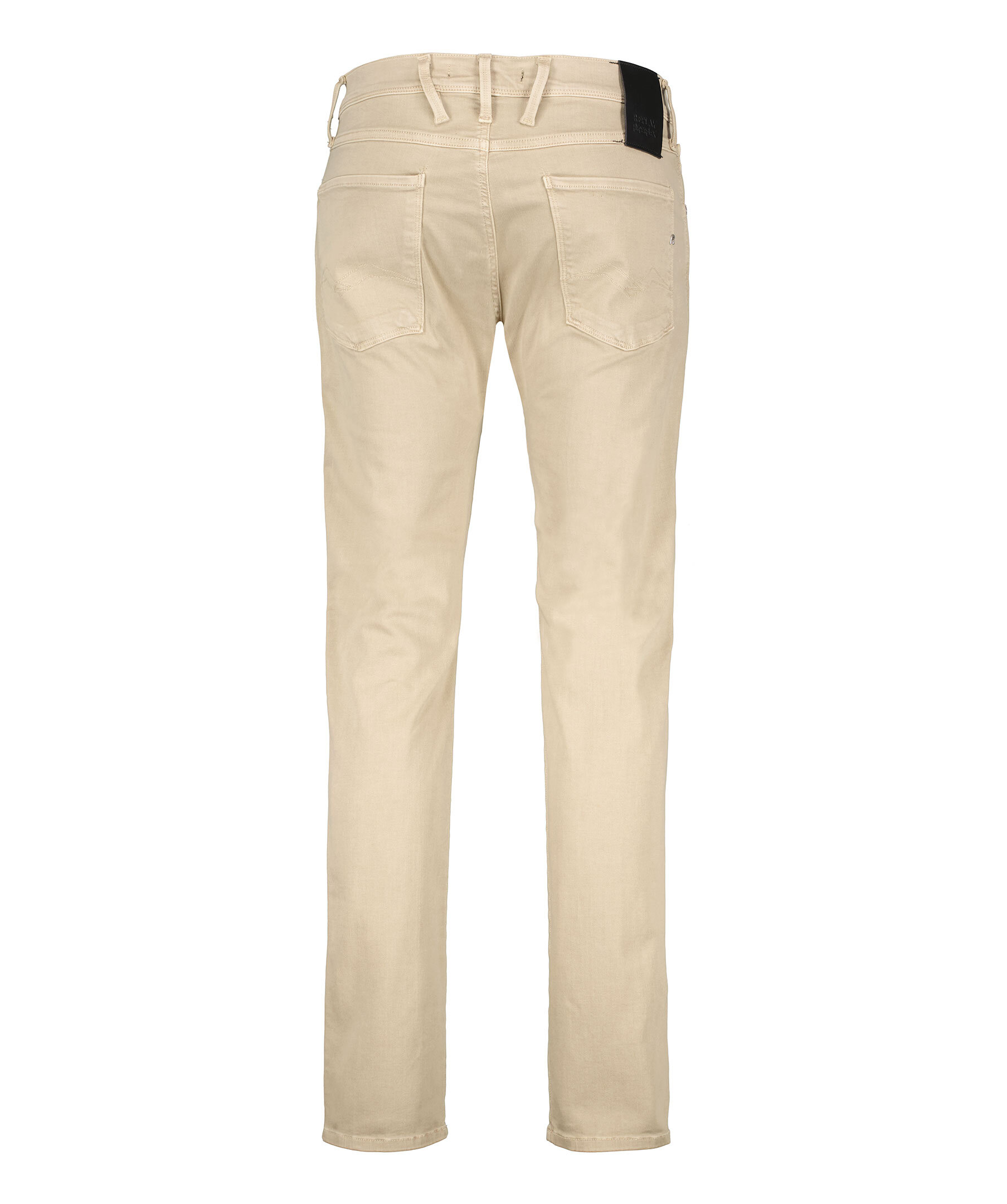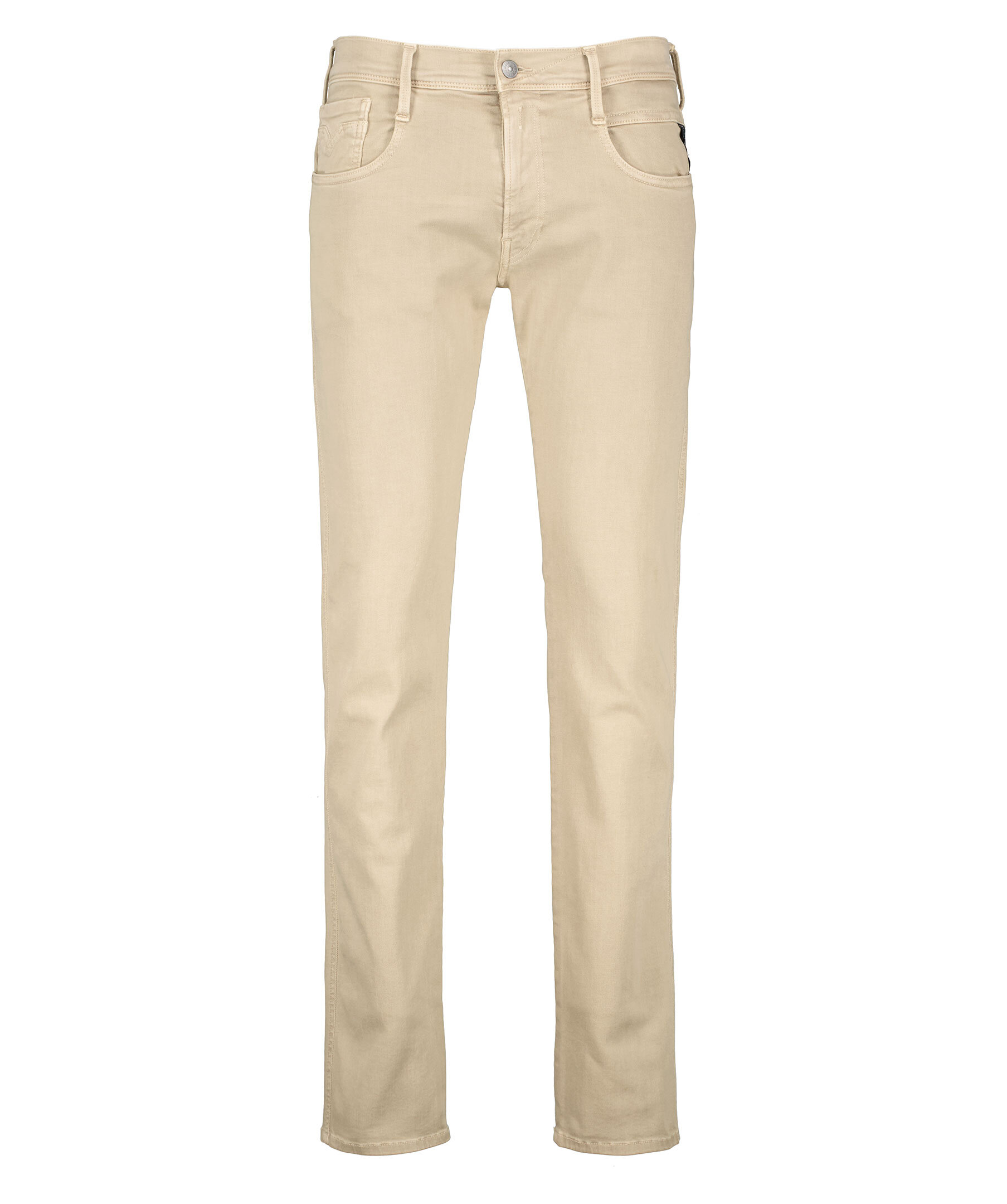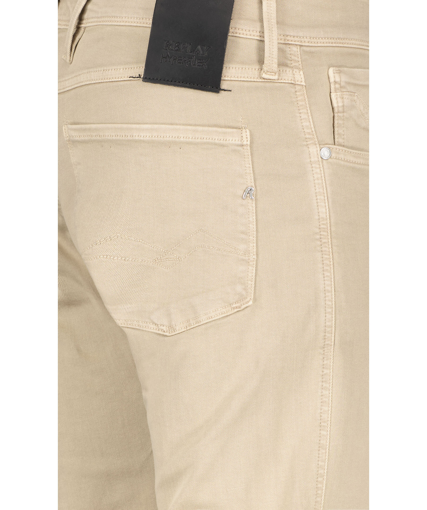 Beigea slim fit jeans i hyperflex modell från Replay. Power stretch denim med fyrvägsstretch i bomullsblandning. Vanlig midja och något avsmalnande ben, fem fickor, triangelformad REPLAY-etikett på vänster ficka, mynt ficka och bakfickor med ikoniska replay-sömmar. R-formad metallbricka på höger bakficka, dragkedja och knappgylf samt hällor för bälte i midjan. Jeansen är lite stora i storlek, vi rekommenderar att gå ner en storlek för bäst passform.