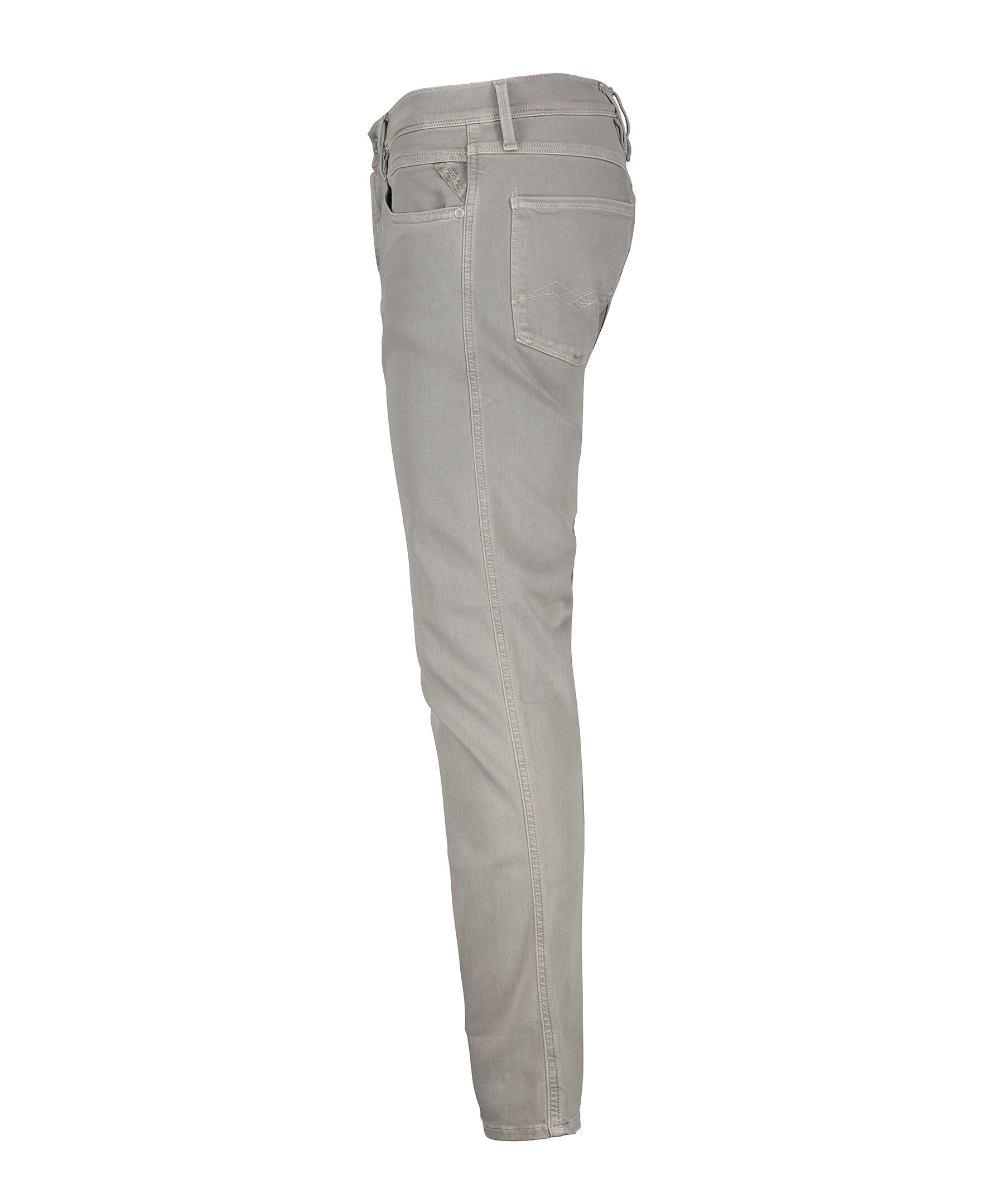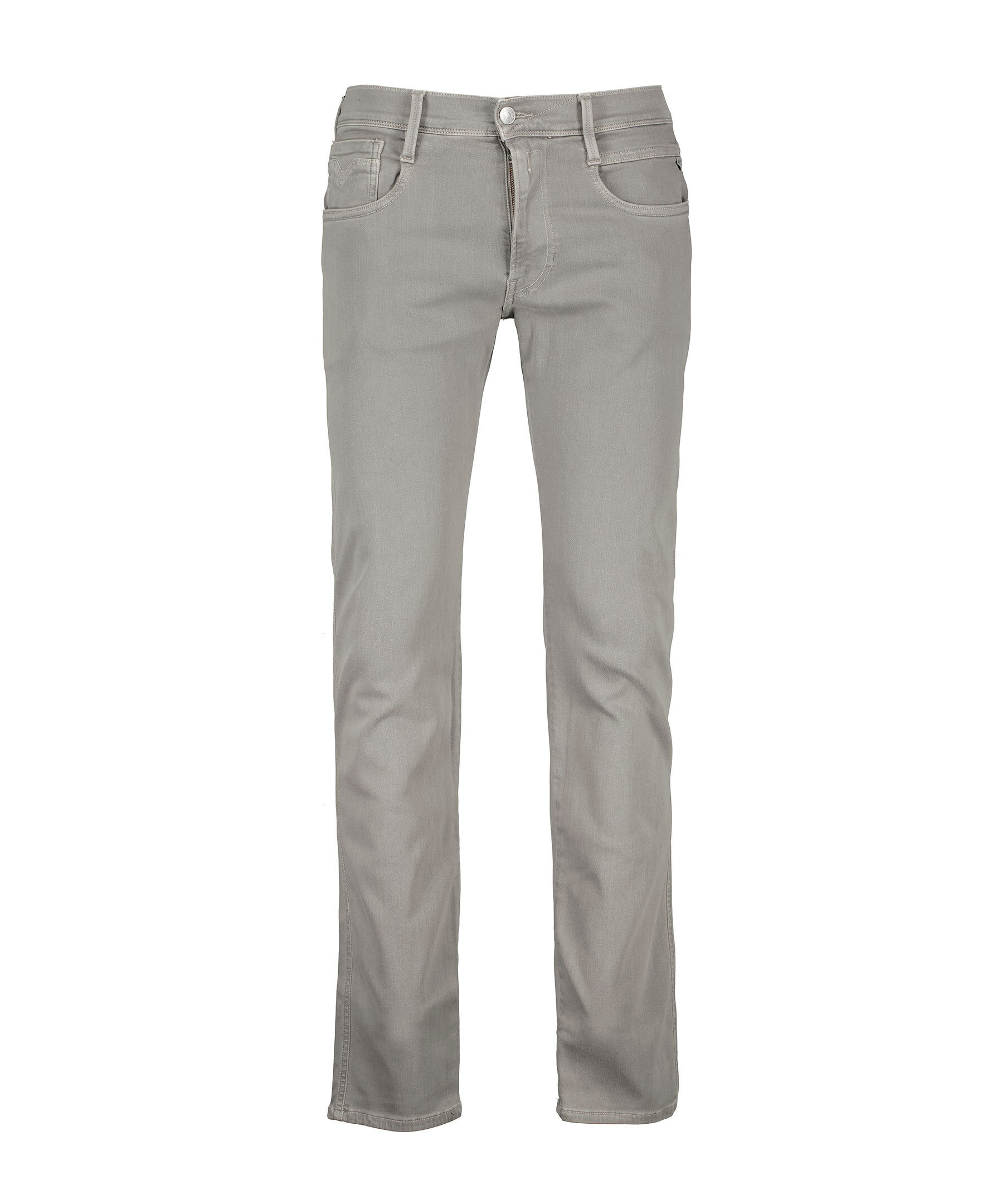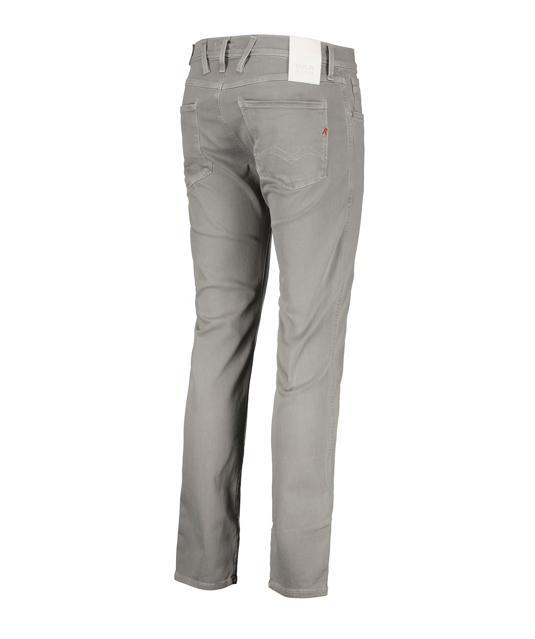 Ljusgrå jeans från Replay. Jeansen har en normalhög midja med bälteshällor, fem fickor, triangelformad REPLAY-etikett på vänster ficka, mynt ficka och bakfickor med ikoniska replay-sömmar. Läder etikett på linningen samt litet broderat R på höger bakficka. Tillverkad i en stretchig bomullsblandning.
