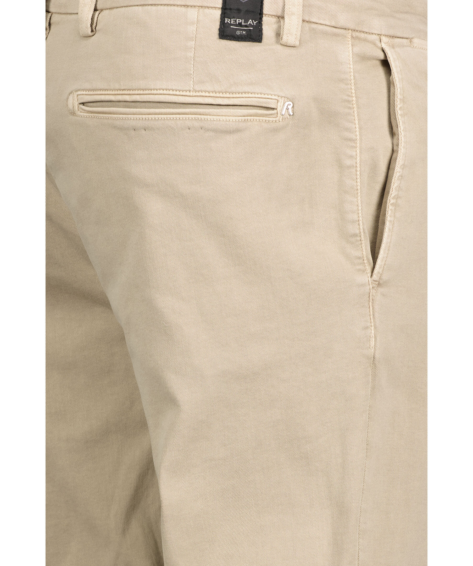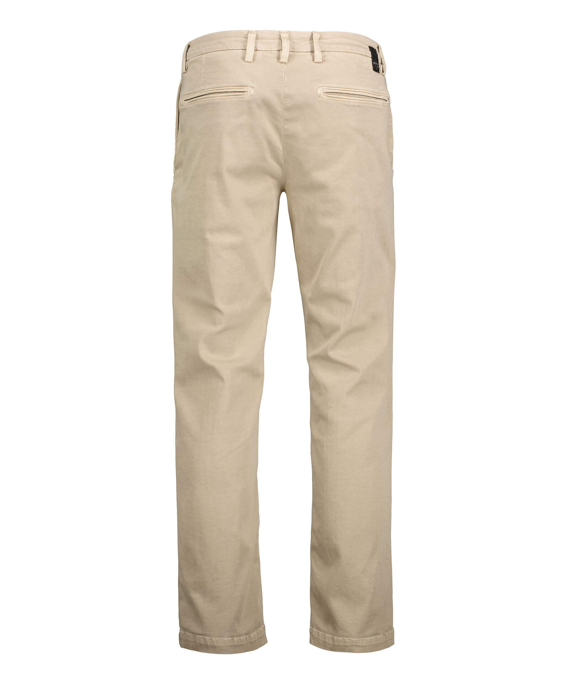 Mörkt sandfärgade chinos från Replay. Fem fickor, dragkedja i gylfen och hällor för skärp. Hyperflex modell. Tillverkade i stretchig bomullsblandning. Jeansen är lite stora i storlek, vi rekommenderar att gå ner en storlek för bäst passform.
