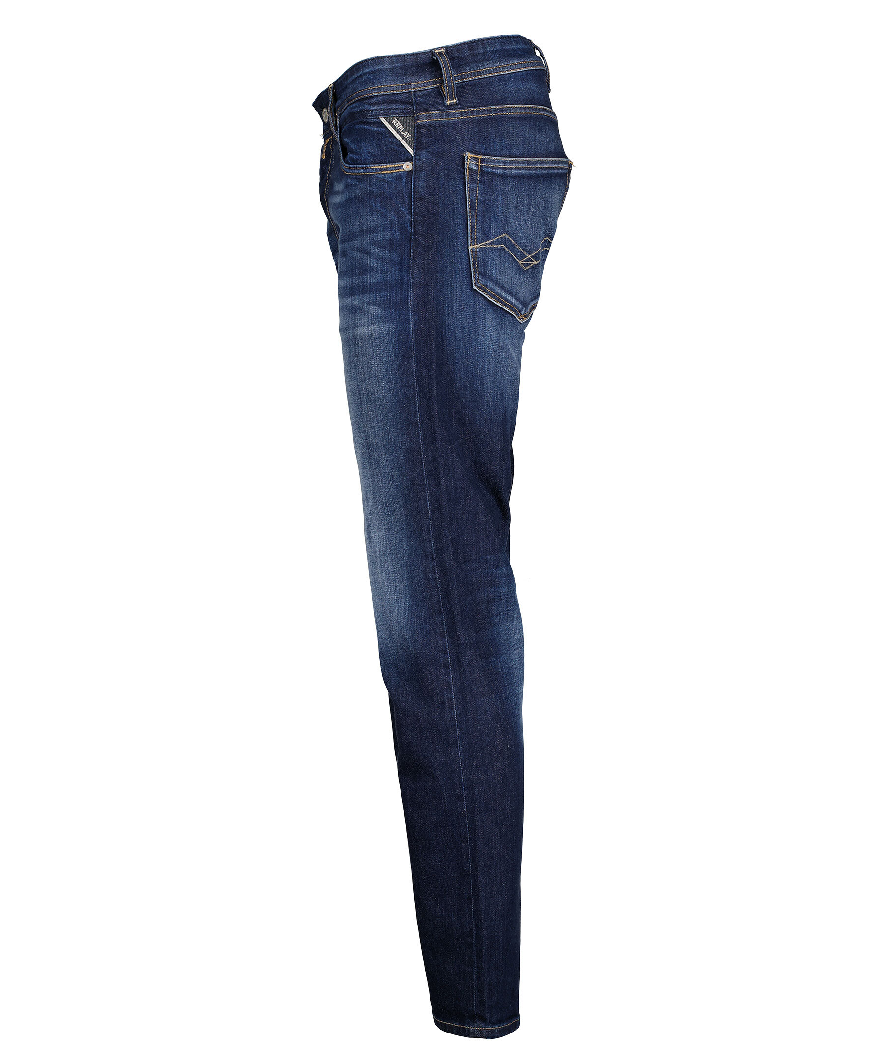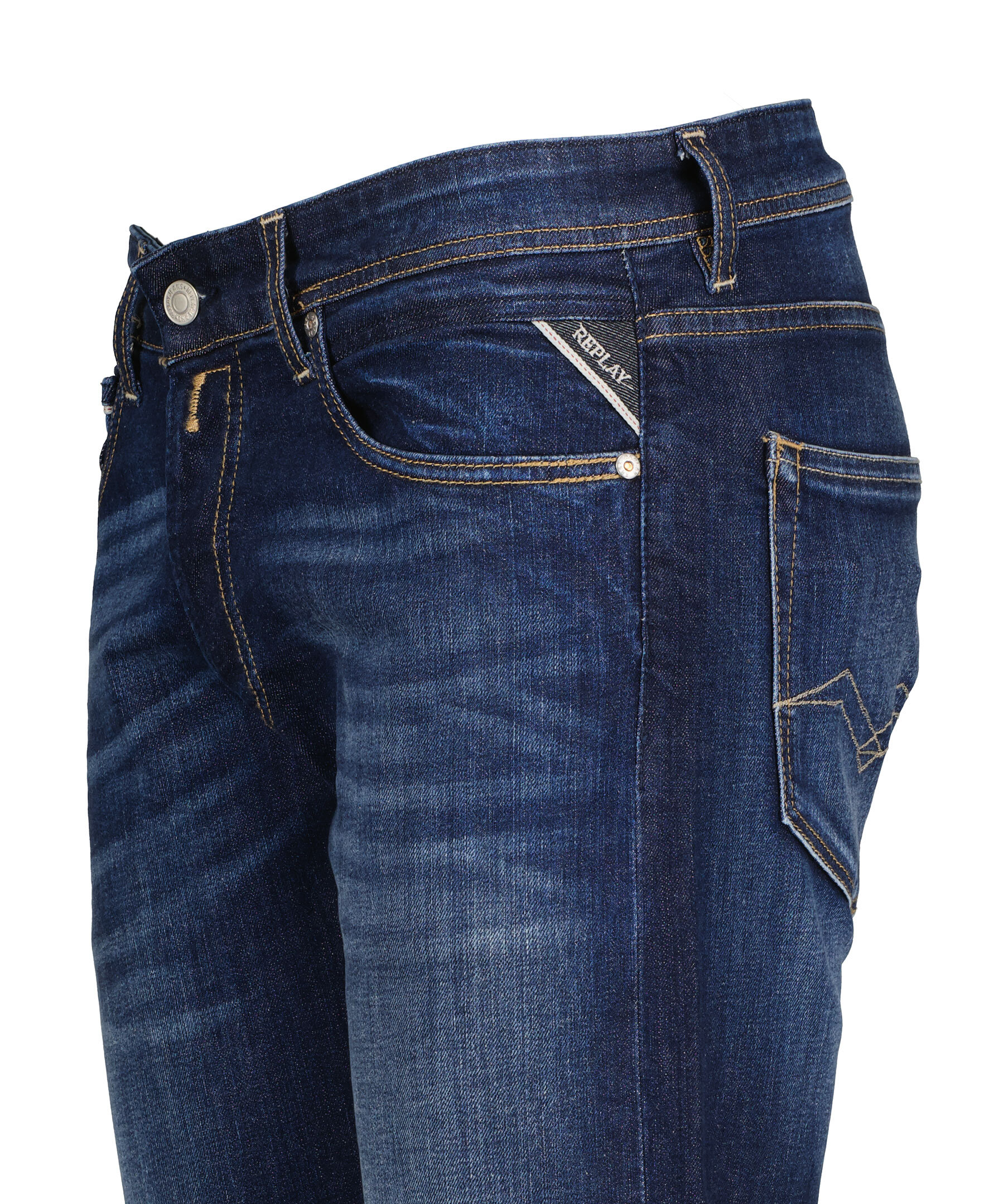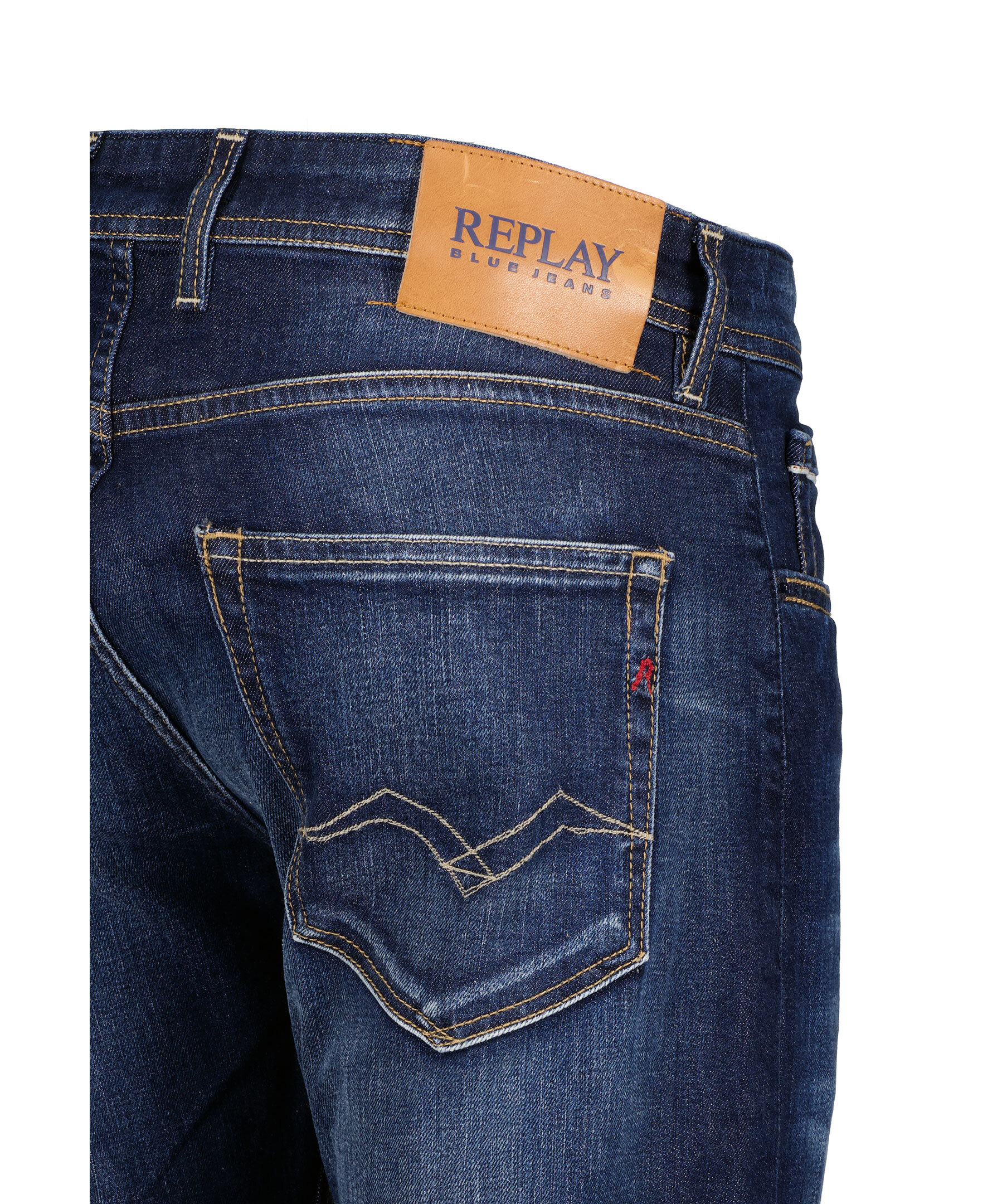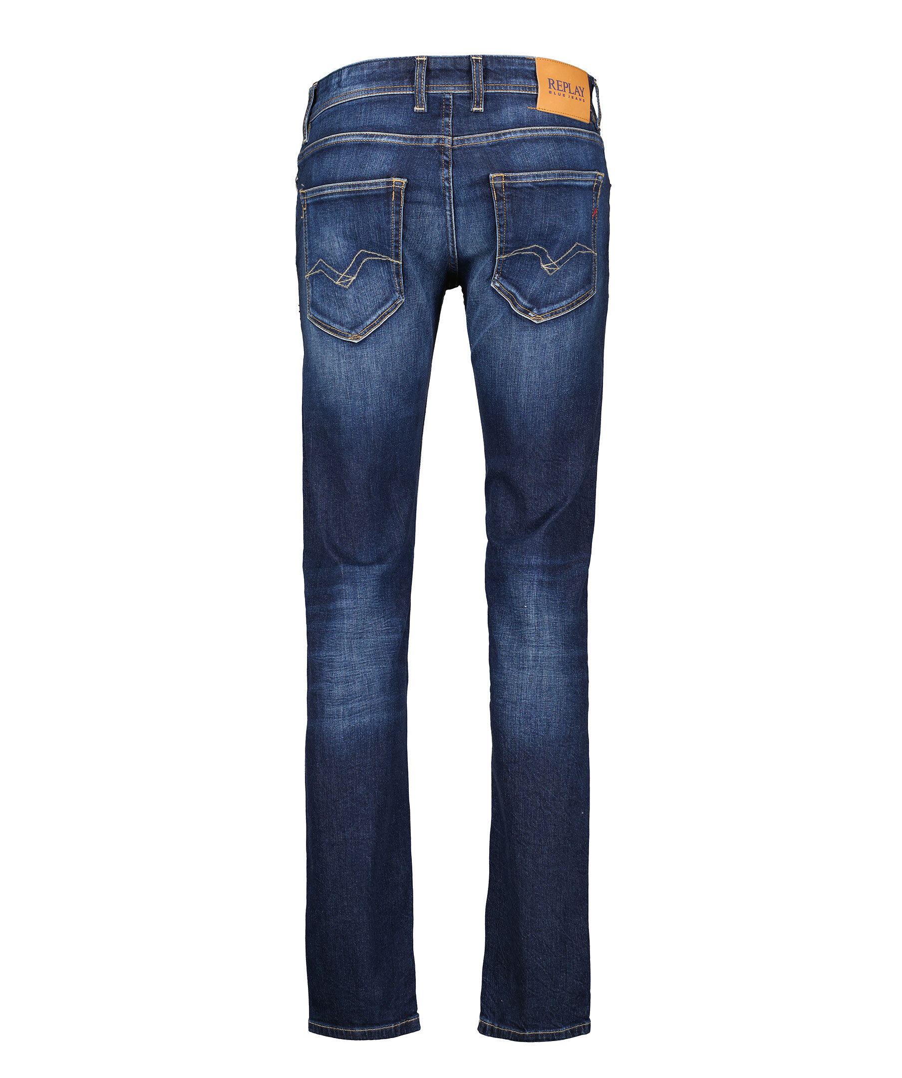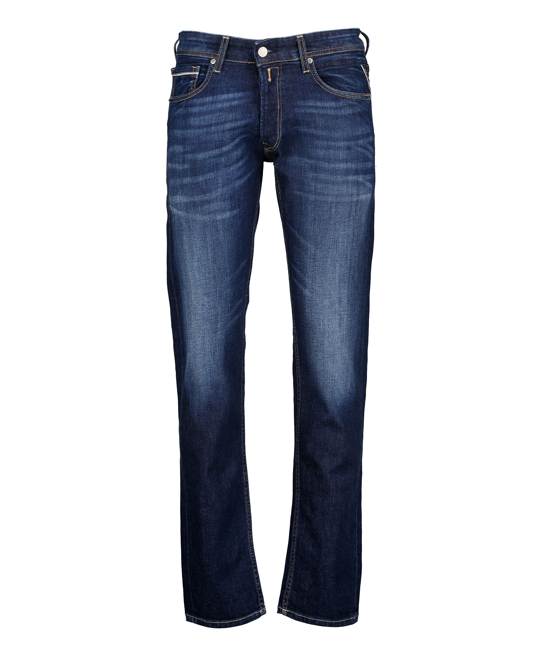 Blåa straight fit jeans från Replay. Vanlig midja och raka ben. Fem fickor, myntficka med söm och bakfickor med ikoniska Replay-sömmar och R-format metall-logotyp, kontrastfärgad läder etikett i linningen, Gylf som stängs med dragkedja och knapp. Hällor för bälte i midjan. Innerbenslängd: 73cm i storlek 32'30.