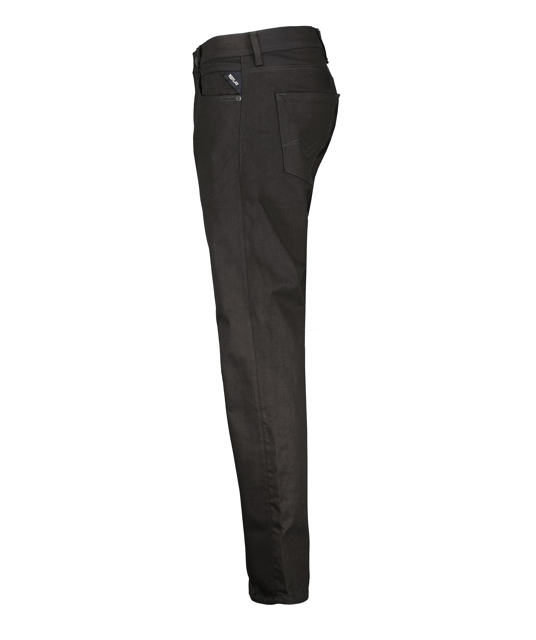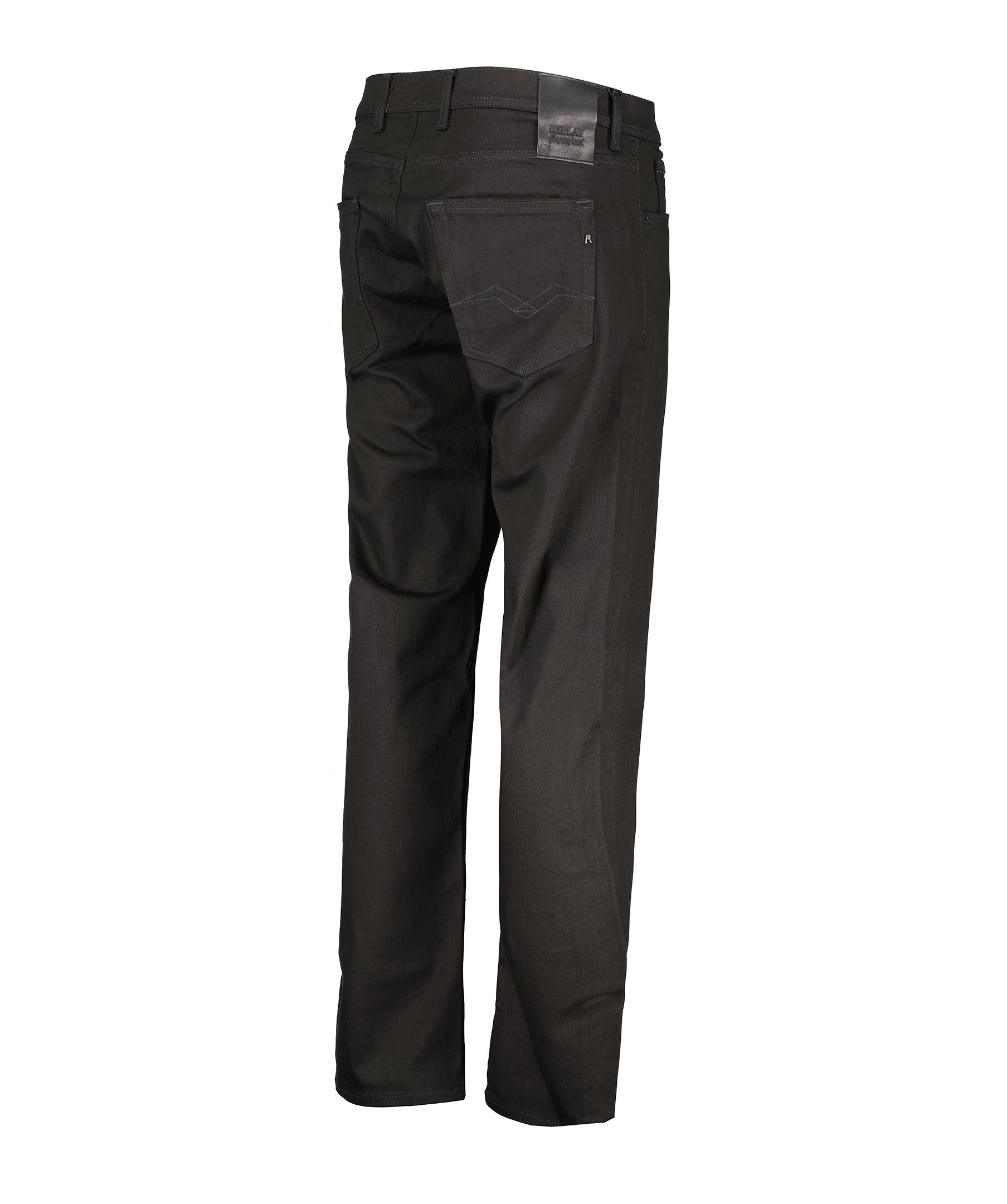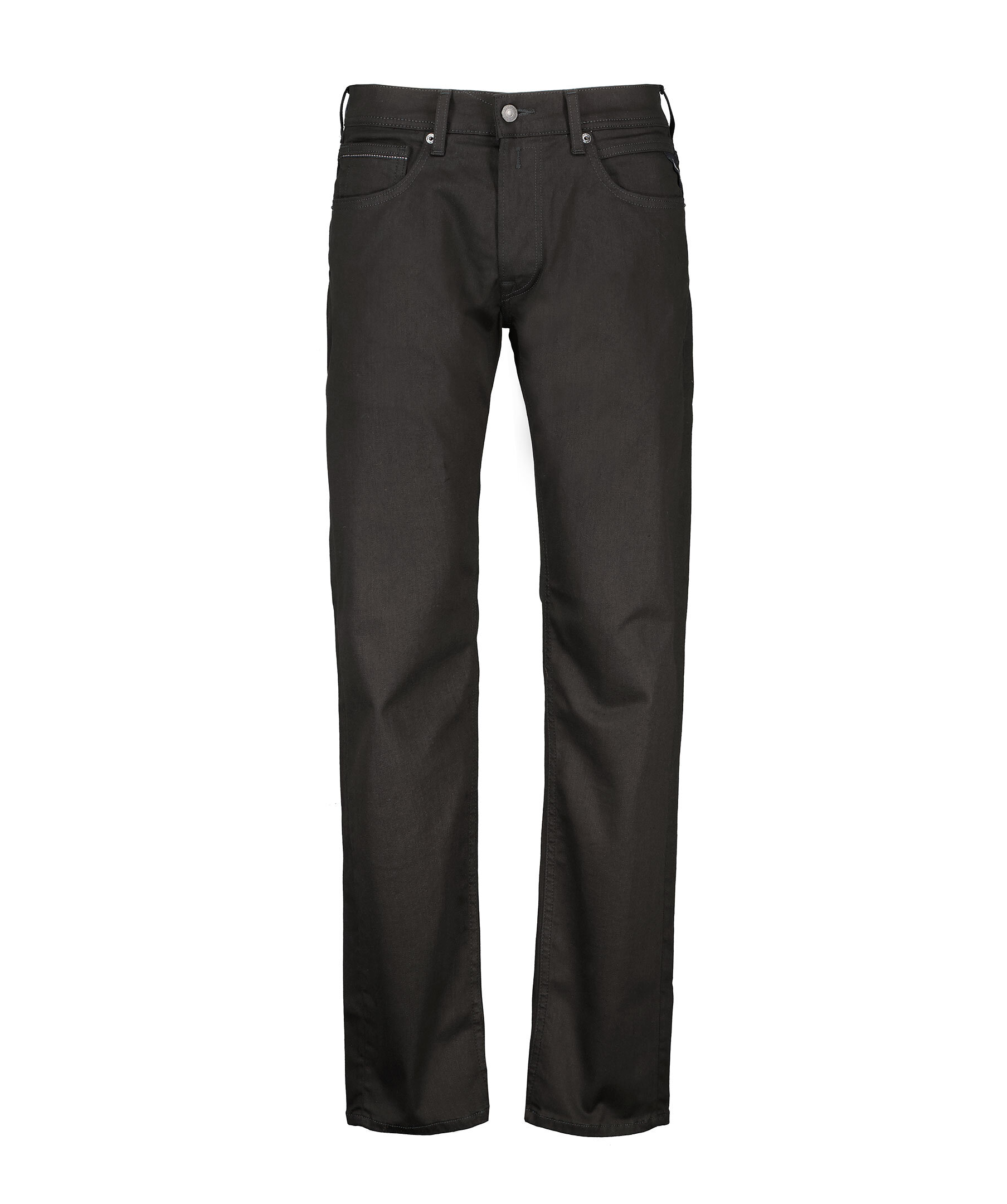 Svarta jeans från Replay. Jeansen har bälteshällor i midjan, fem fickor, triangelformad REPLAY-etikett på vänster ficka, mynt ficka och bakfickor med ikoniska replay-sömmar. R-formad metallbricka på höger bakficka. Tillverkade i en stretchig bomullsblandning.