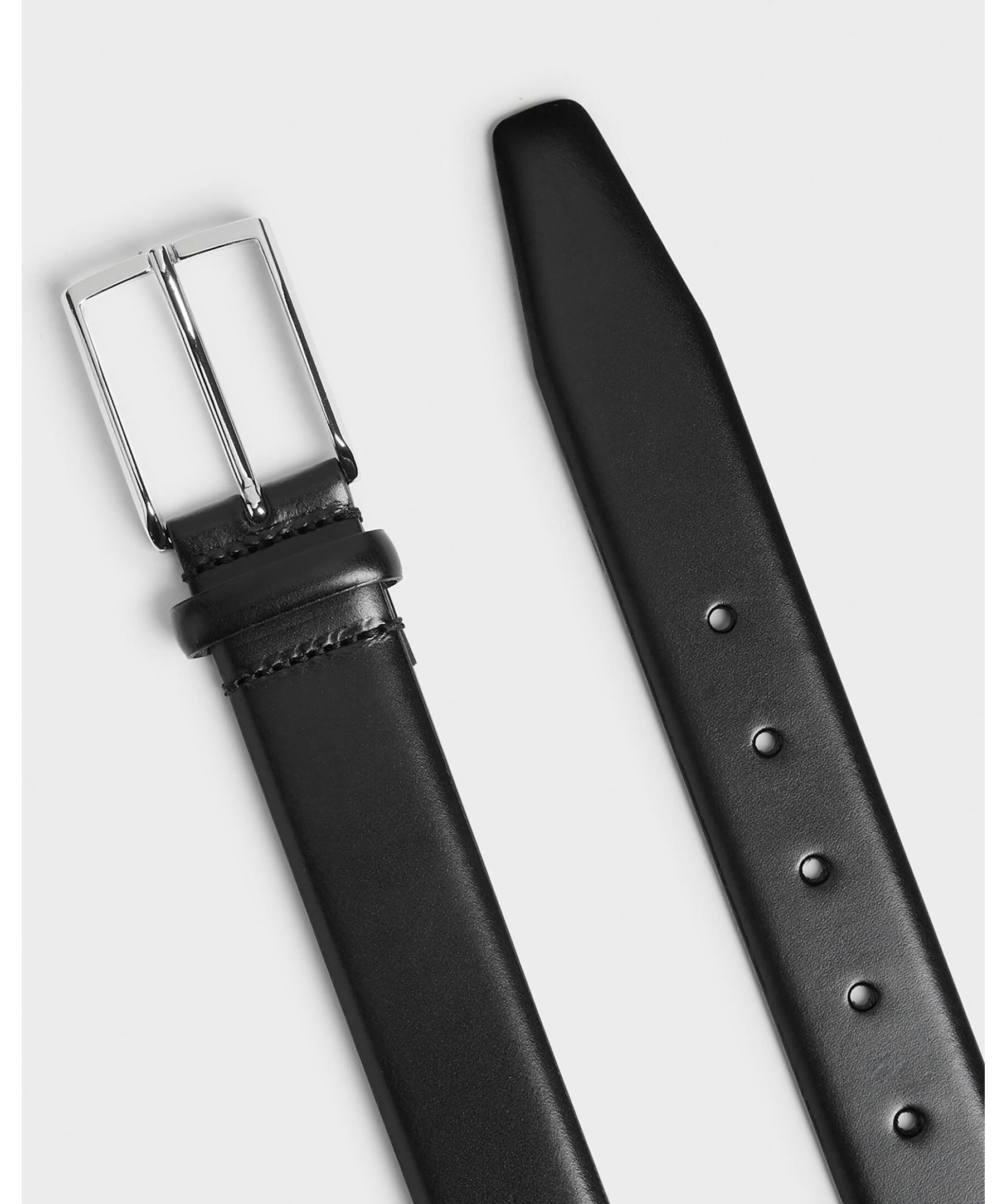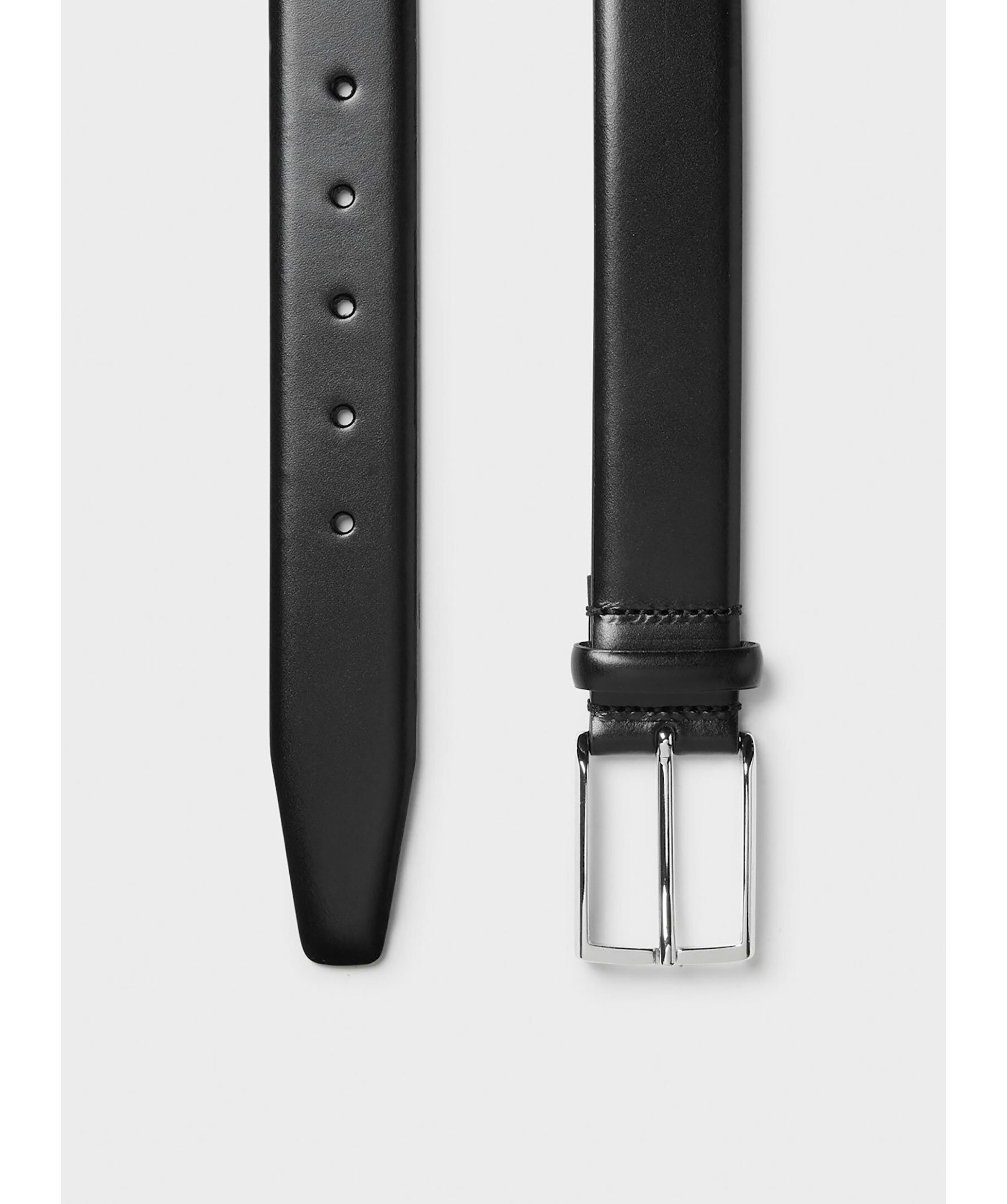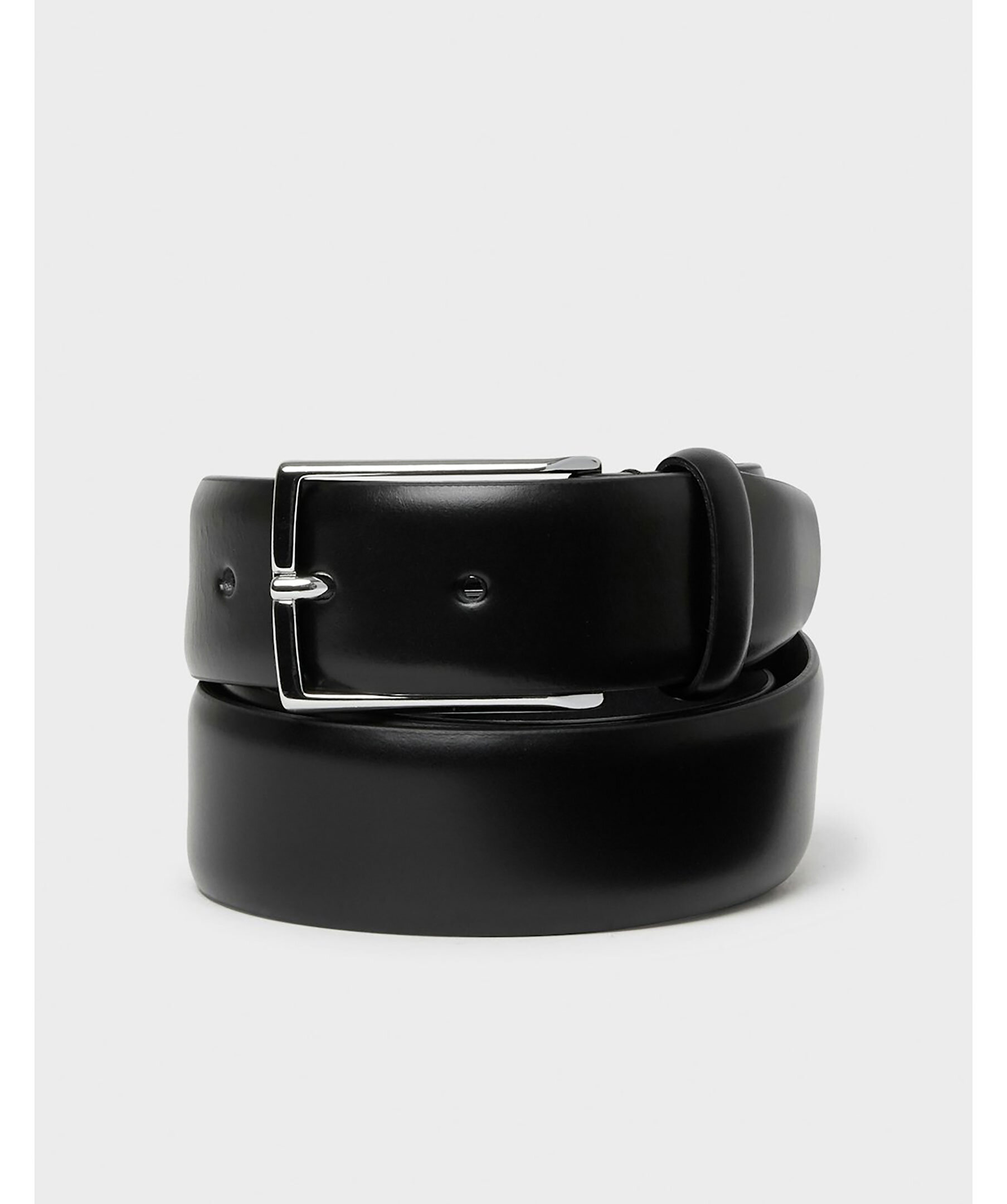 Svart bälte i läder från Saddler. Silverfärgat spänne i metall. Bältets bredd är 3,5 cm.