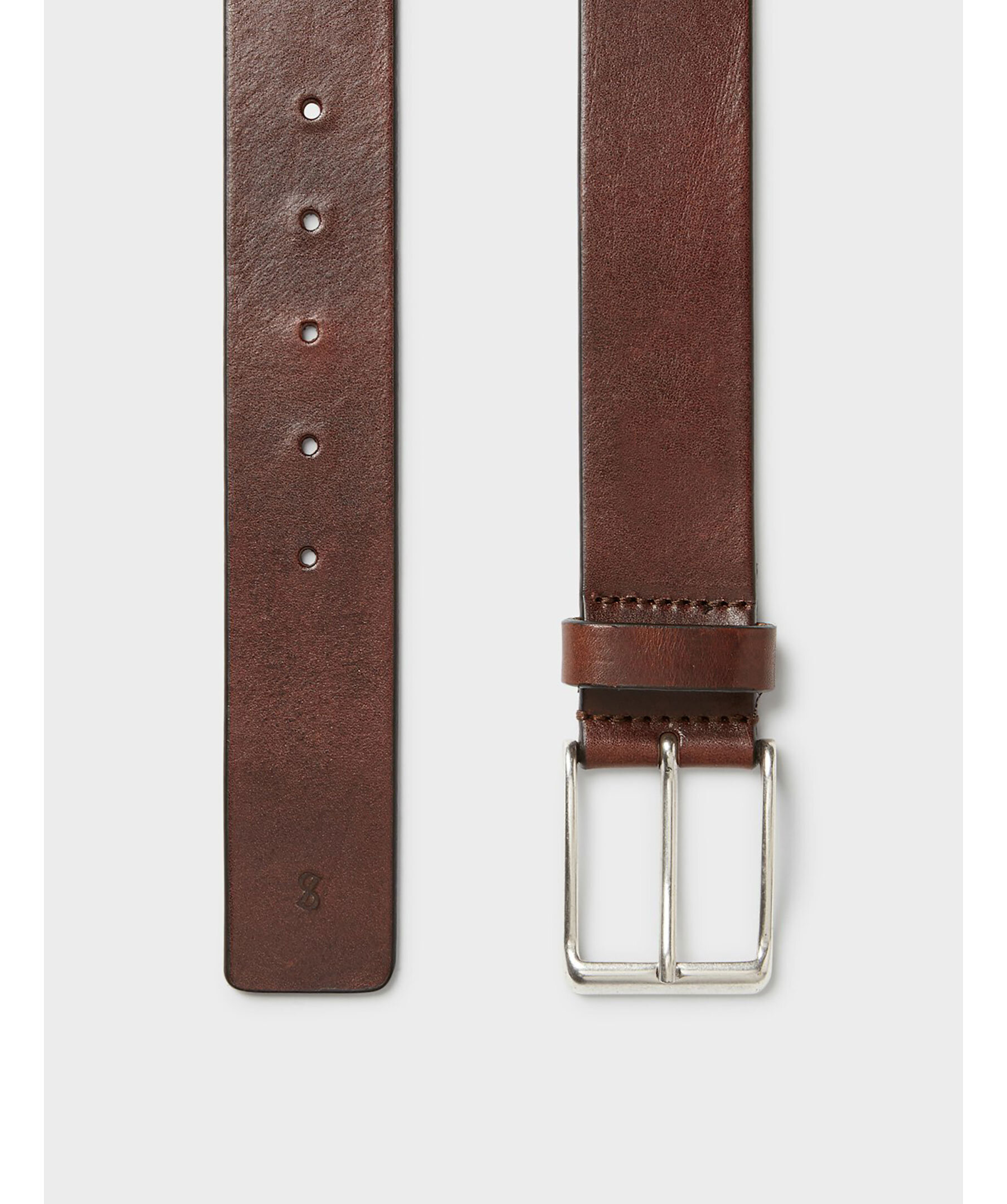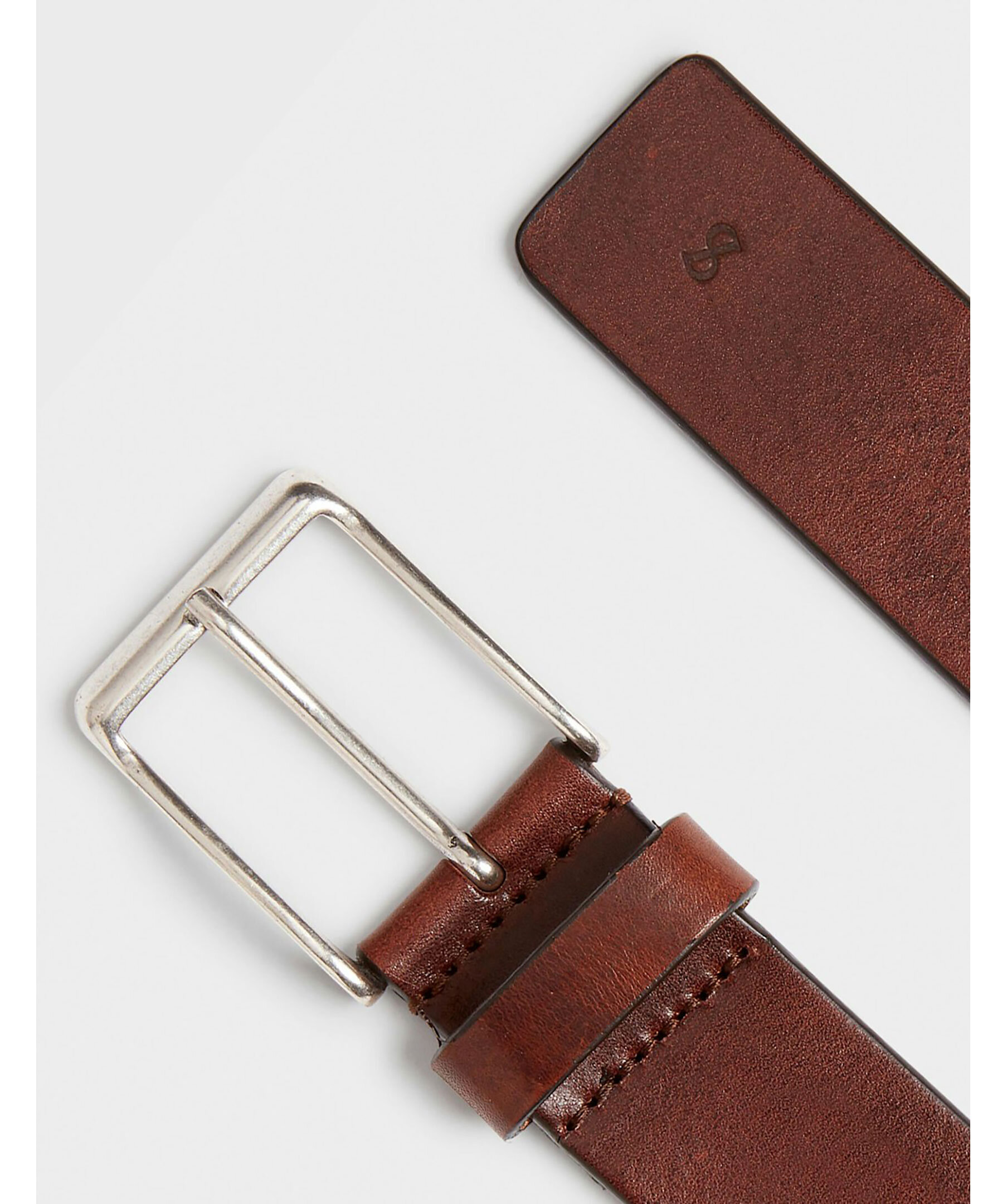 Brunt skräp i läder från Saddler. Silverfärgat spänne i metall. Bältets bredd är 4 cm.