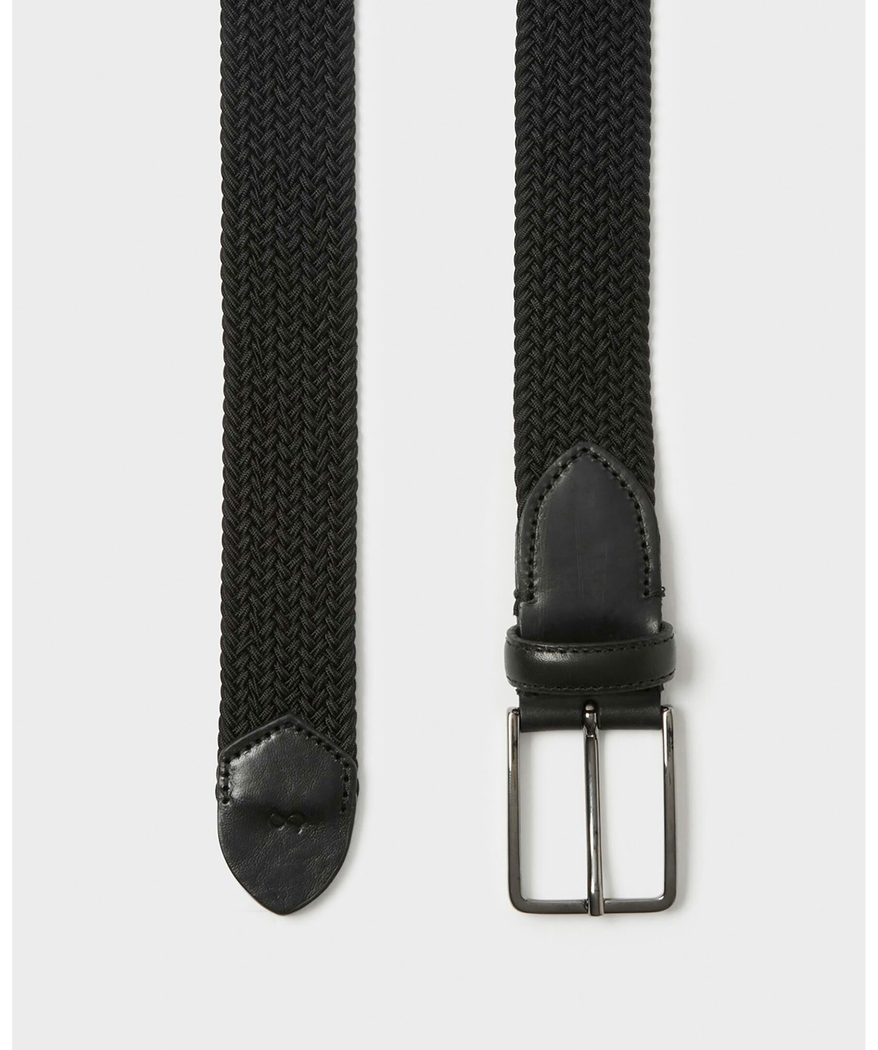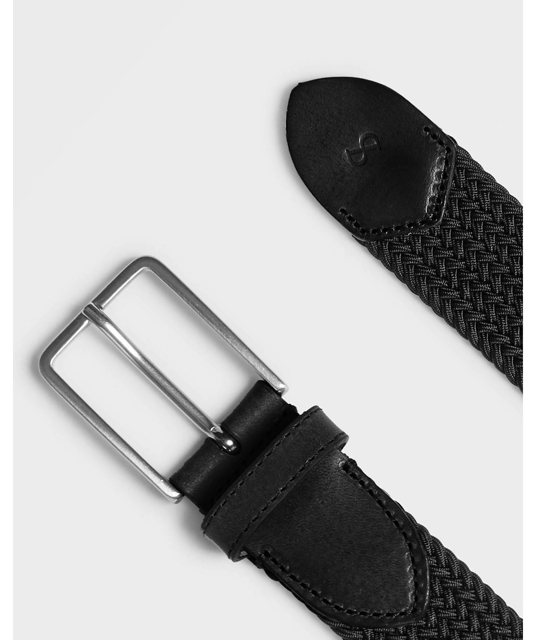 Svart flätat skärp från Saddler. Detaljer i läder. Stilrent spänne i borstad metall. Skärpets bredd är 3.5 cm.