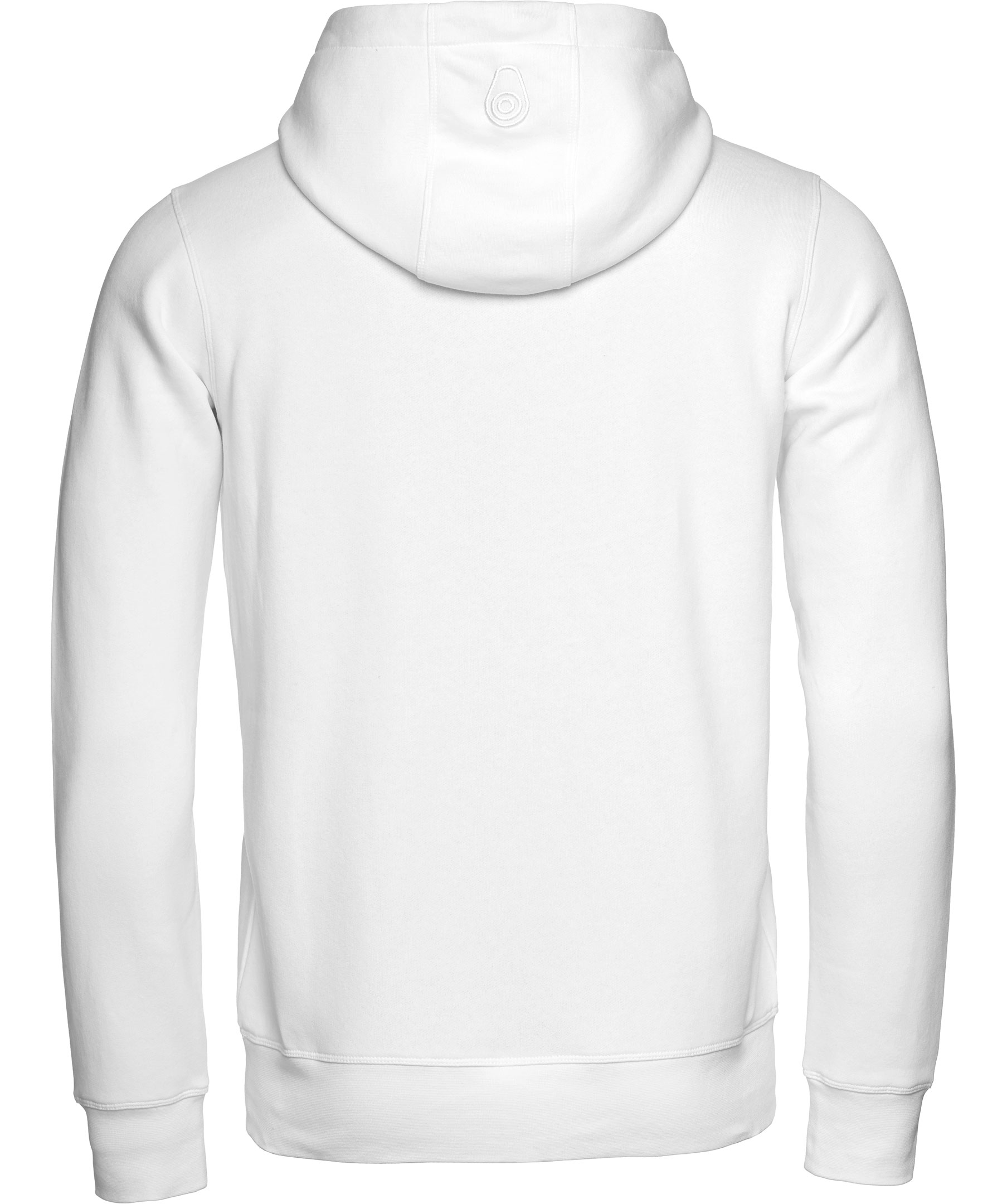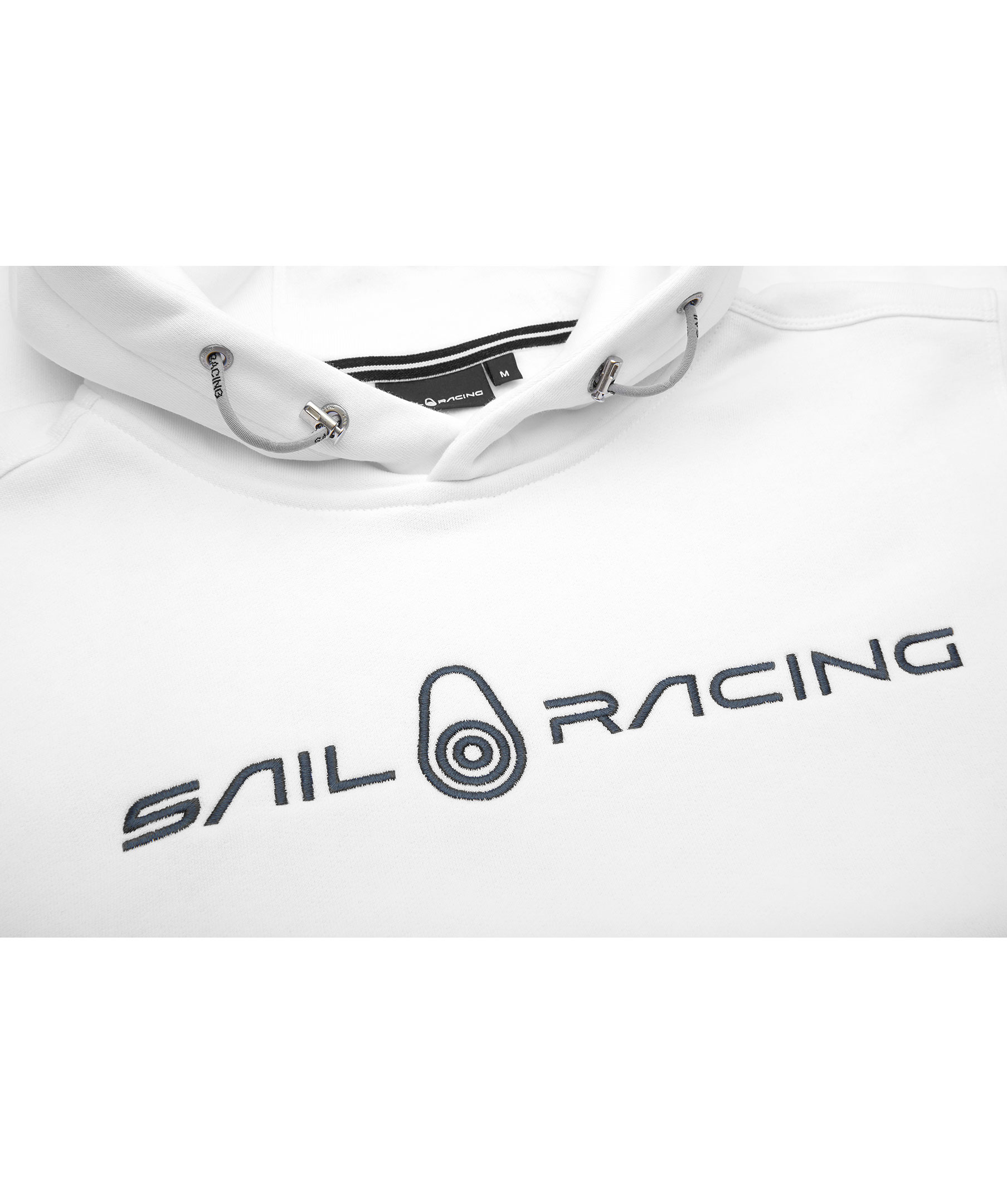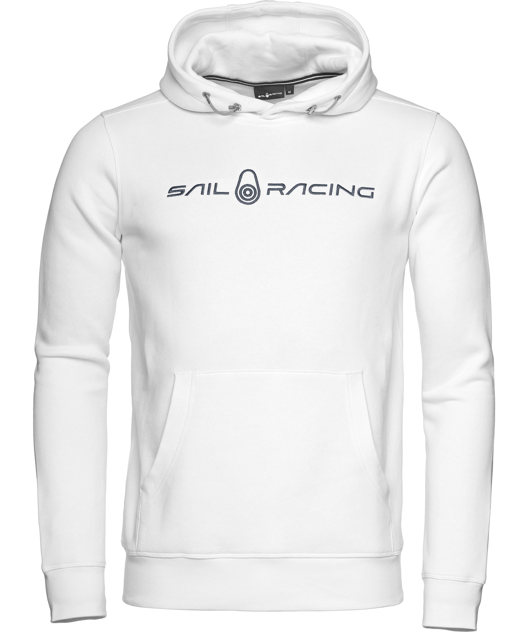 Vit hoodie från Sail Racing. Stor logotyp på bröstet samt ficka på magen. Dragsko i luva och muddar i ärmslut och plaggslut.