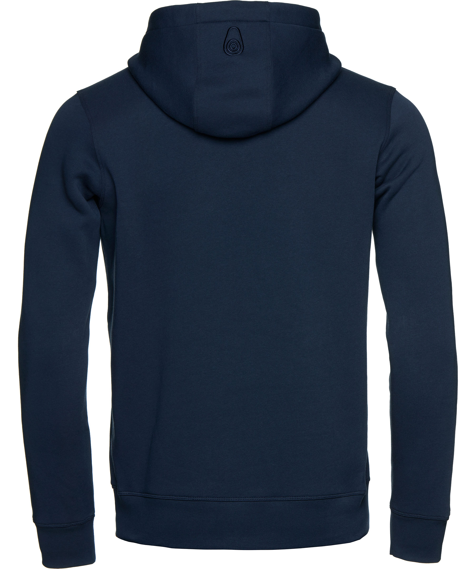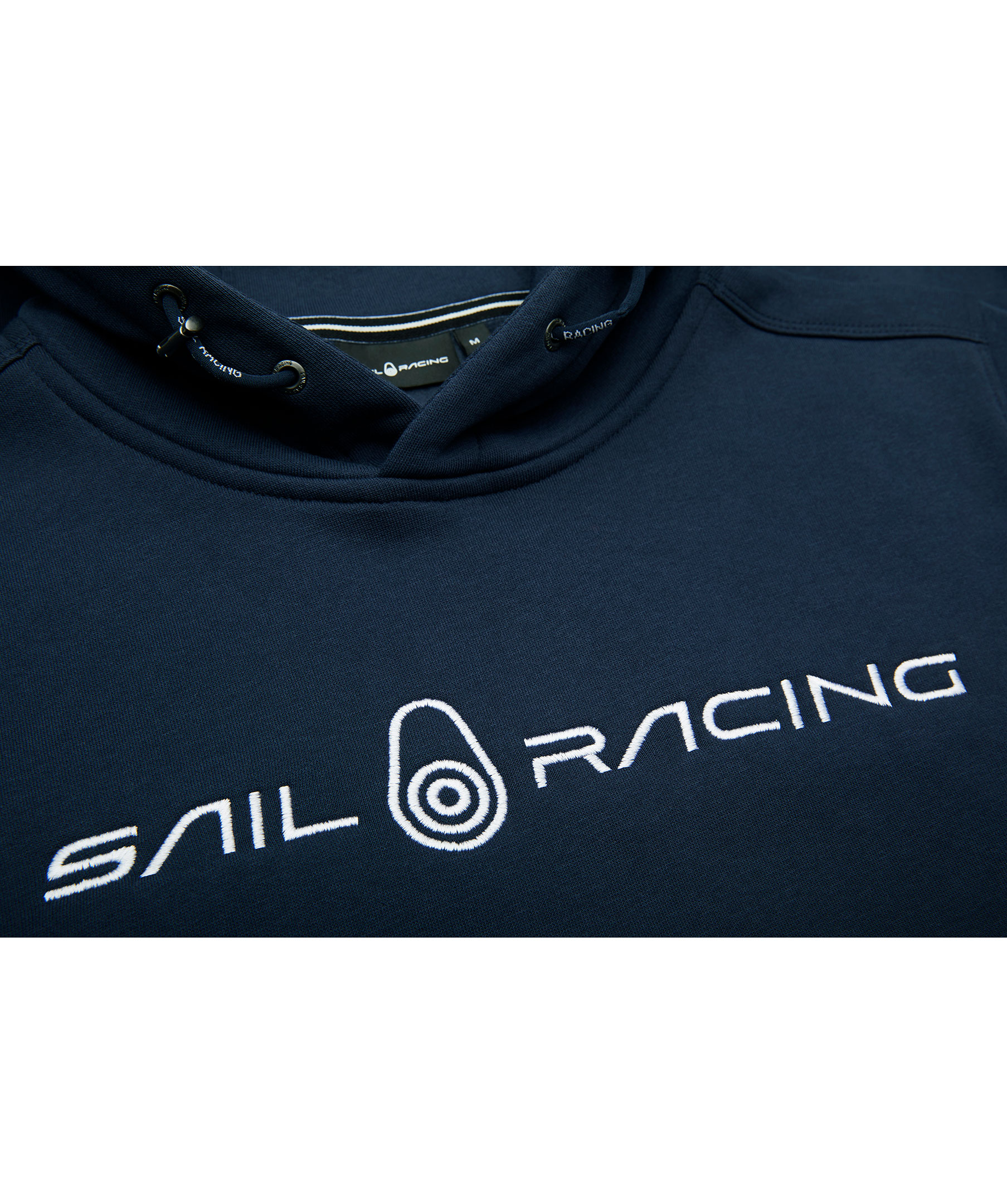 Marinblå hoodie från Sail Racing. Stor logotyp på bröstet samt ficka på magen. Dragsko i luva och muddar i ärmslut och plaggslut.