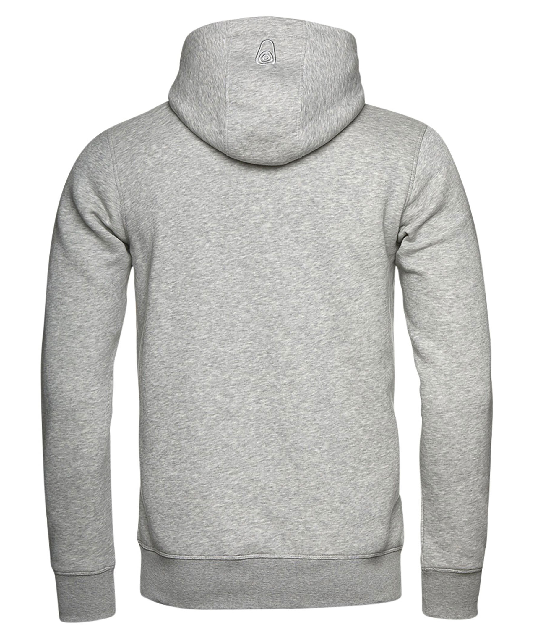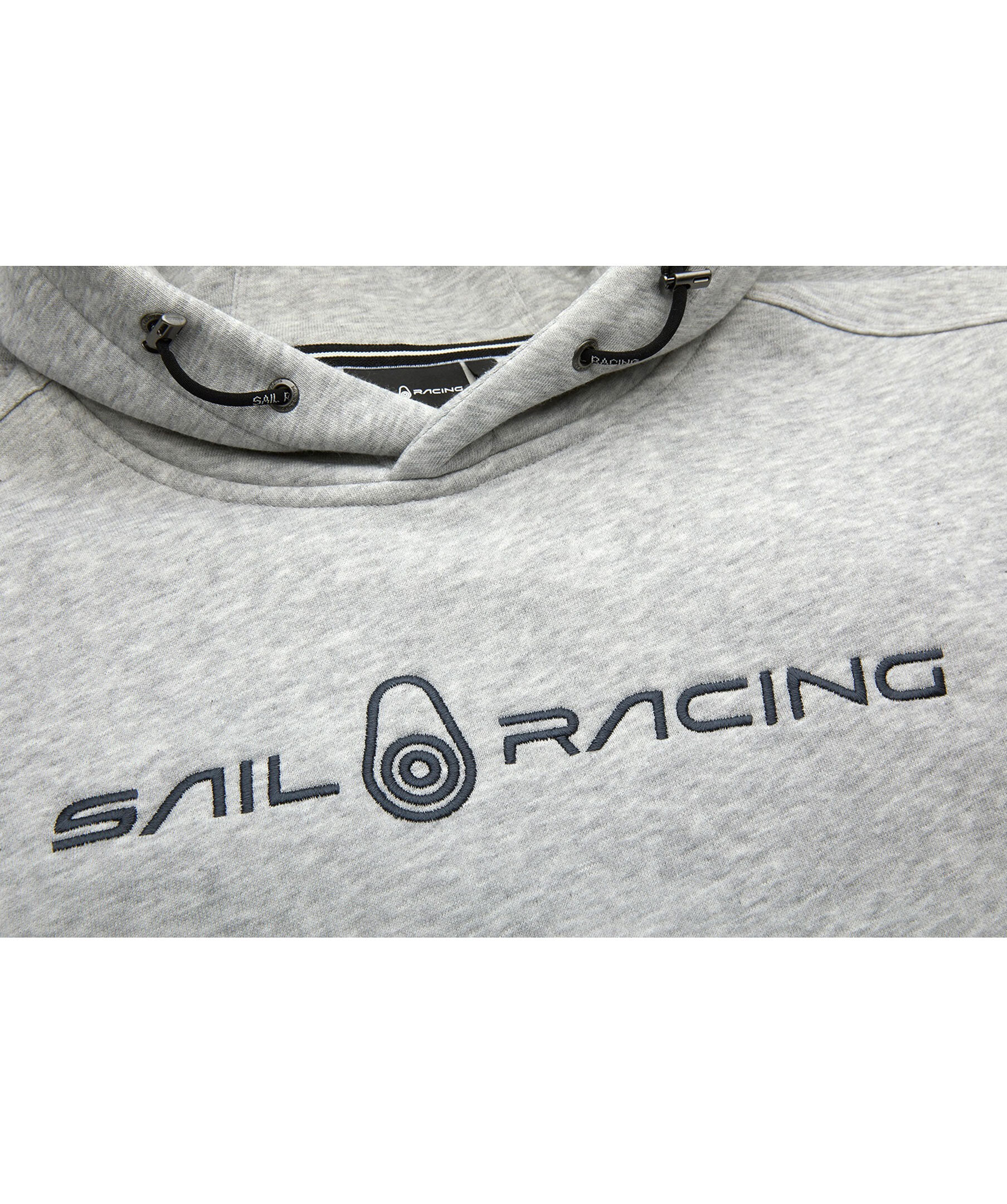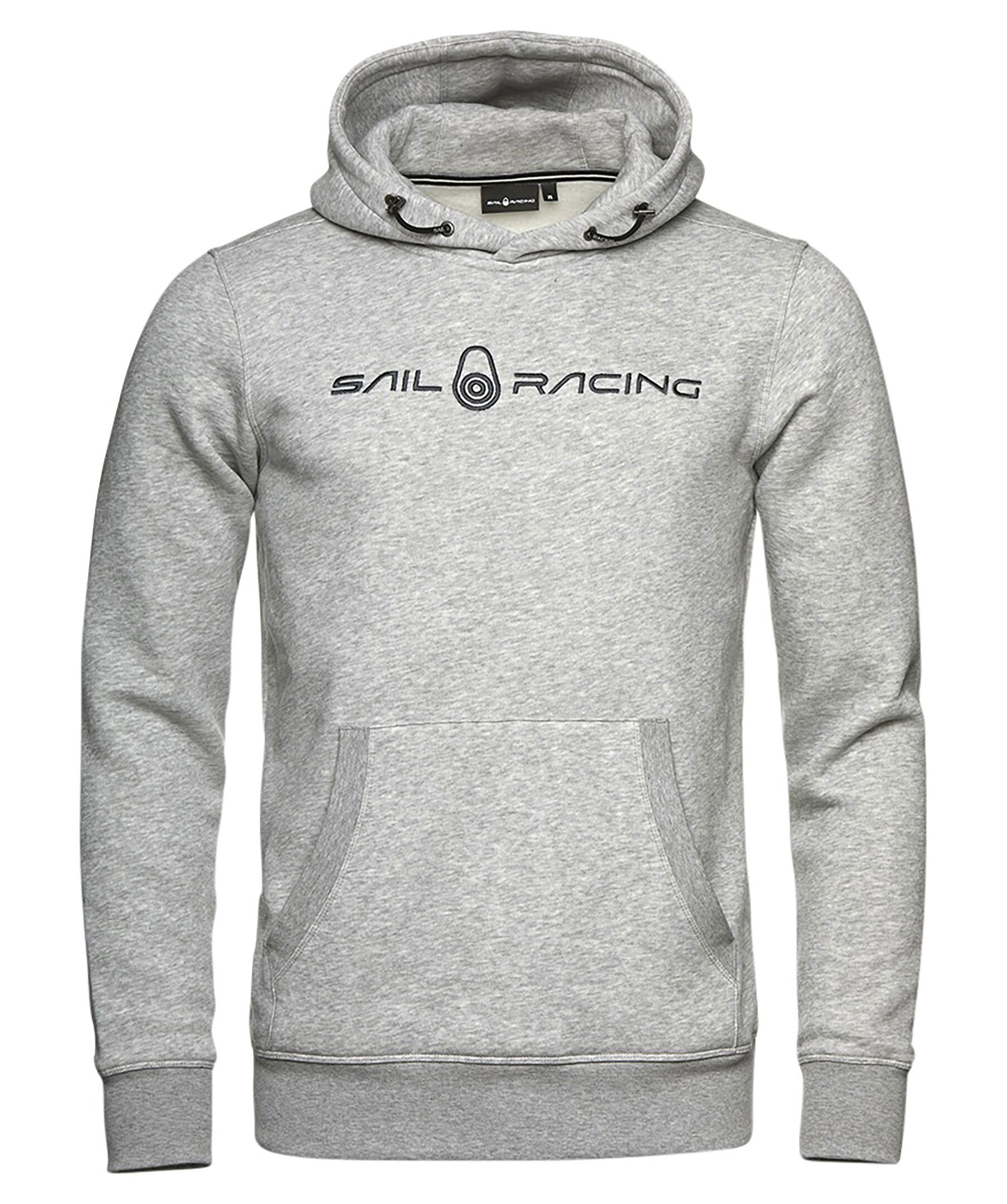 Grå hoodie från Sail Racing. Stor logotyp på bröstet, bak på luvan samt ficka på magen. Dragsko i luva och muddar i ärmslut och plaggslut.
